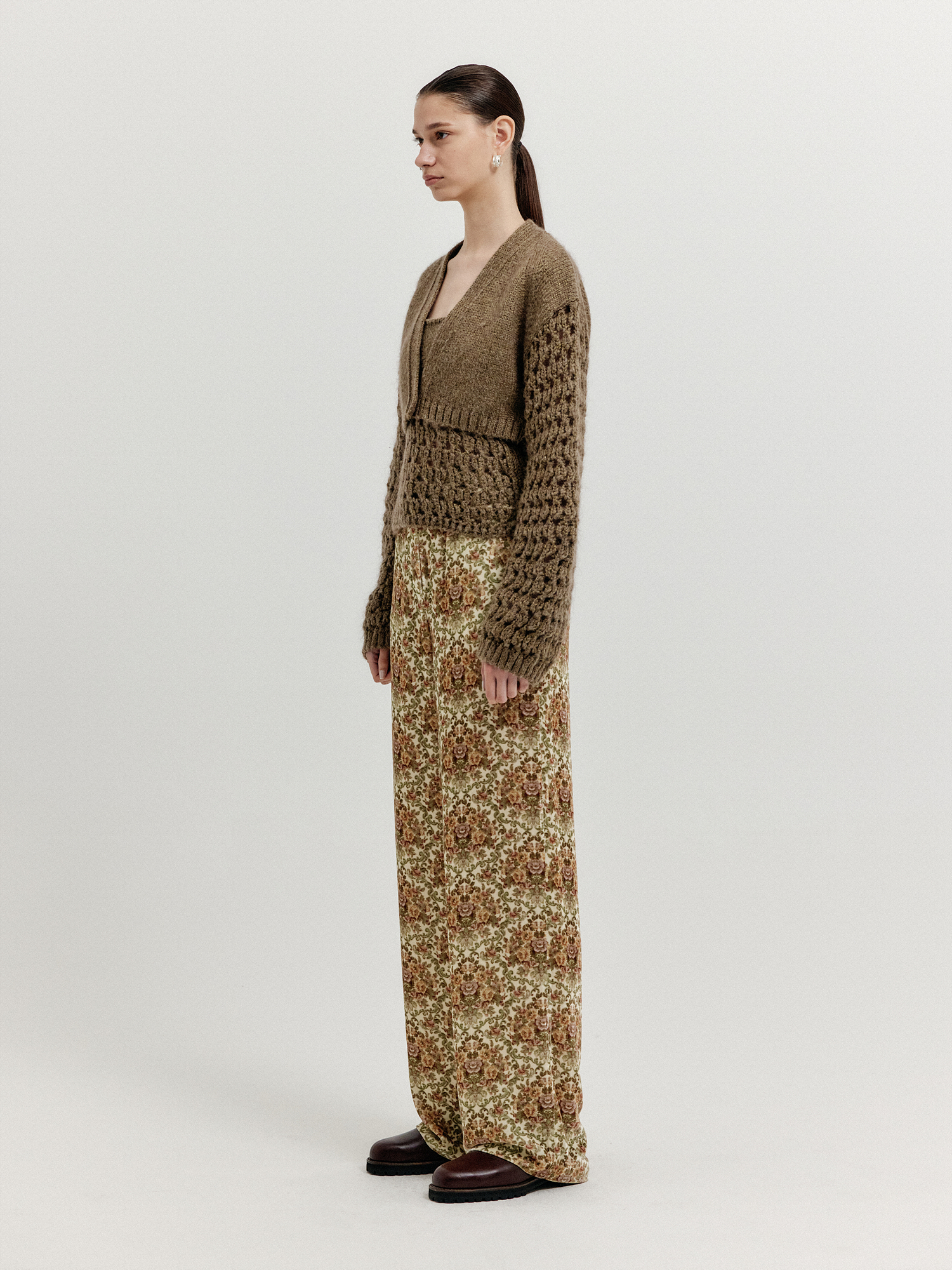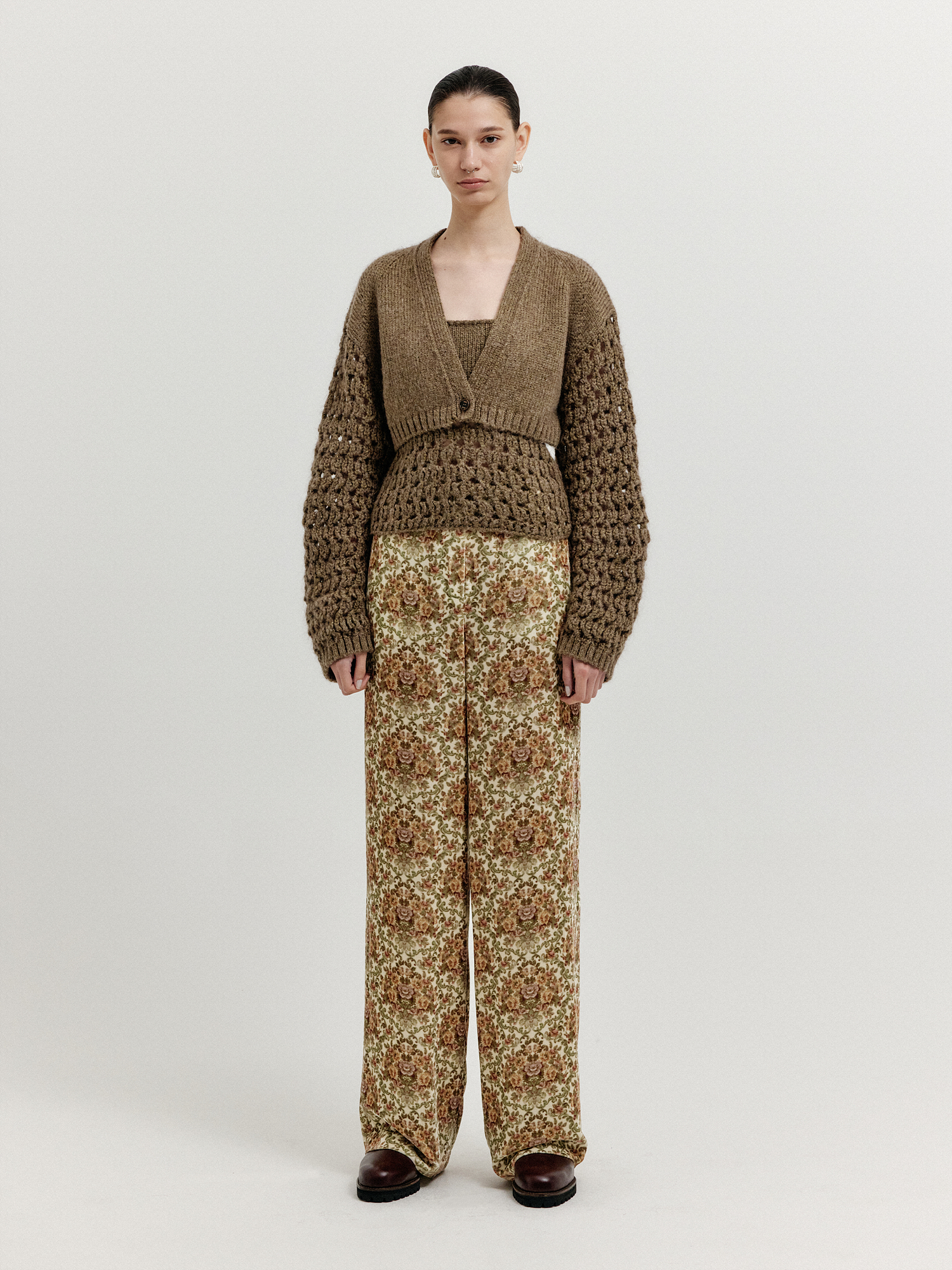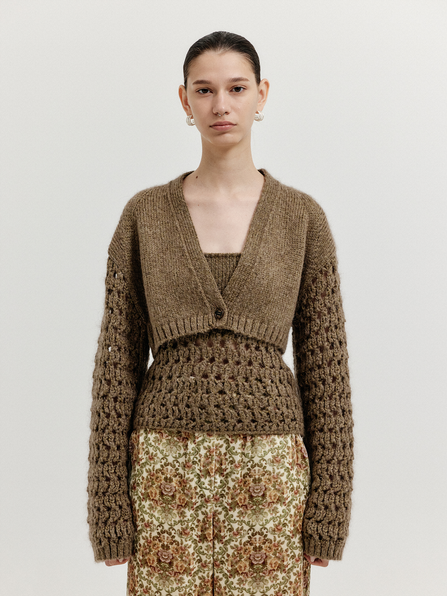 - 크롭 기장의 니트 가디건입니다.