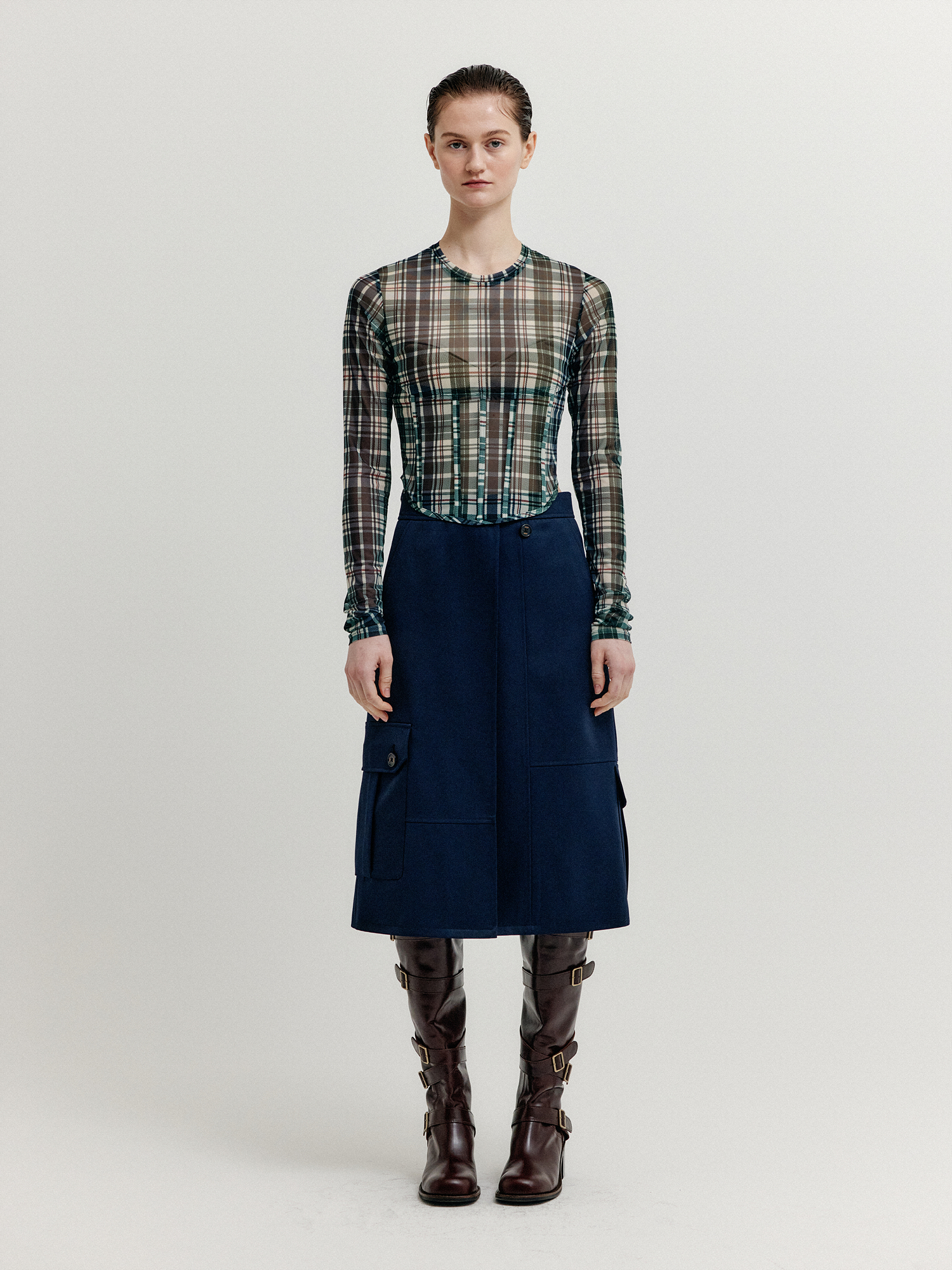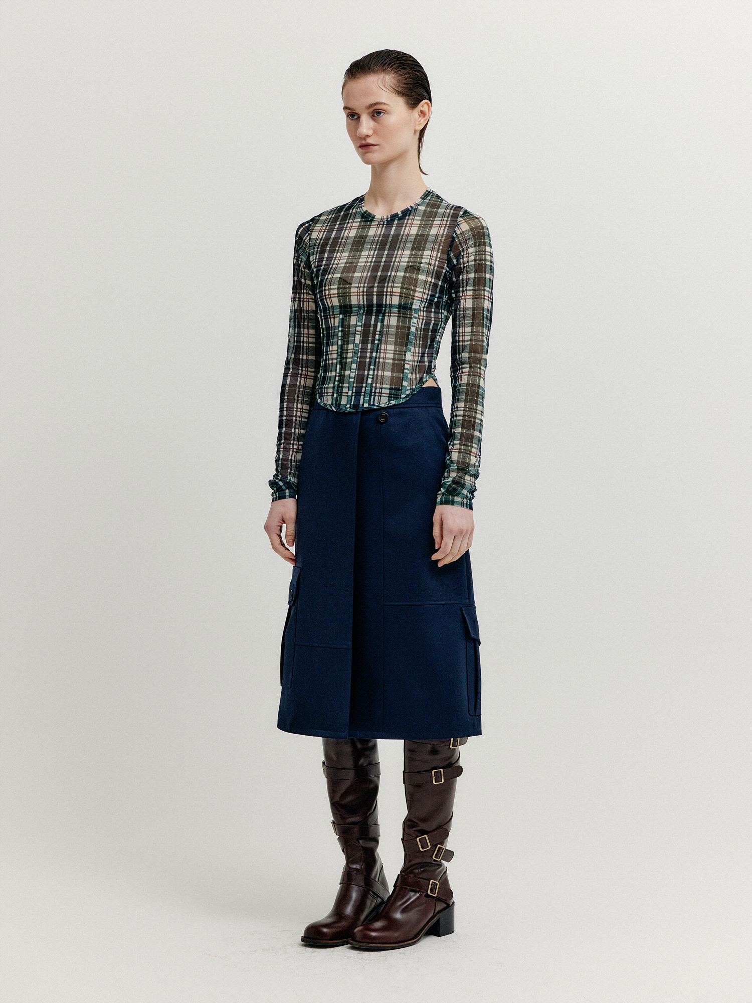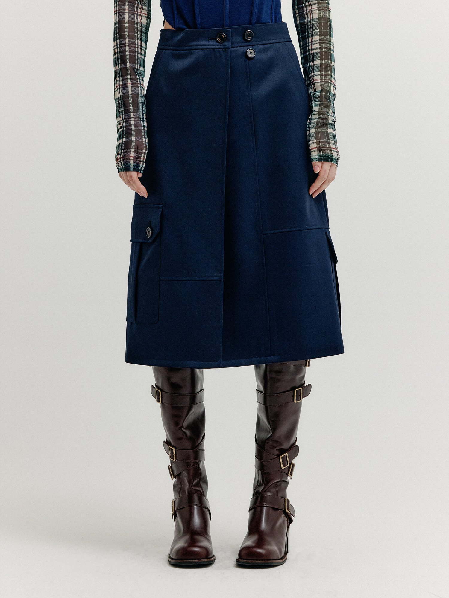 - 울 혼방 소재의 랩 스커트입니다.