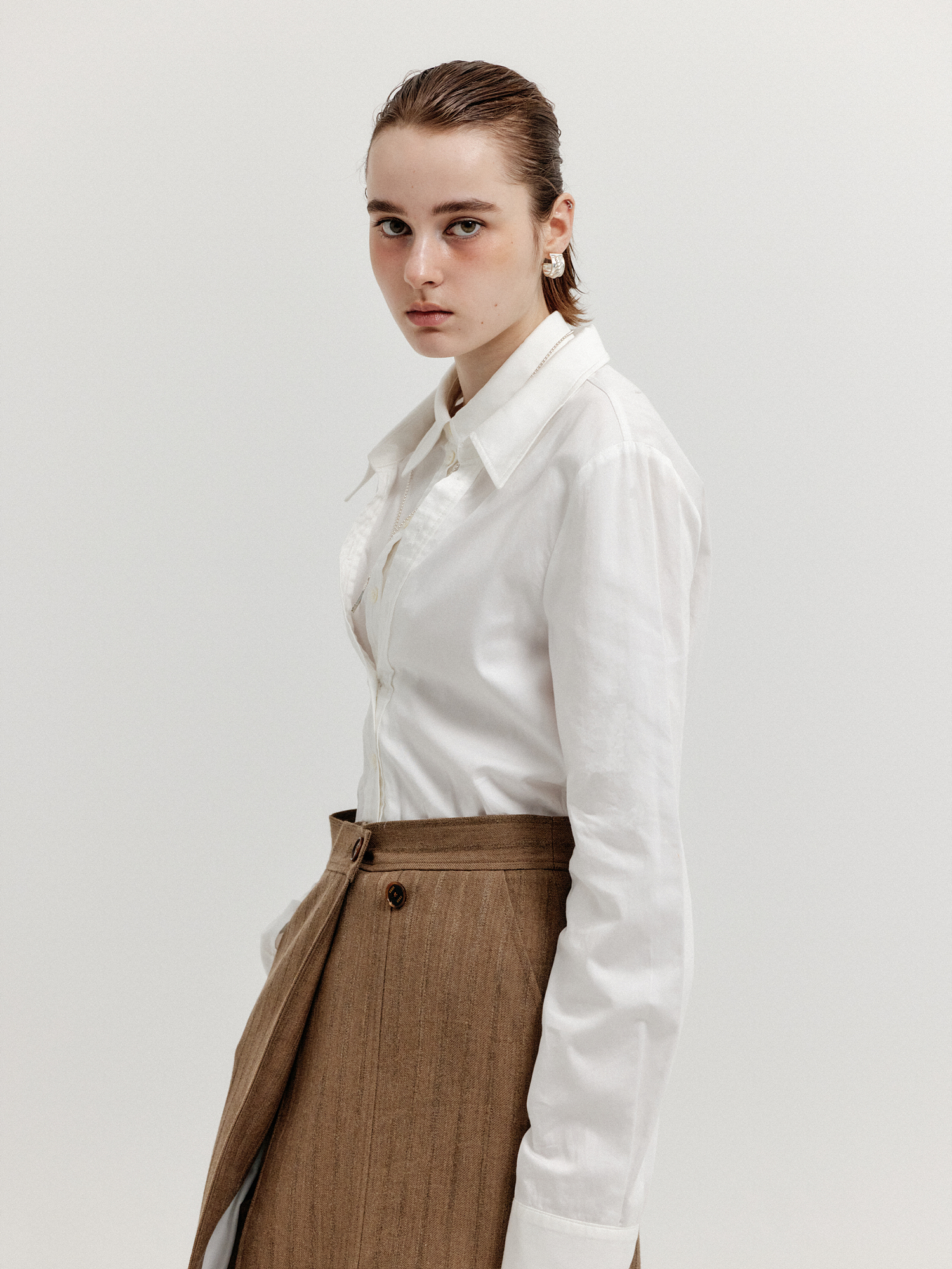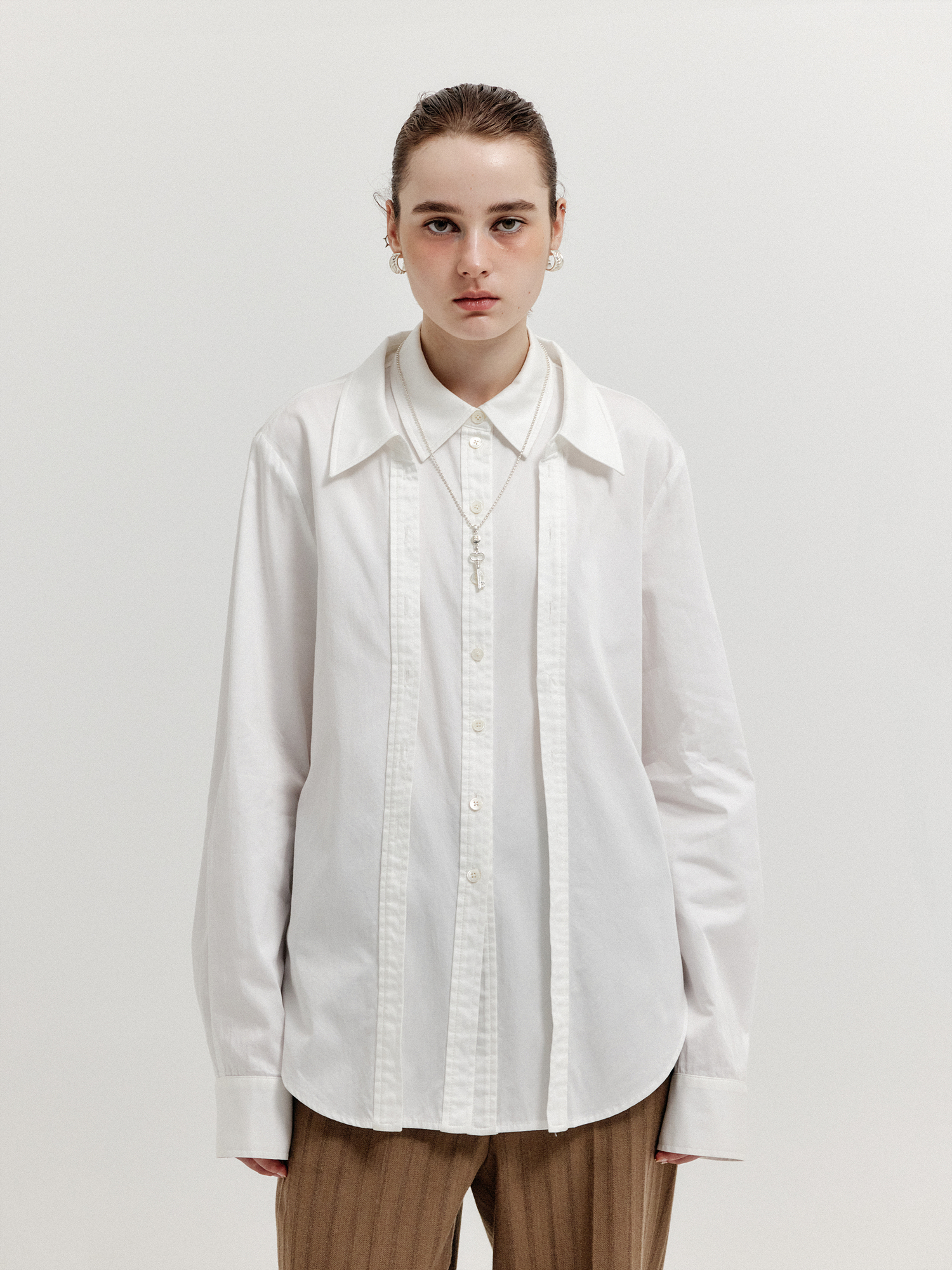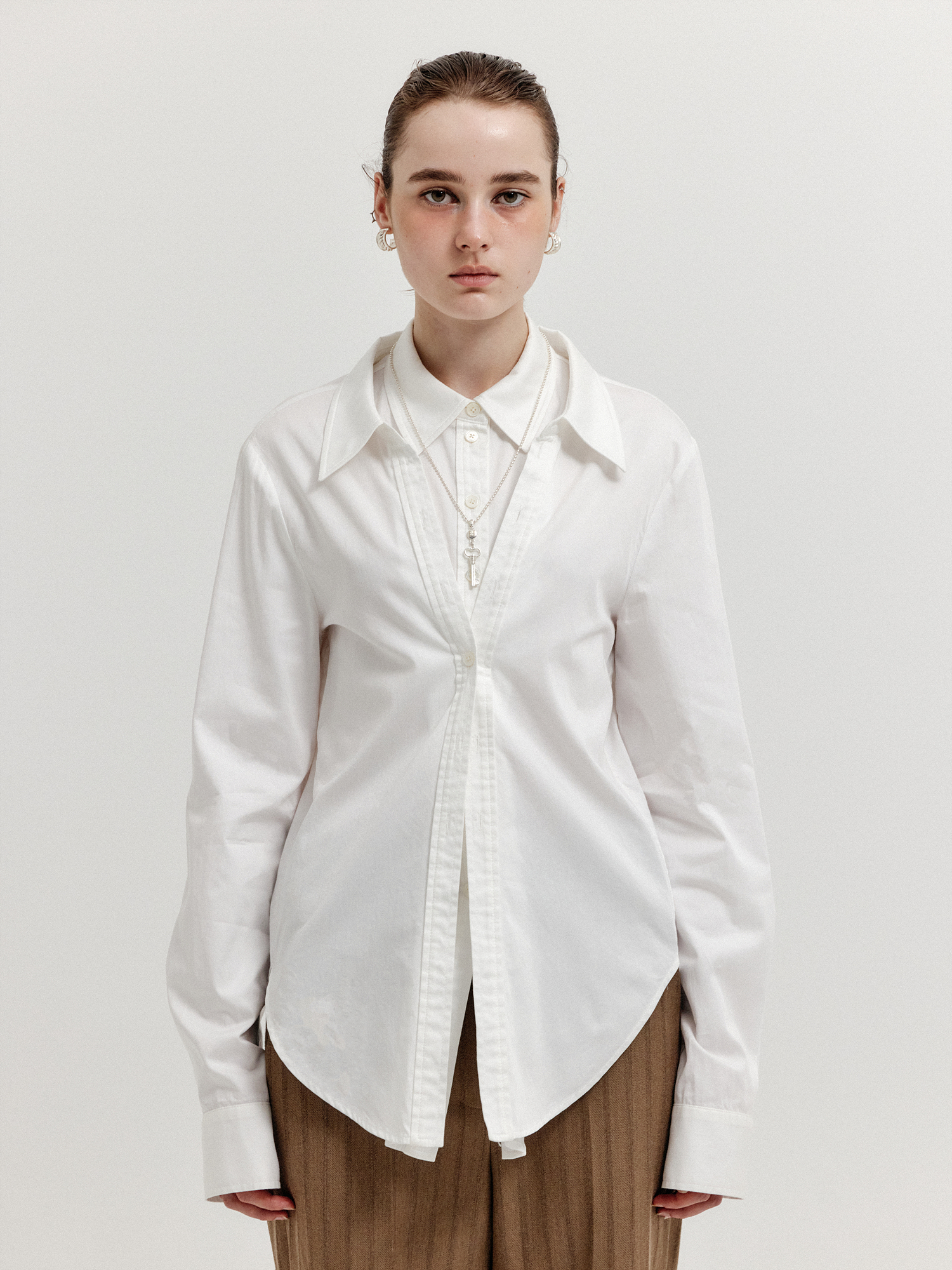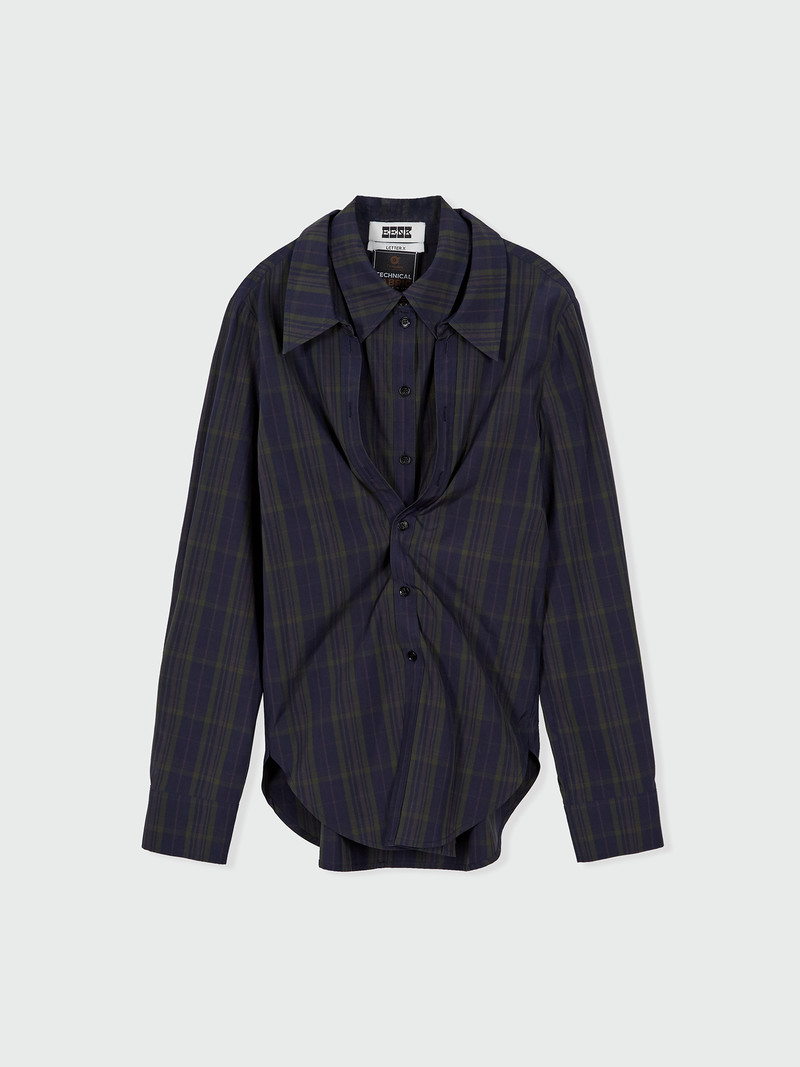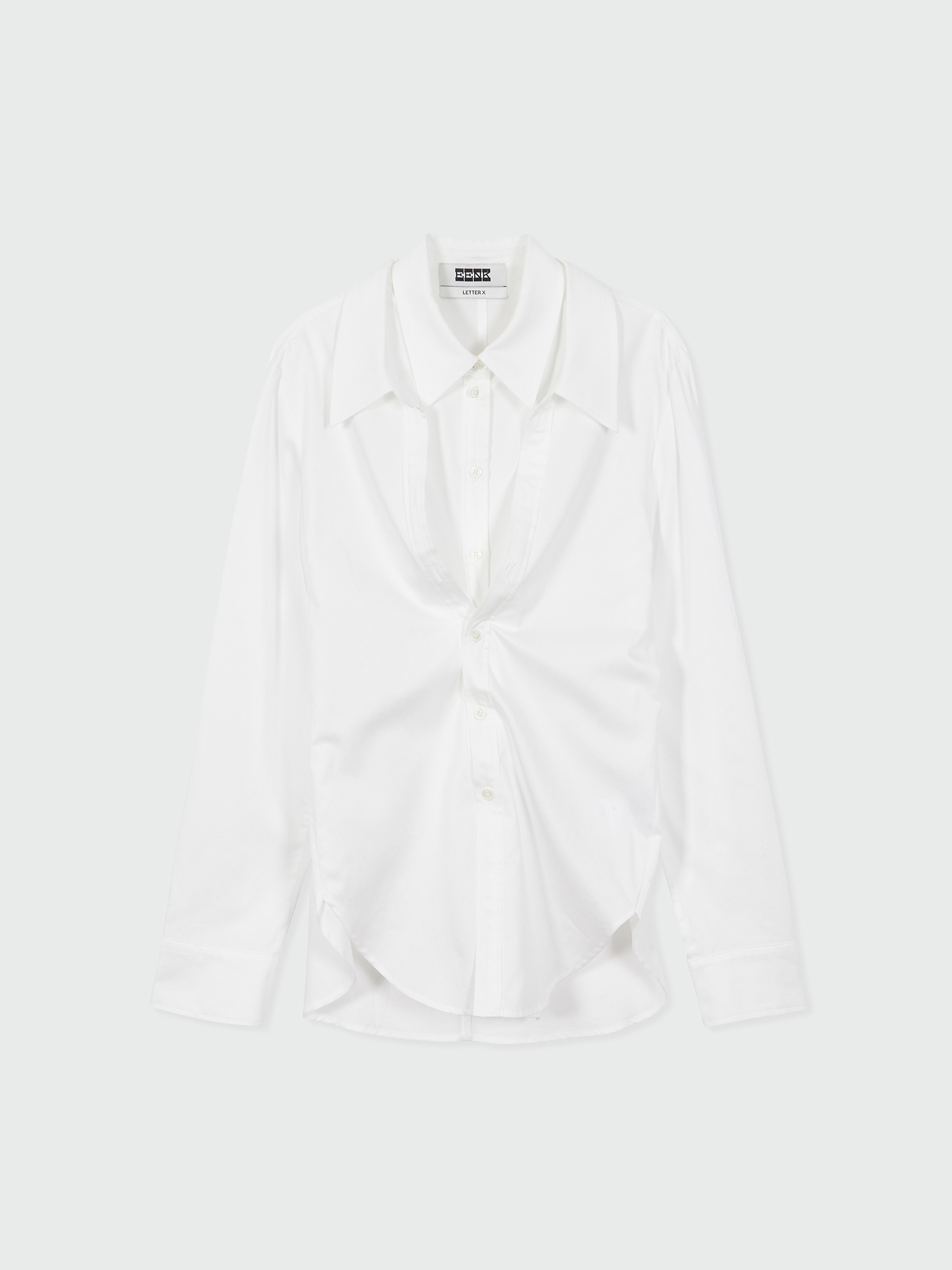 - 셔츠 두 벌을 레이어드한 듯한 디자인의 제품입니다.