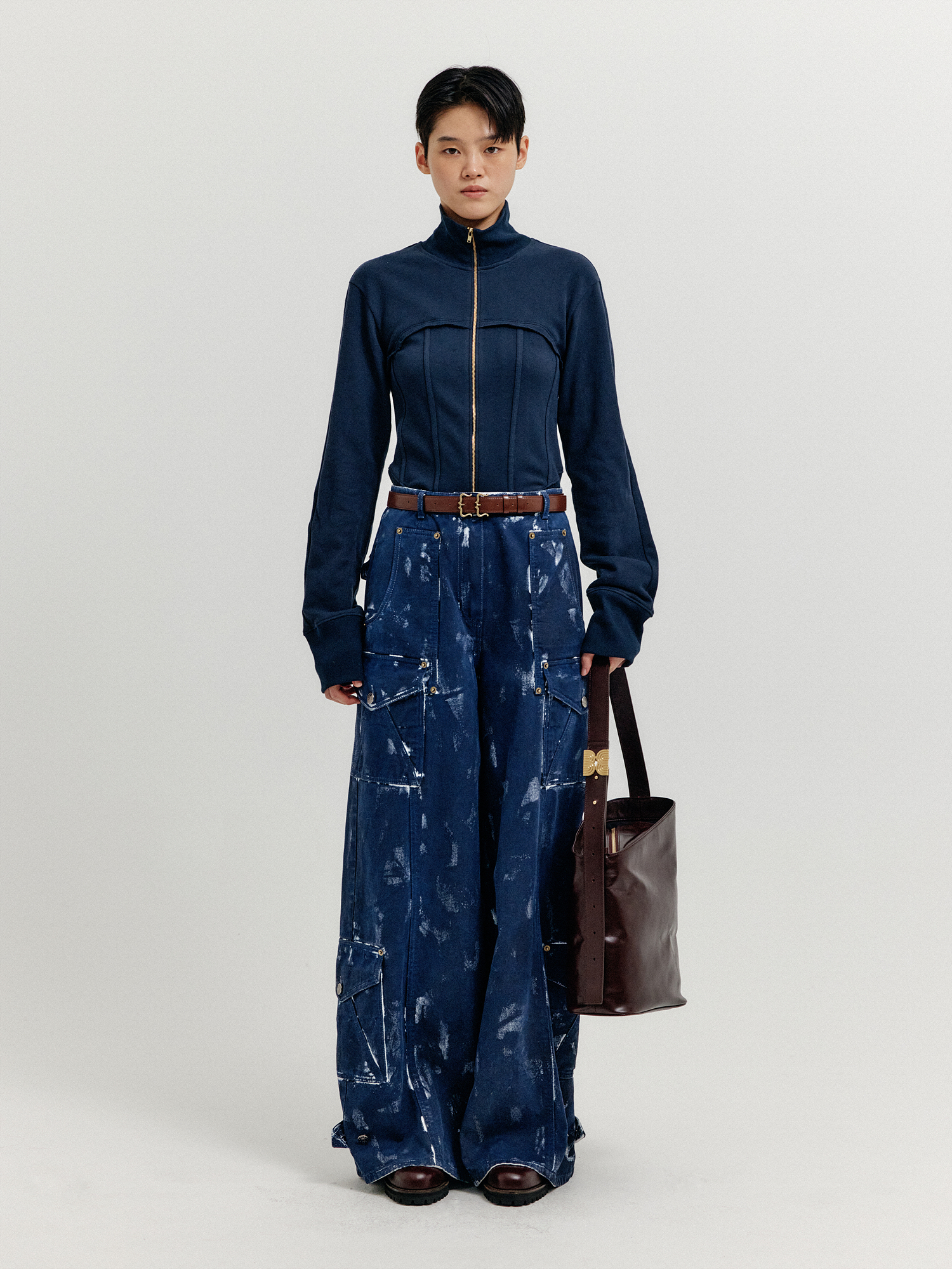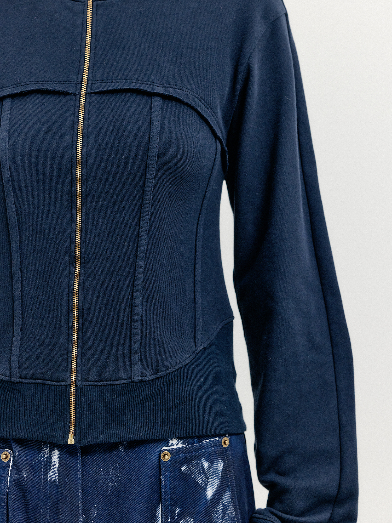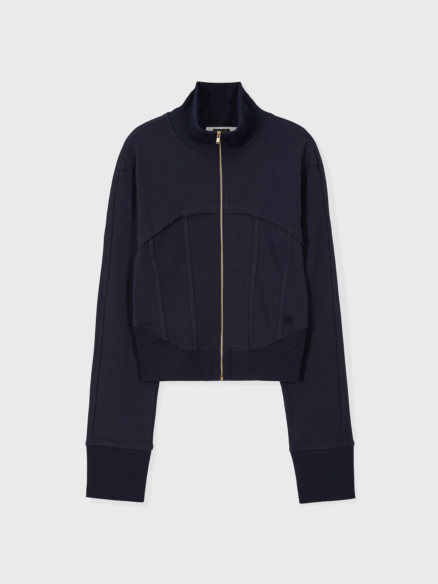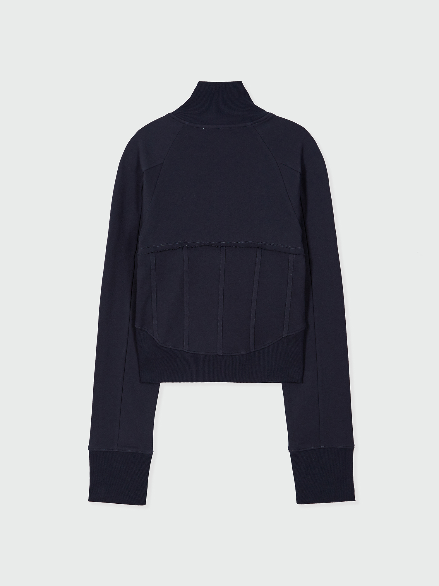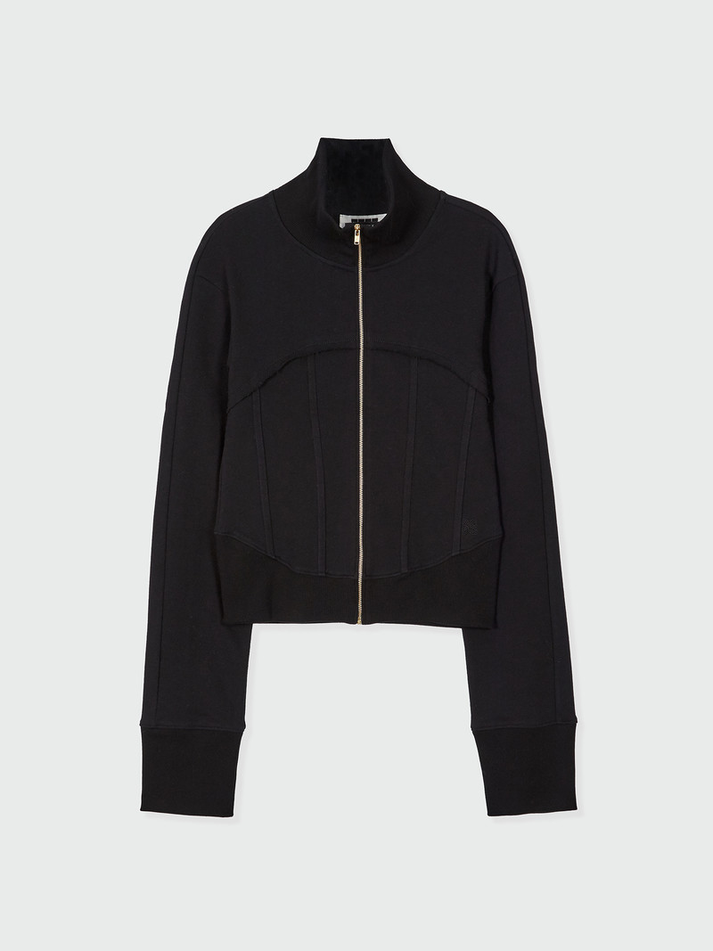 - 허리 부분에 얇은 와이어를 넣어서 코르셋 디테일을 가미한 집업 탑입니다.