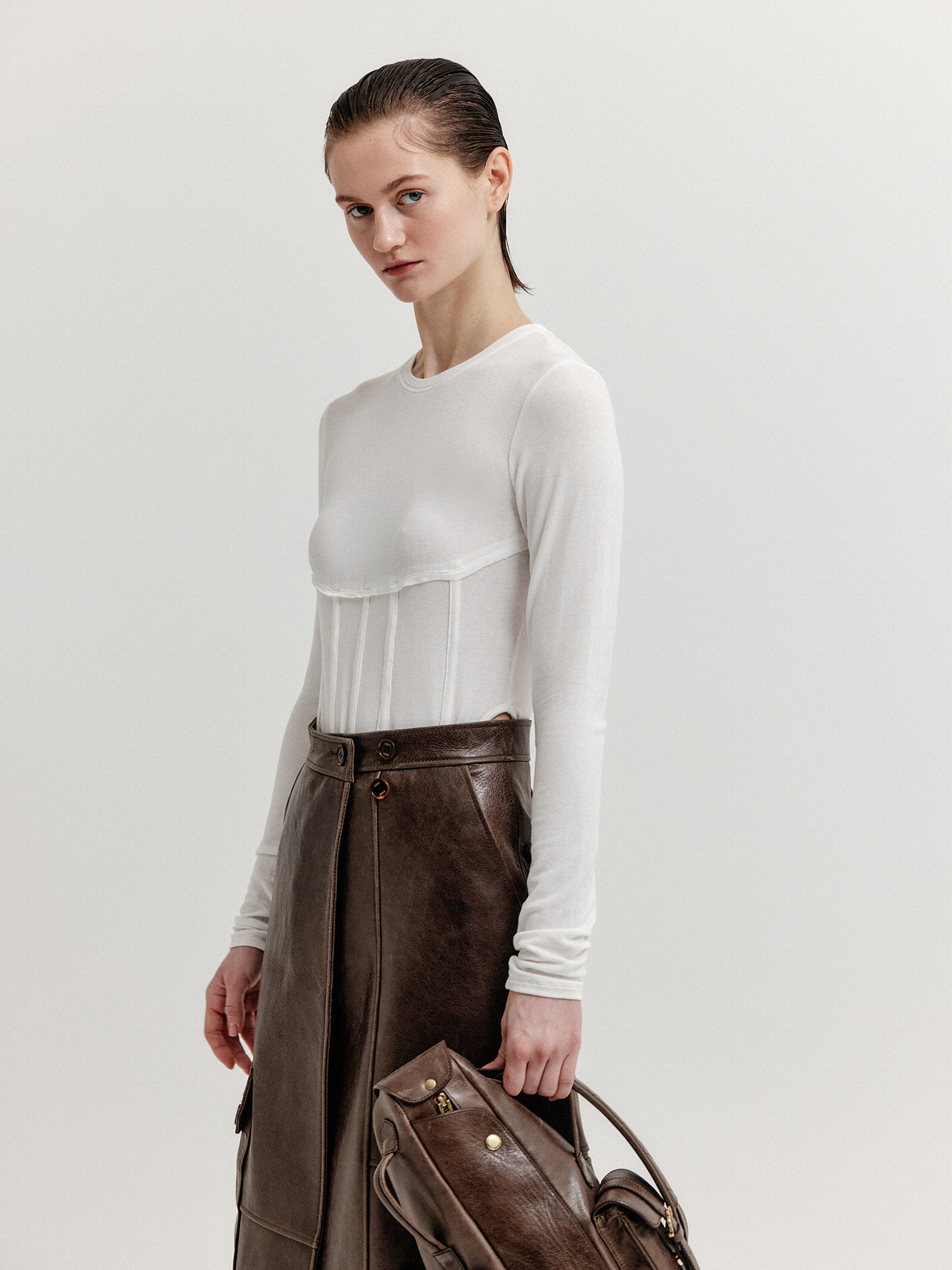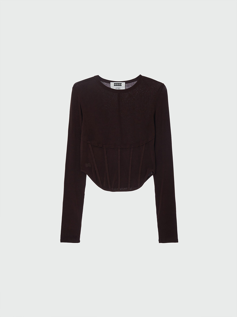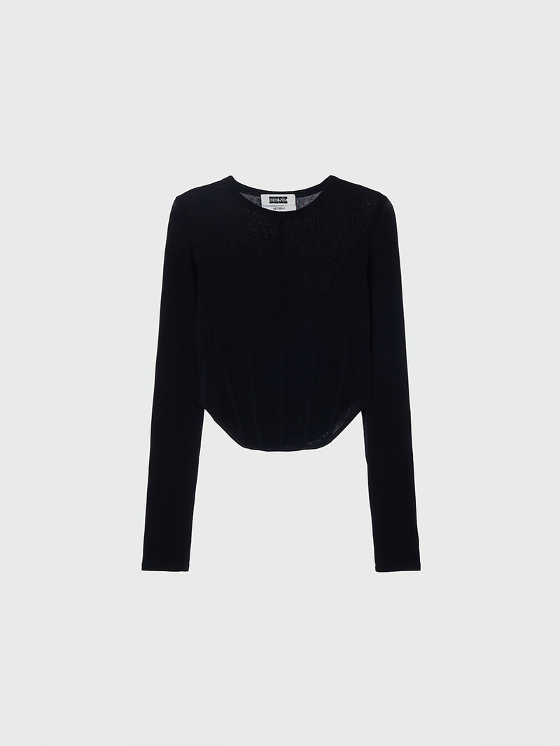 - 허리 부분에 얇은 와이어를 넣어서 코르셋 디테일을 가미한 티셔츠입니다.