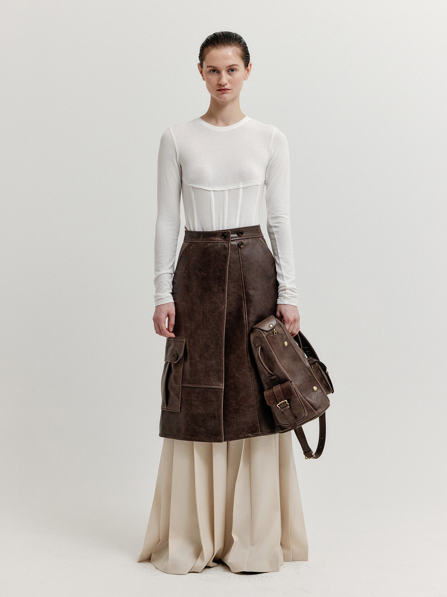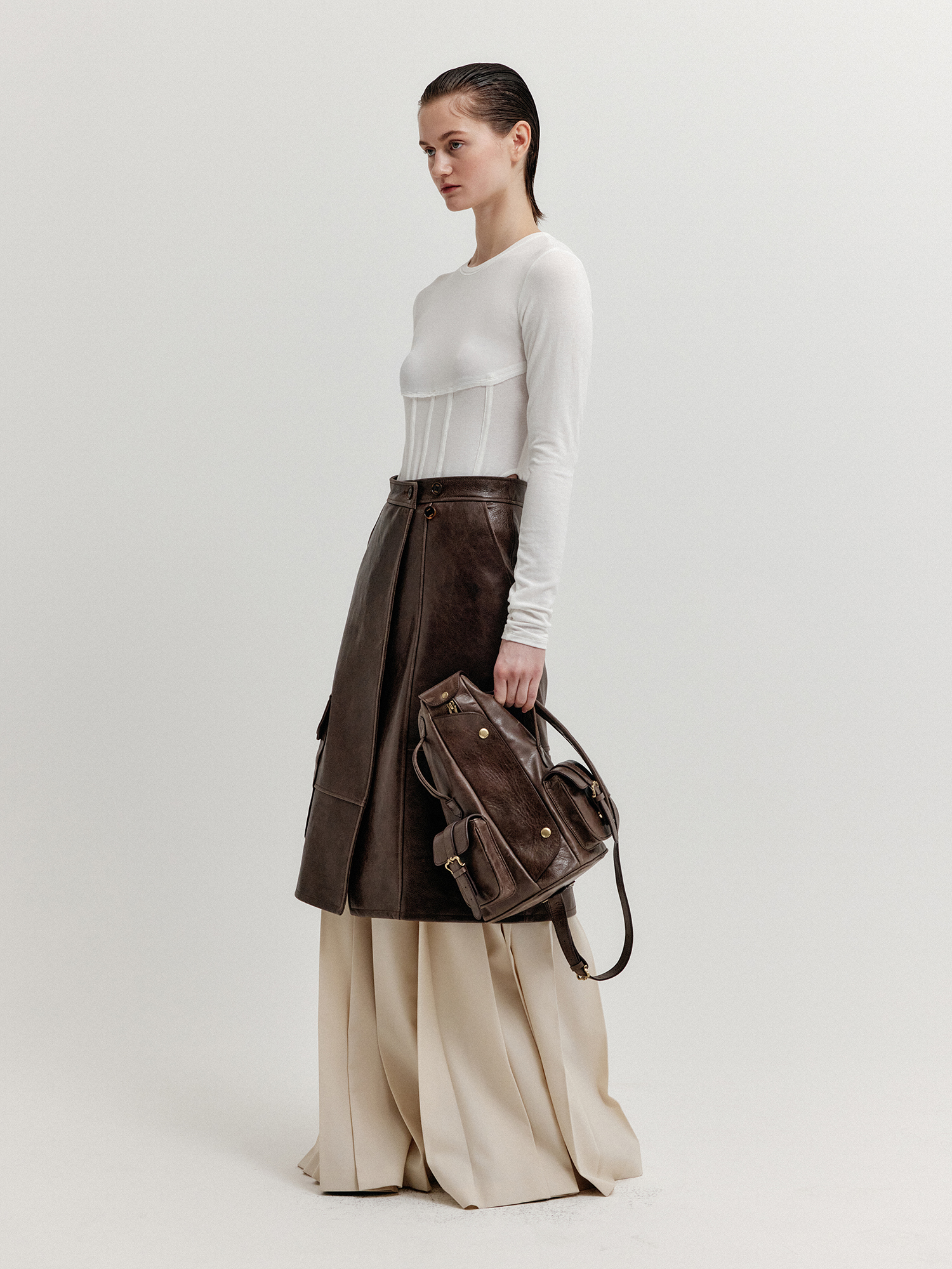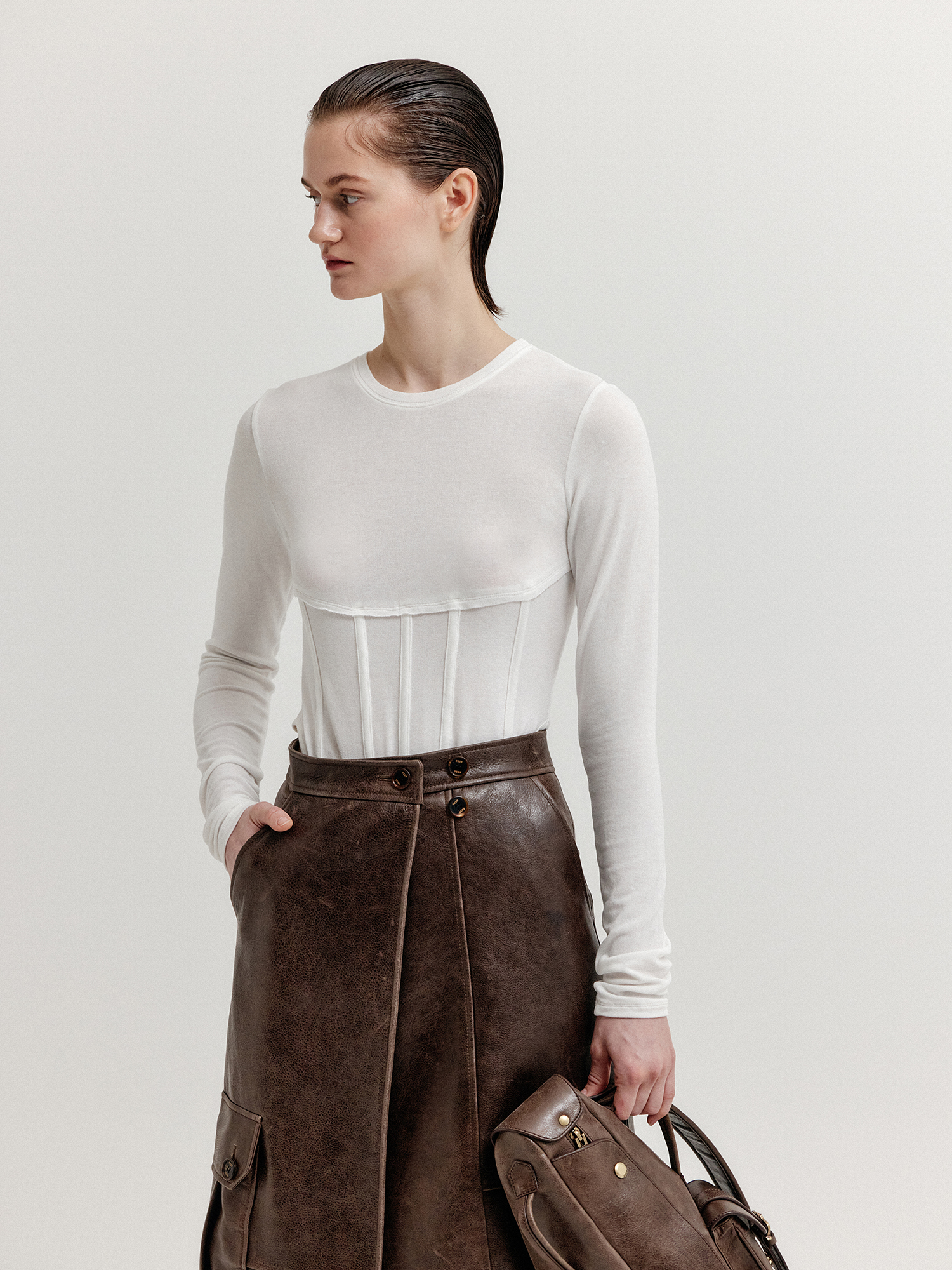 - 허리 부분에 얇은 와이어를 넣어서 코르셋 디테일을 가미한 티셔츠입니다.