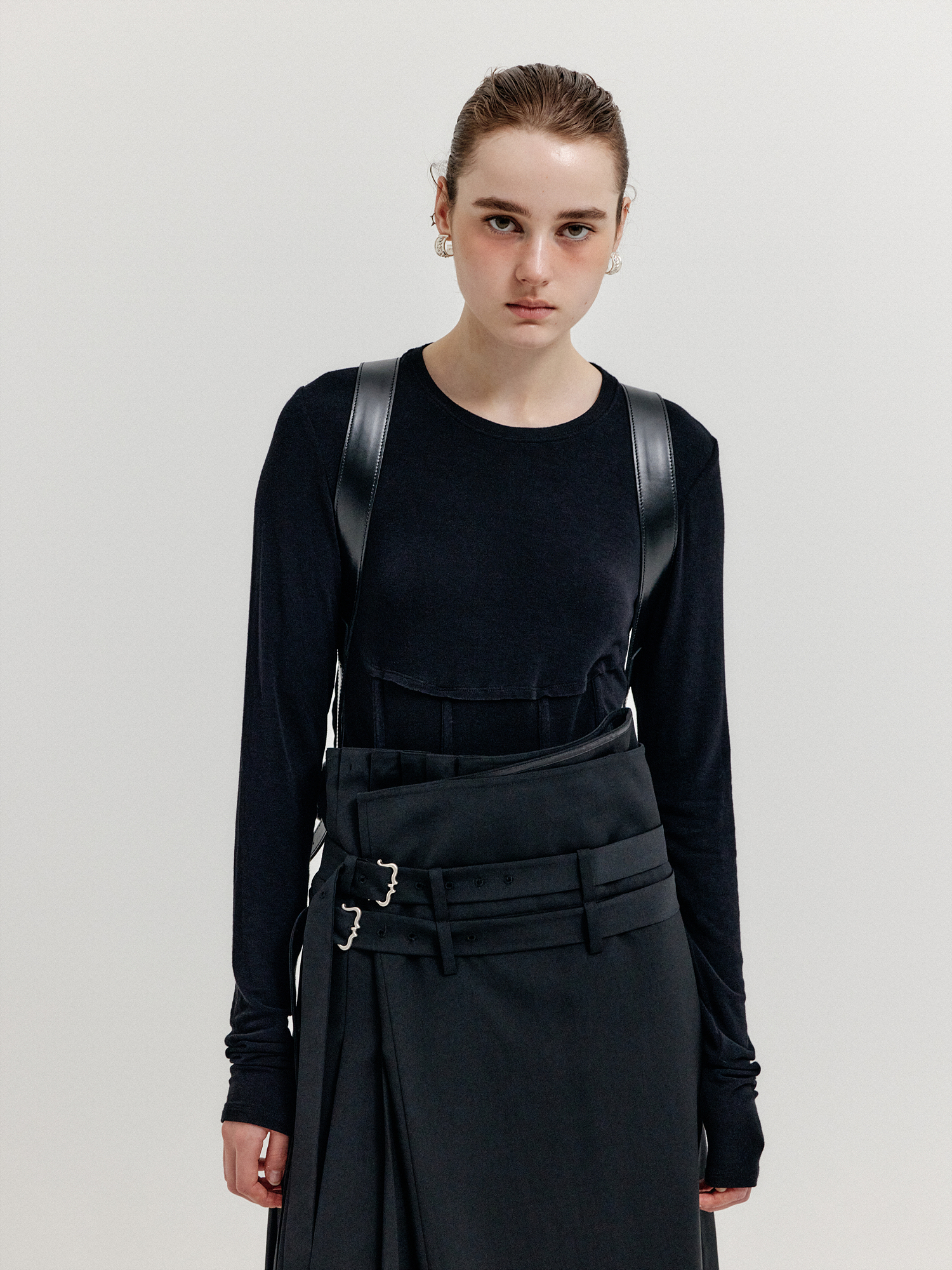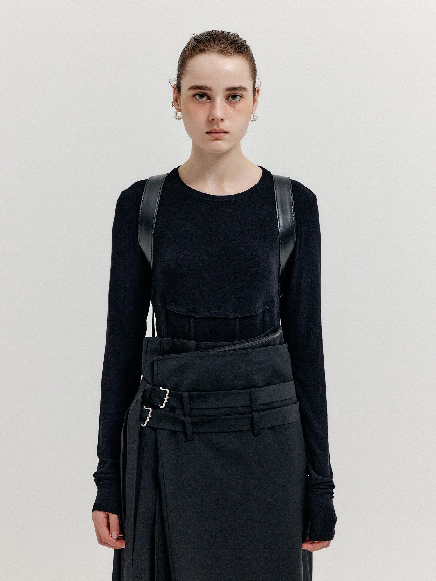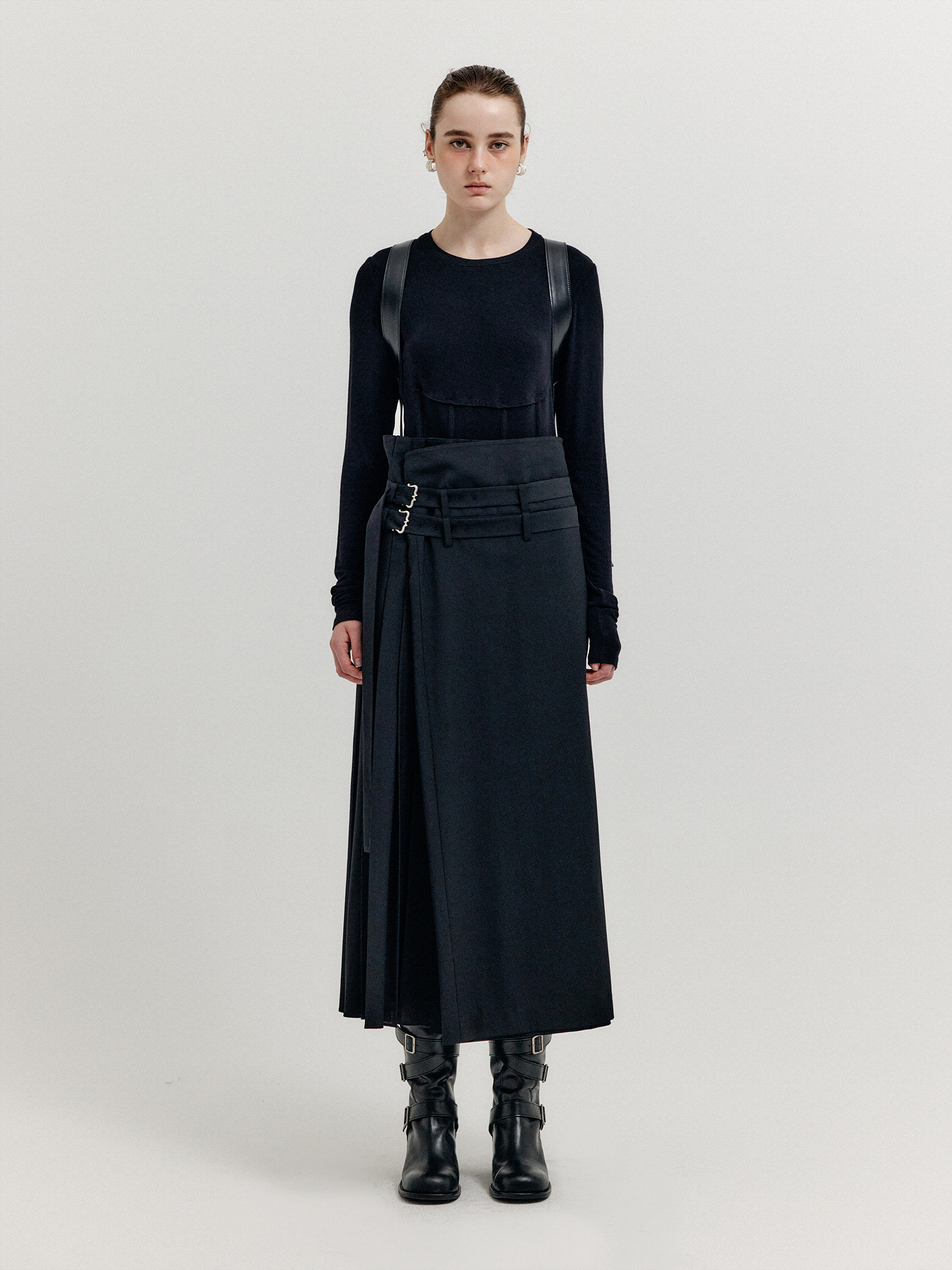 - 스커트처럼 연출되는 랩 팬츠입니다.