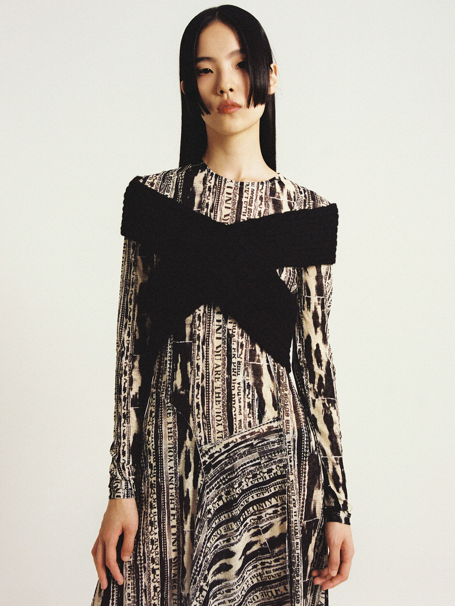 - X 시즌을 상징하는 알파벳 "X" 실루엣의 니트 탑입니다.