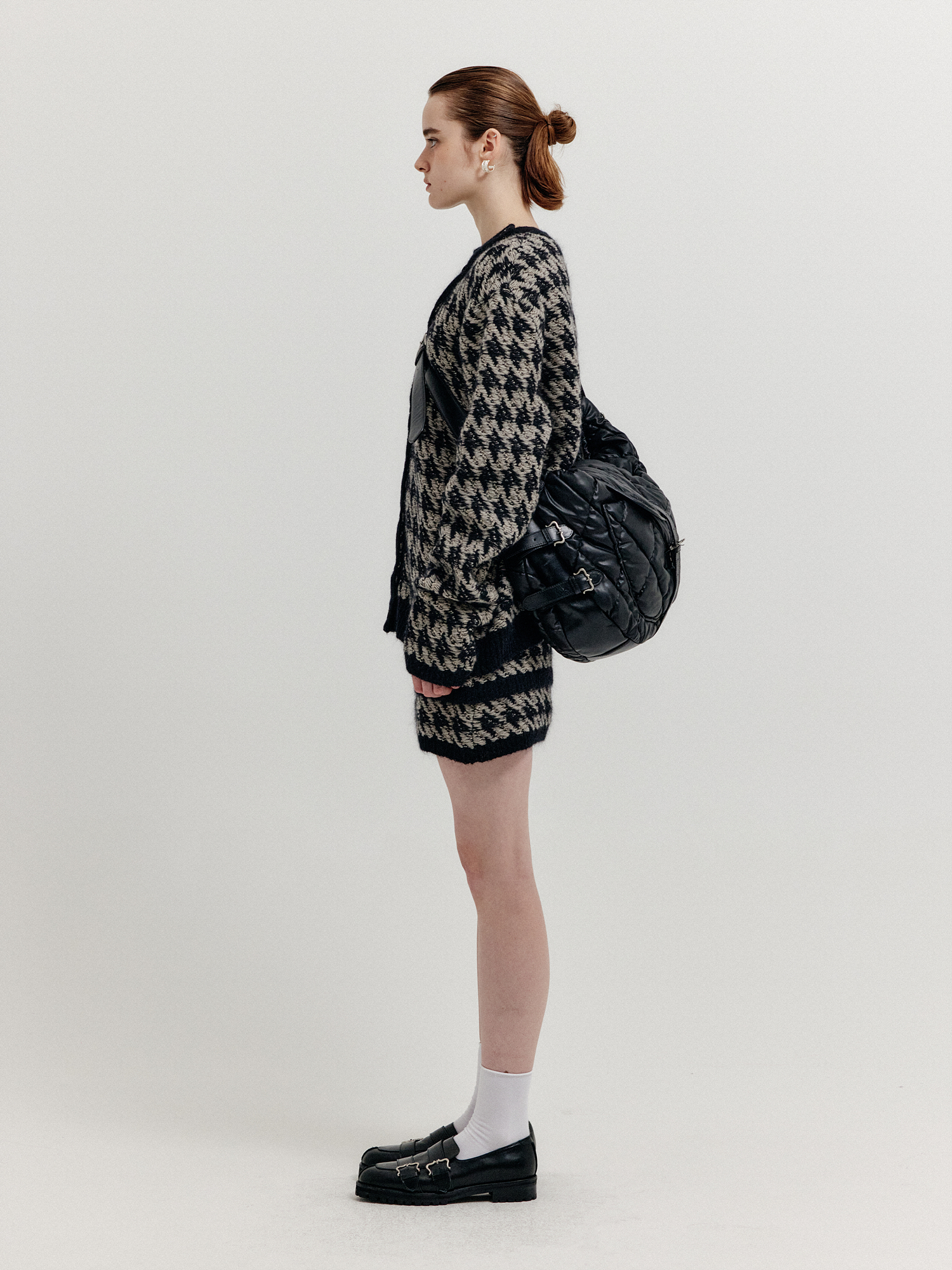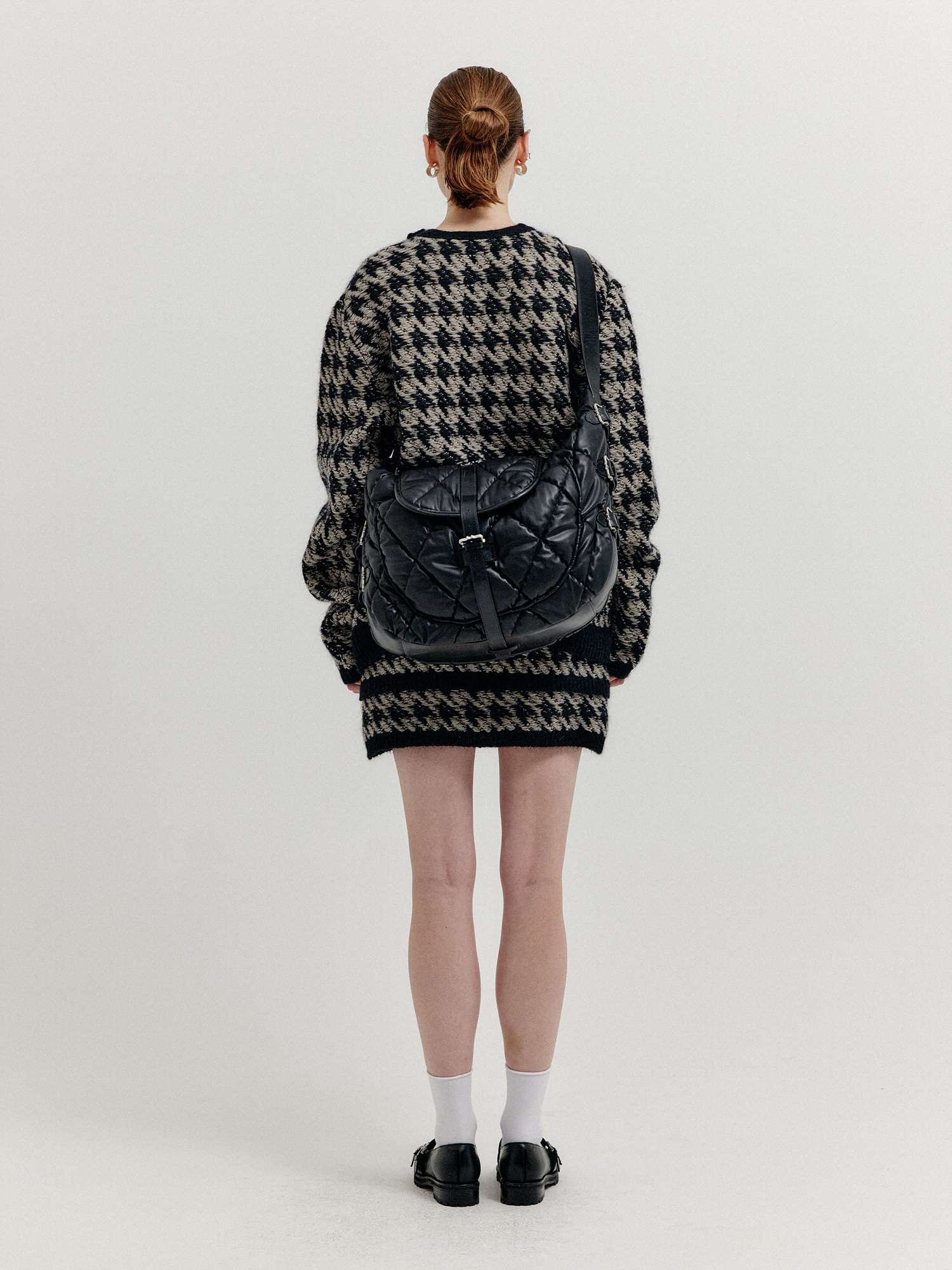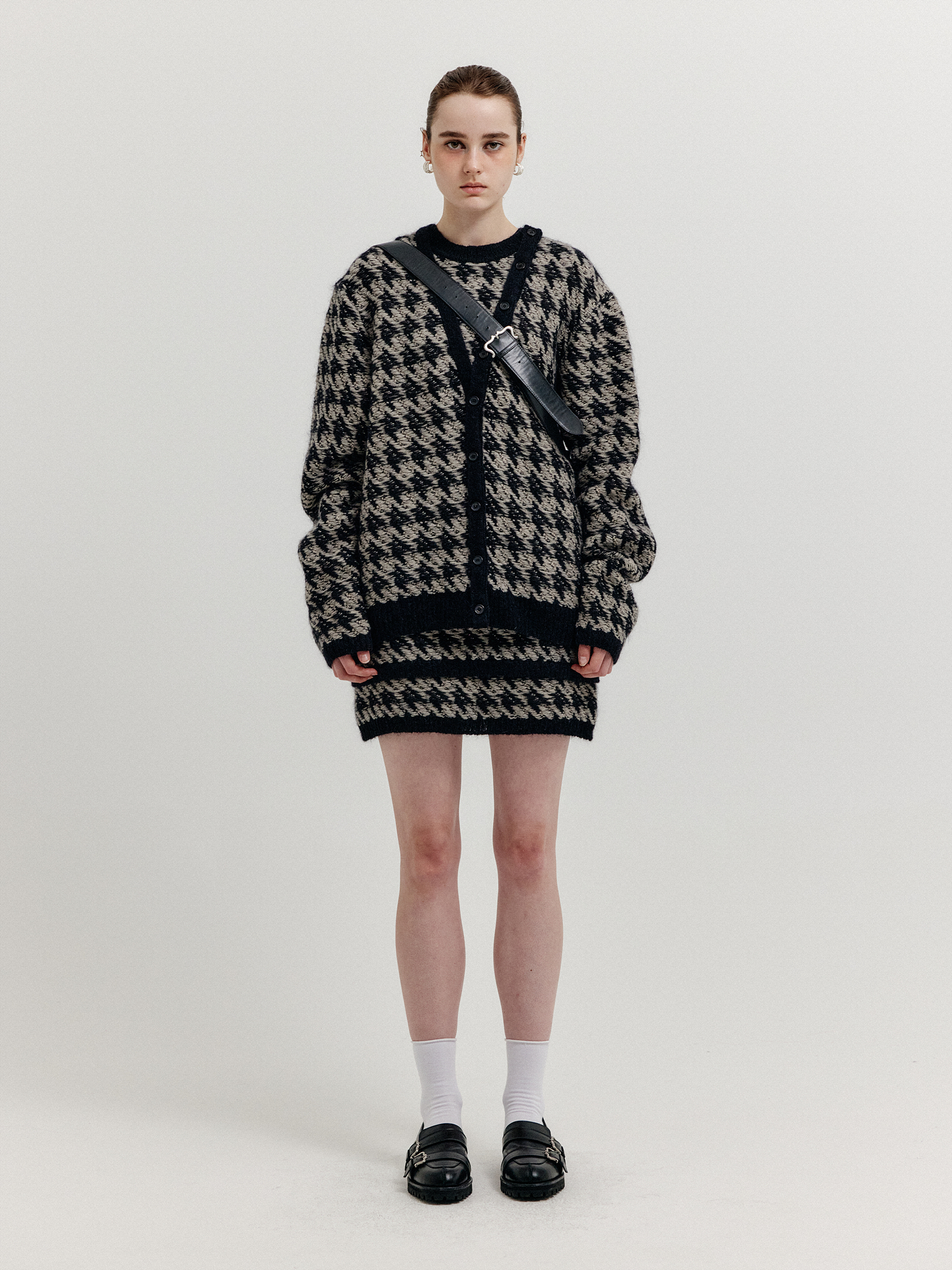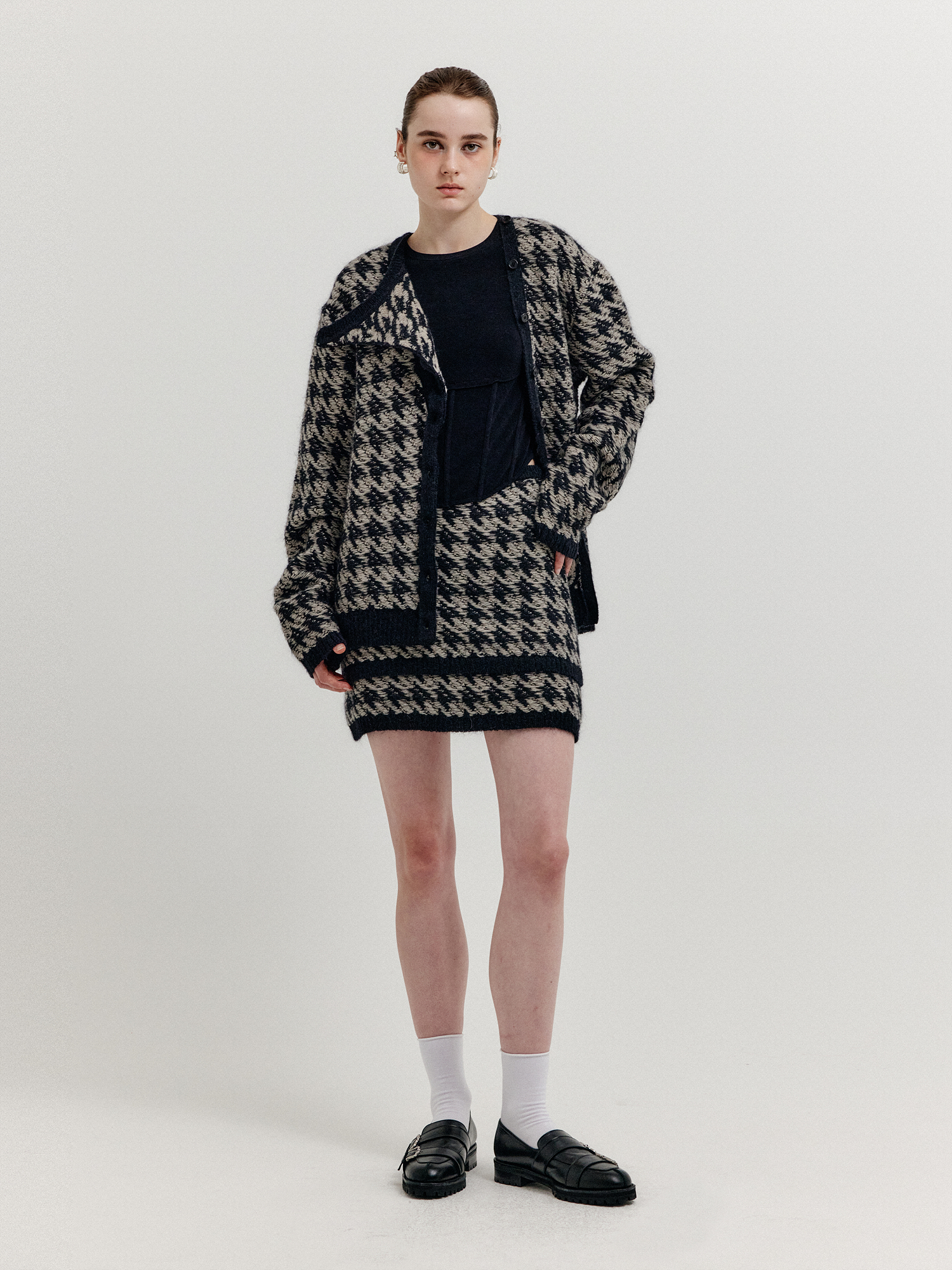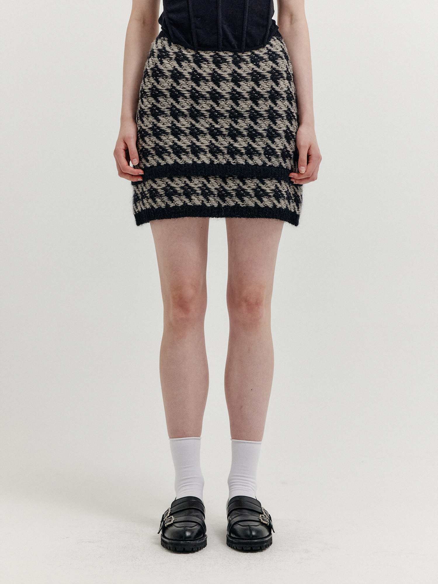 - 하운드투스 패턴의 니트 미니스커트입니다.