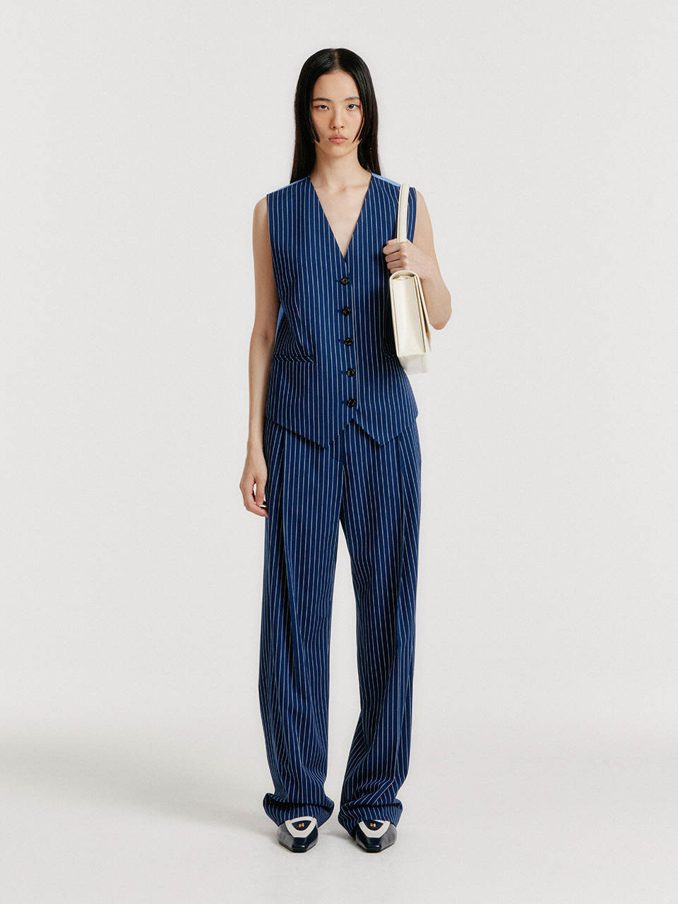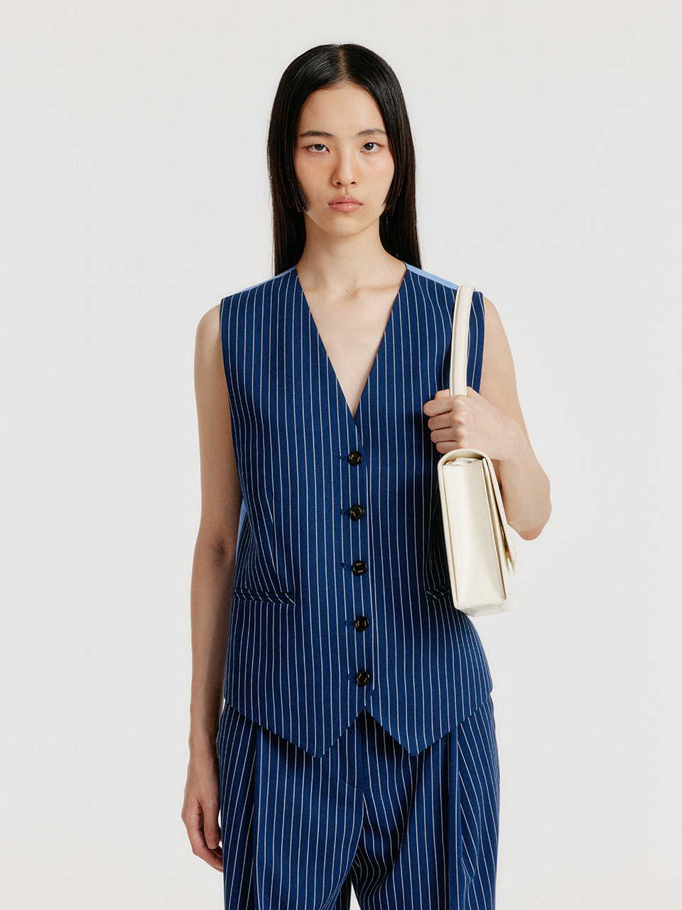 YIVA Buttoned Vest - Navy Stripe
