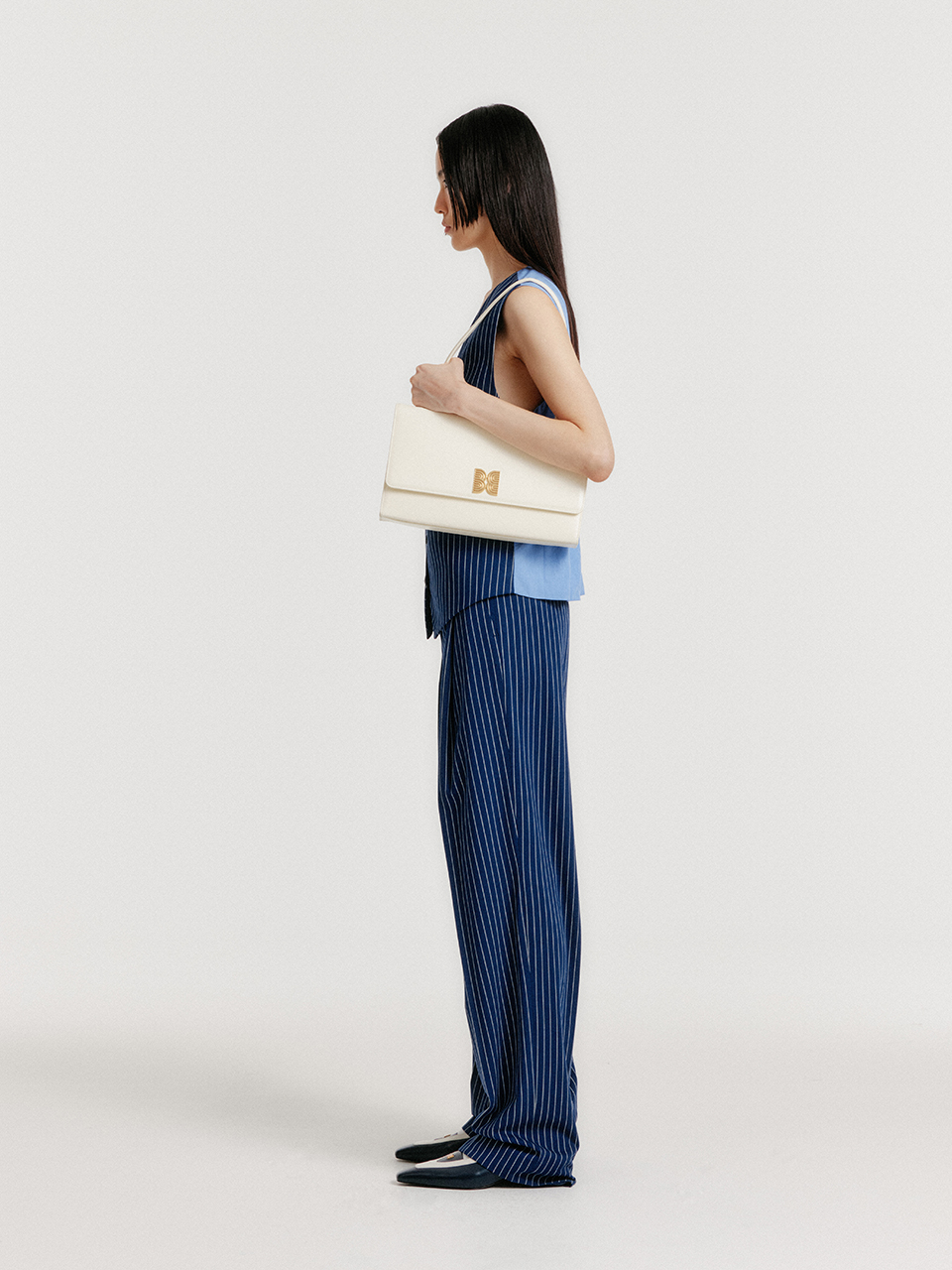 - 등쪽의 허리 밴딩이 정돈된 실루엣을 만들어냅니다.