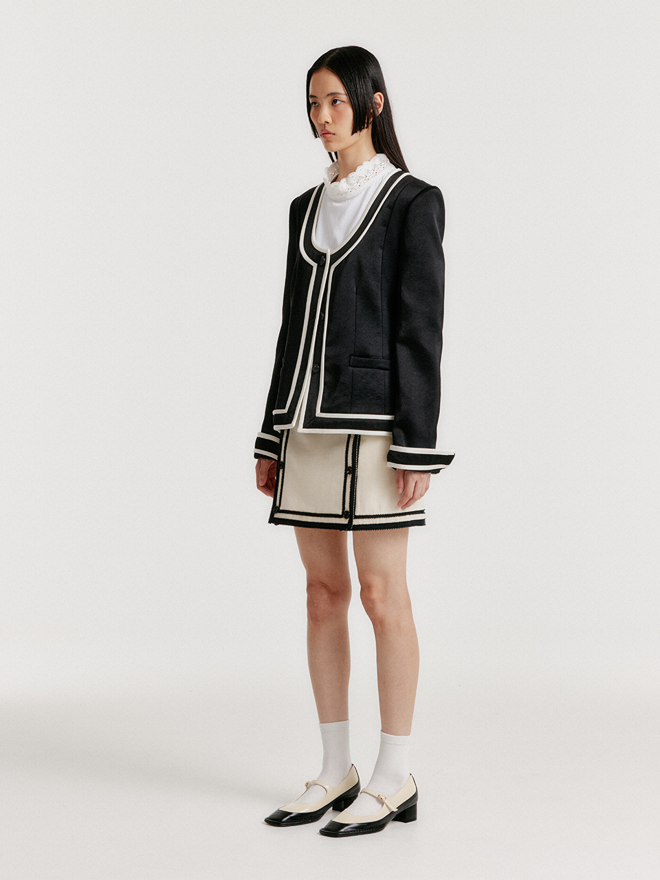 YASE Contrast U-Neck Jacket - Black/Ivory