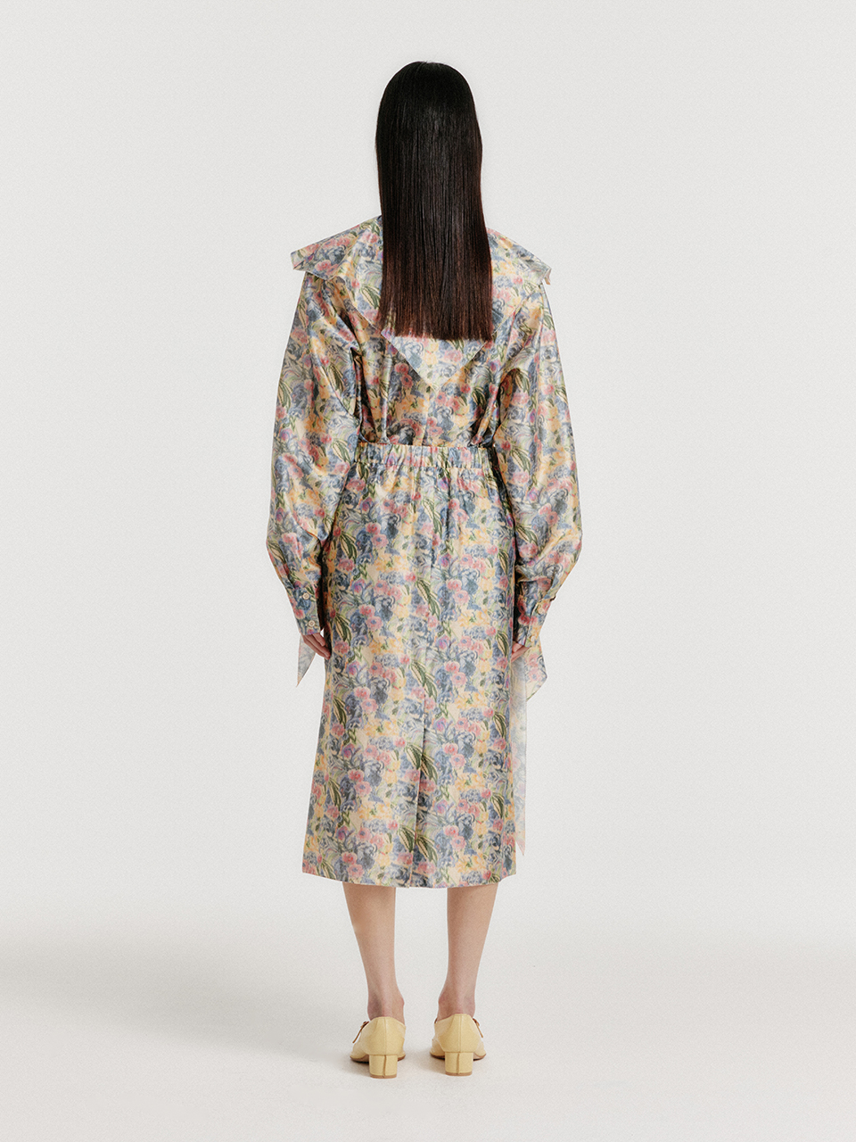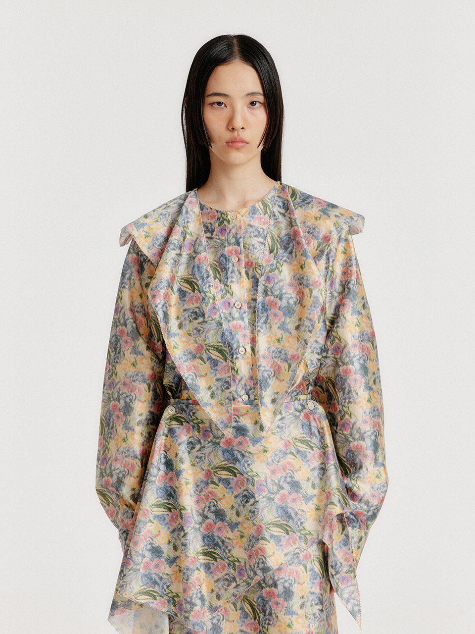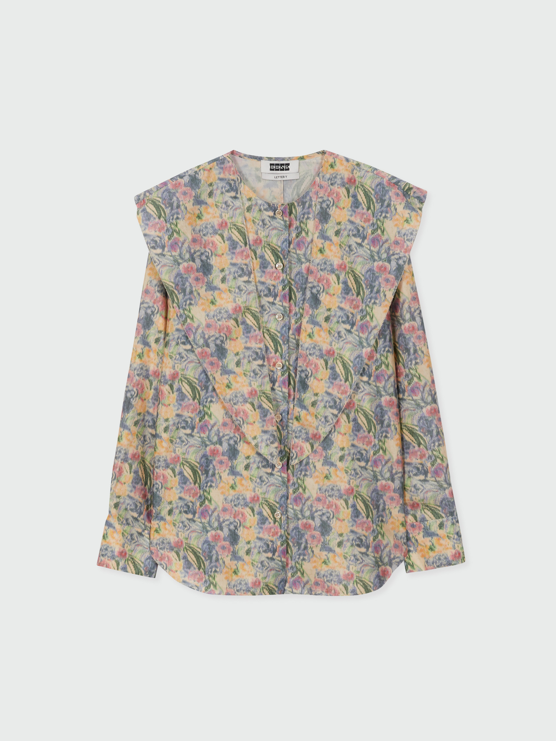 - 플로럴 패턴의 실크 셔츠입니다.
