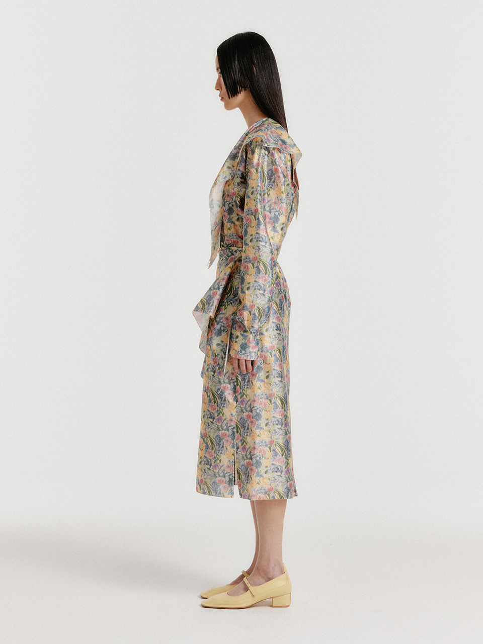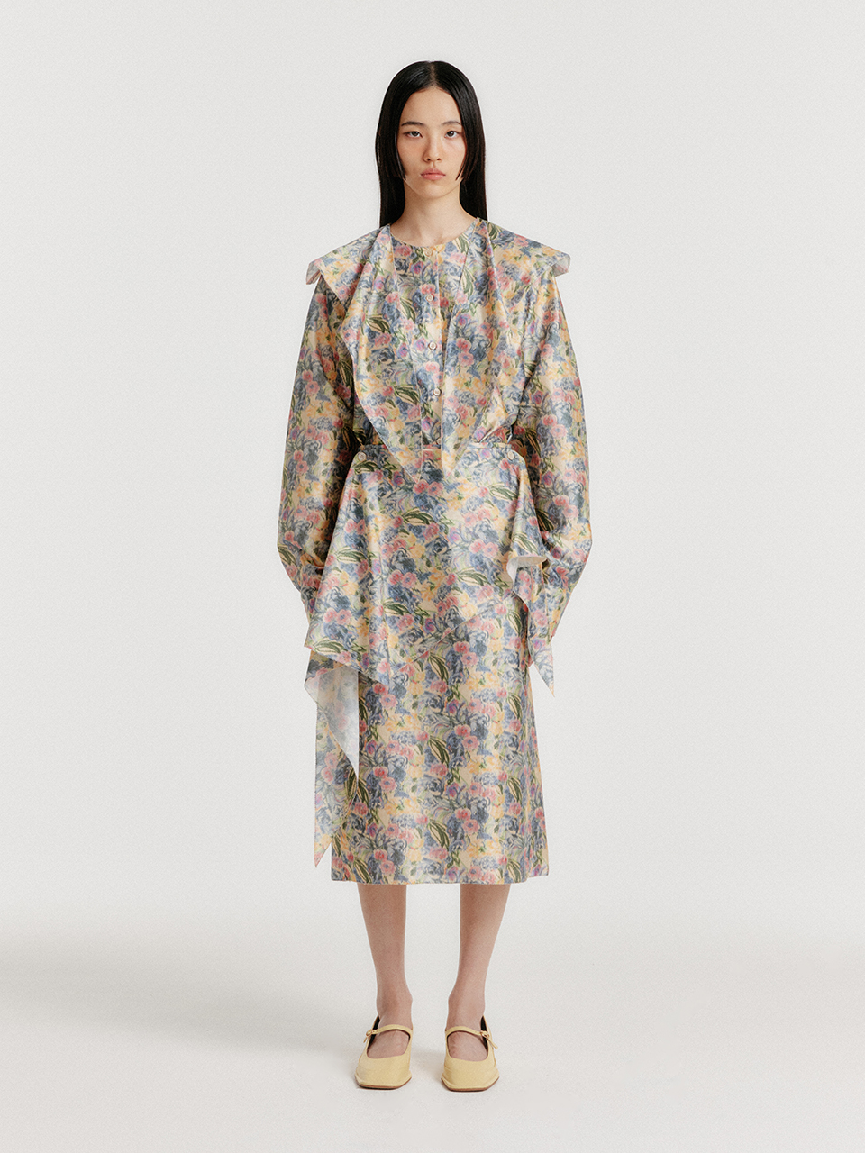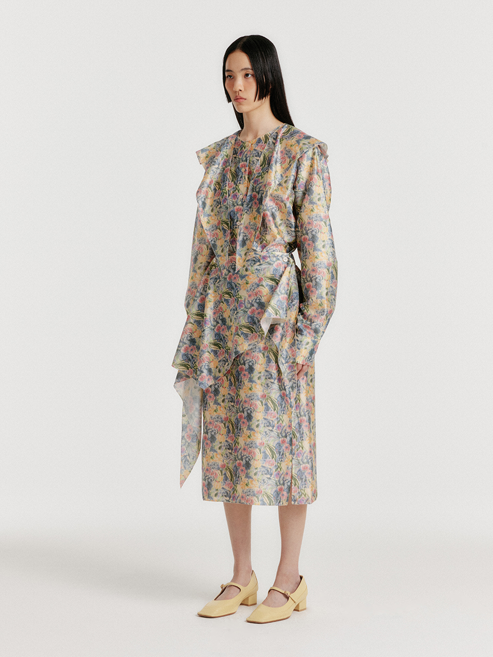 - 플로럴 패턴의 실크 셔츠입니다.