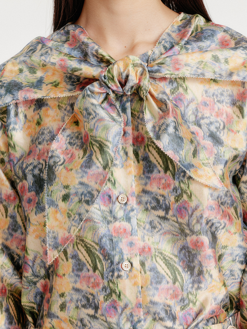 YIVONA Scarfed Shirt - Cream/Blue Multi