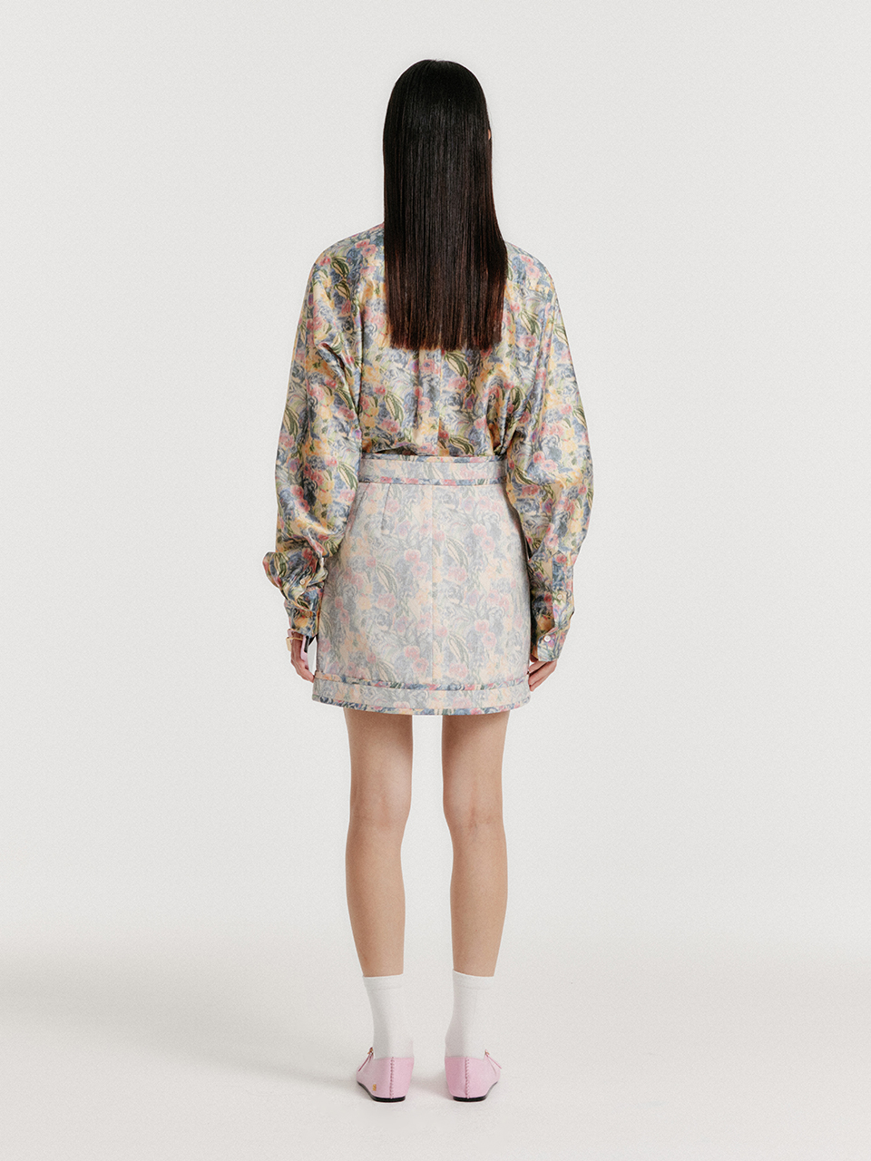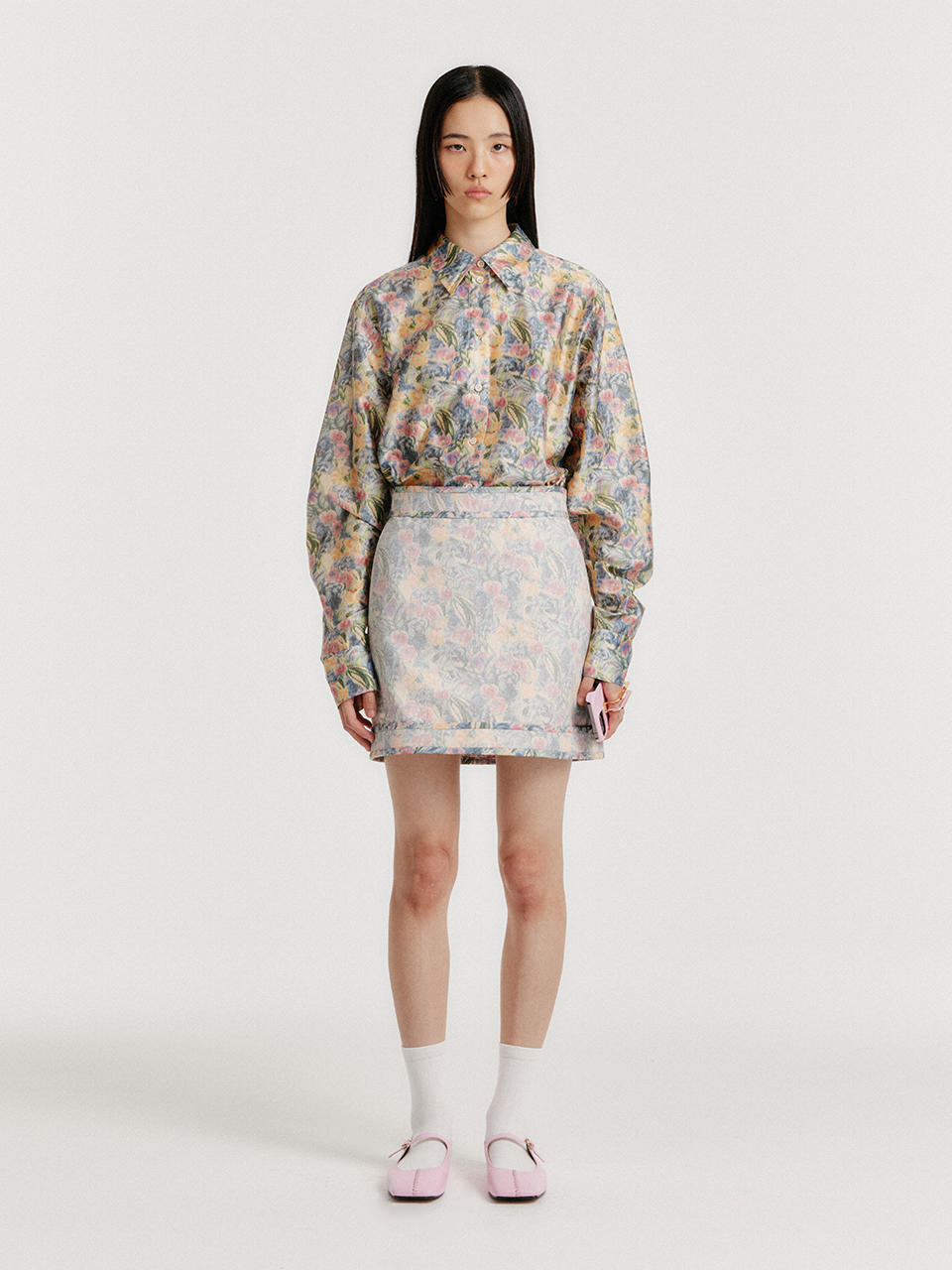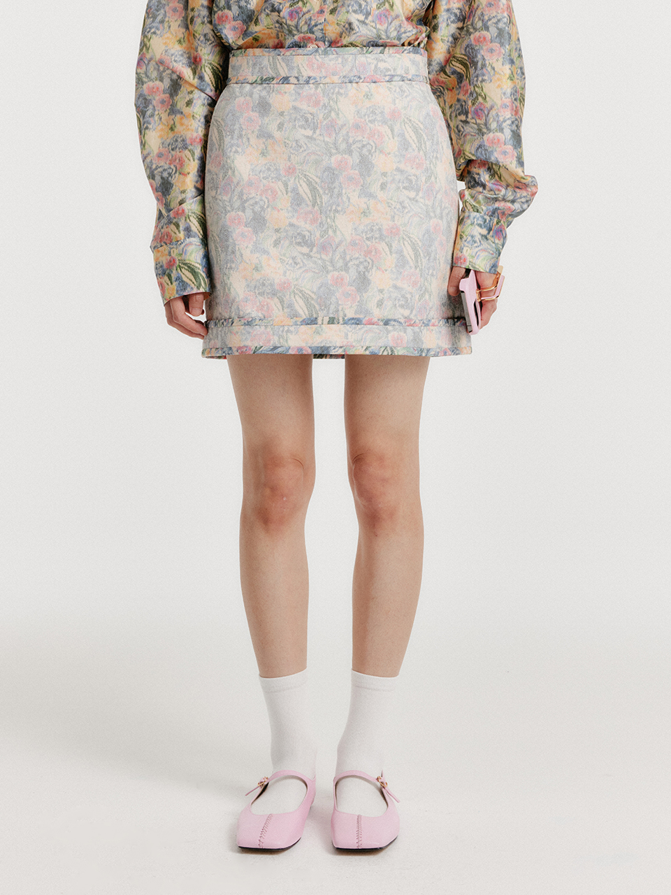 - 깔끔한 실루엣으로 플로랄 미니 스커트입니다.