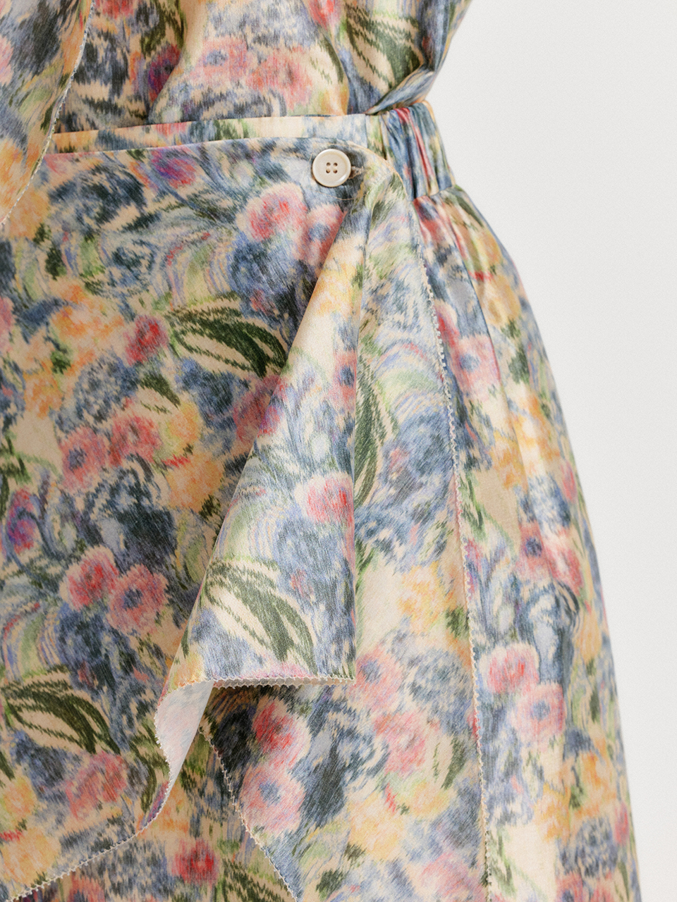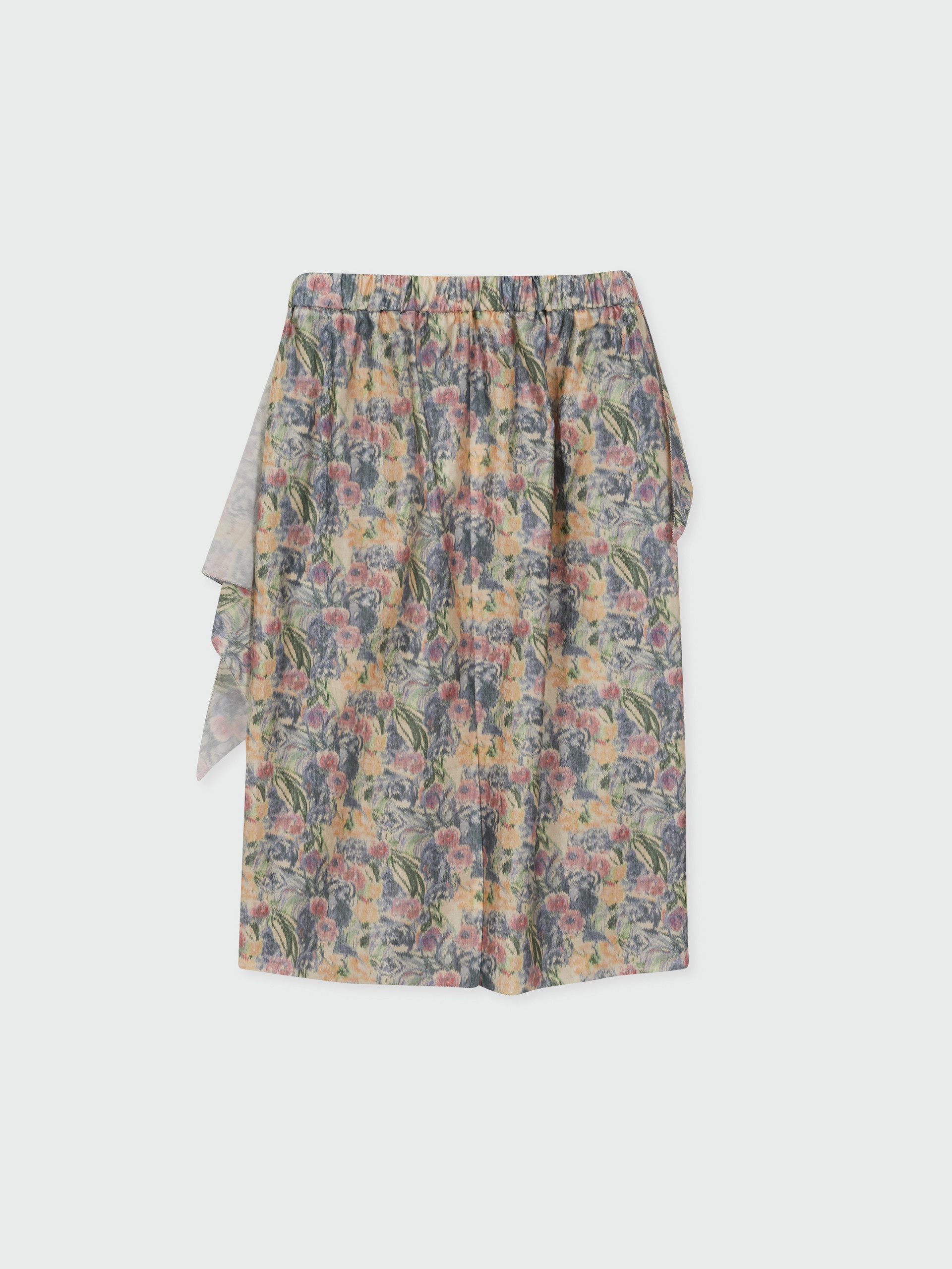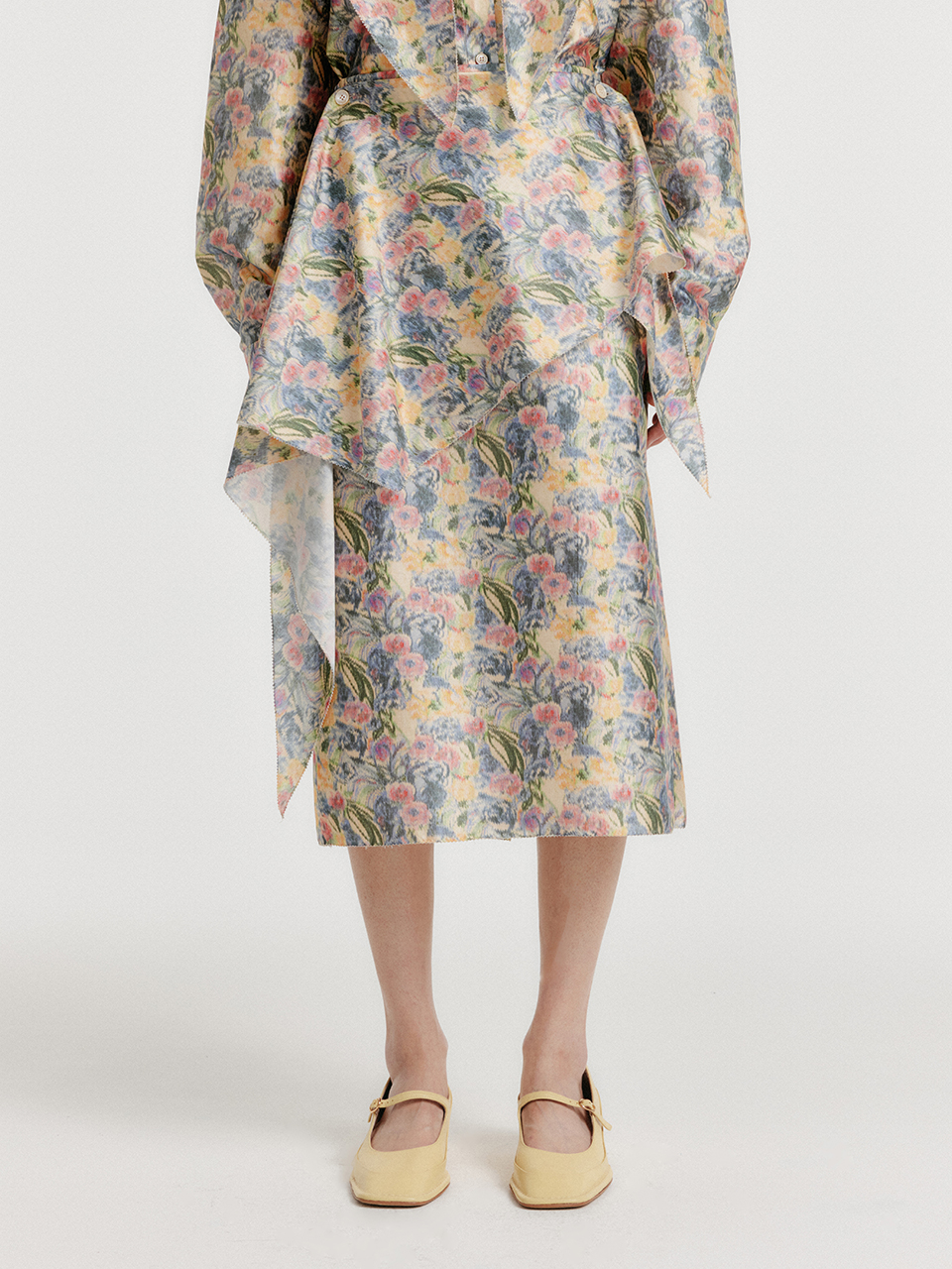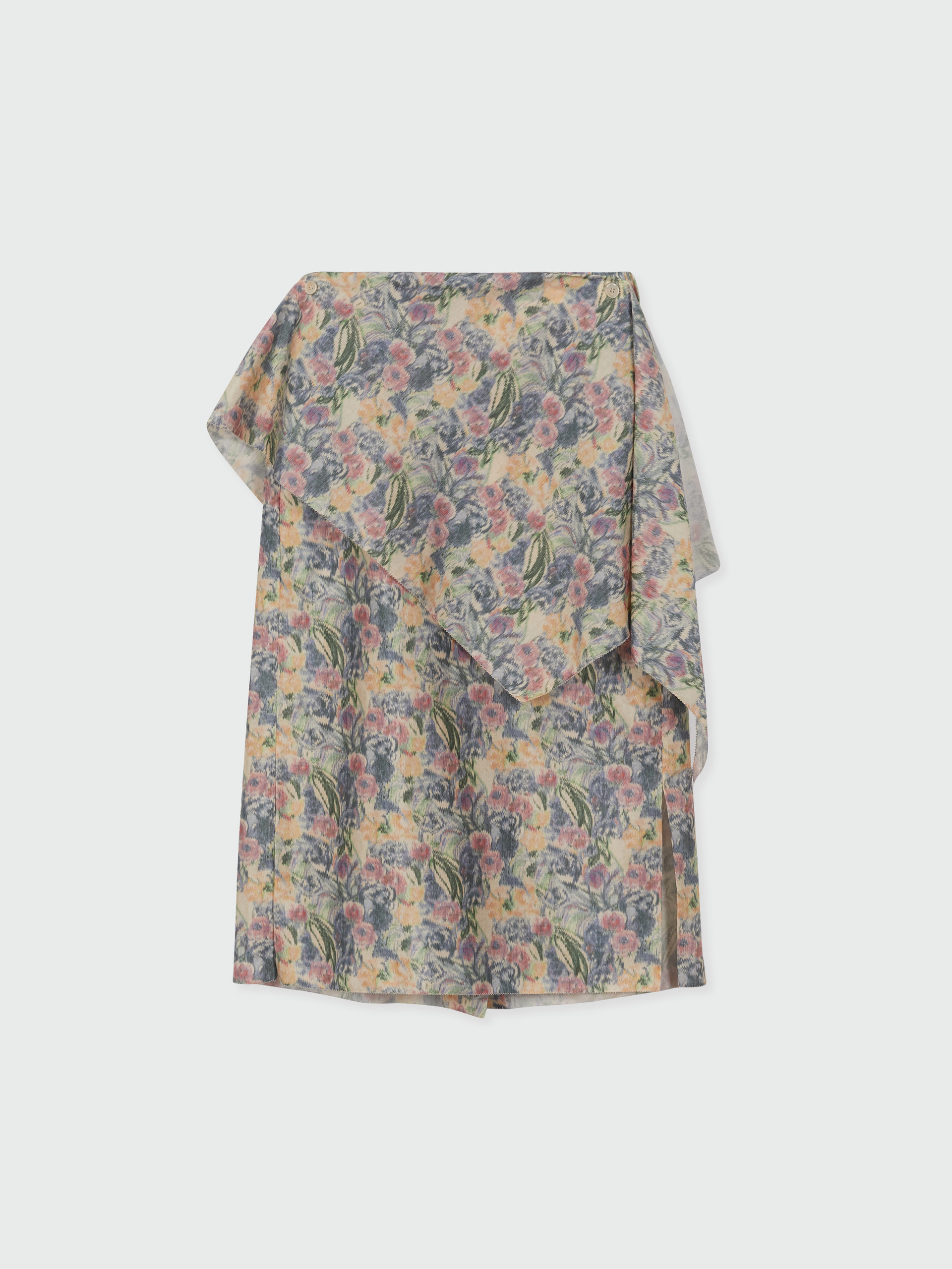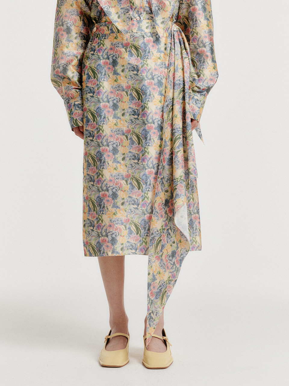 YOVEL Midi Skirt with Scarf - Cream/Blue Multi