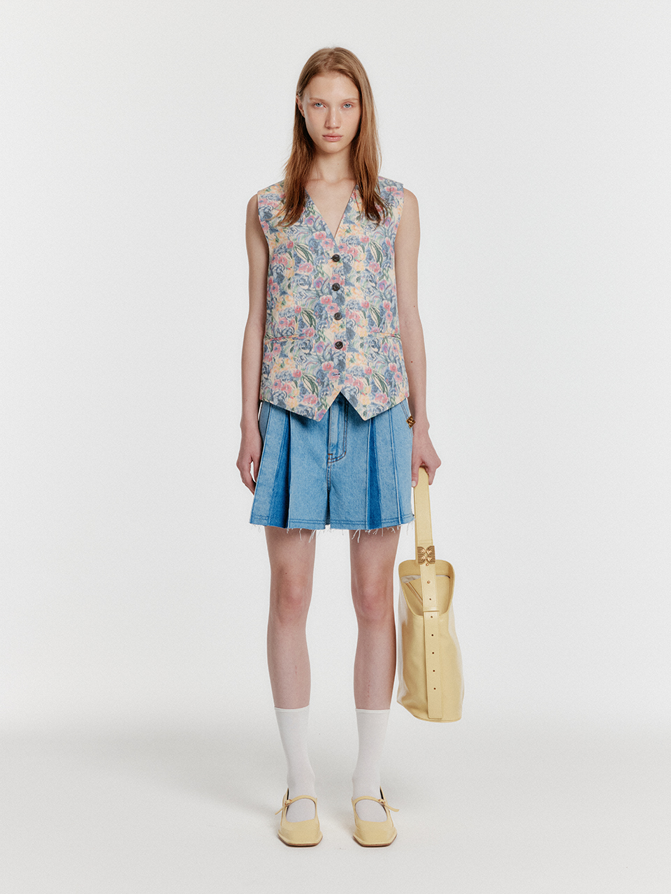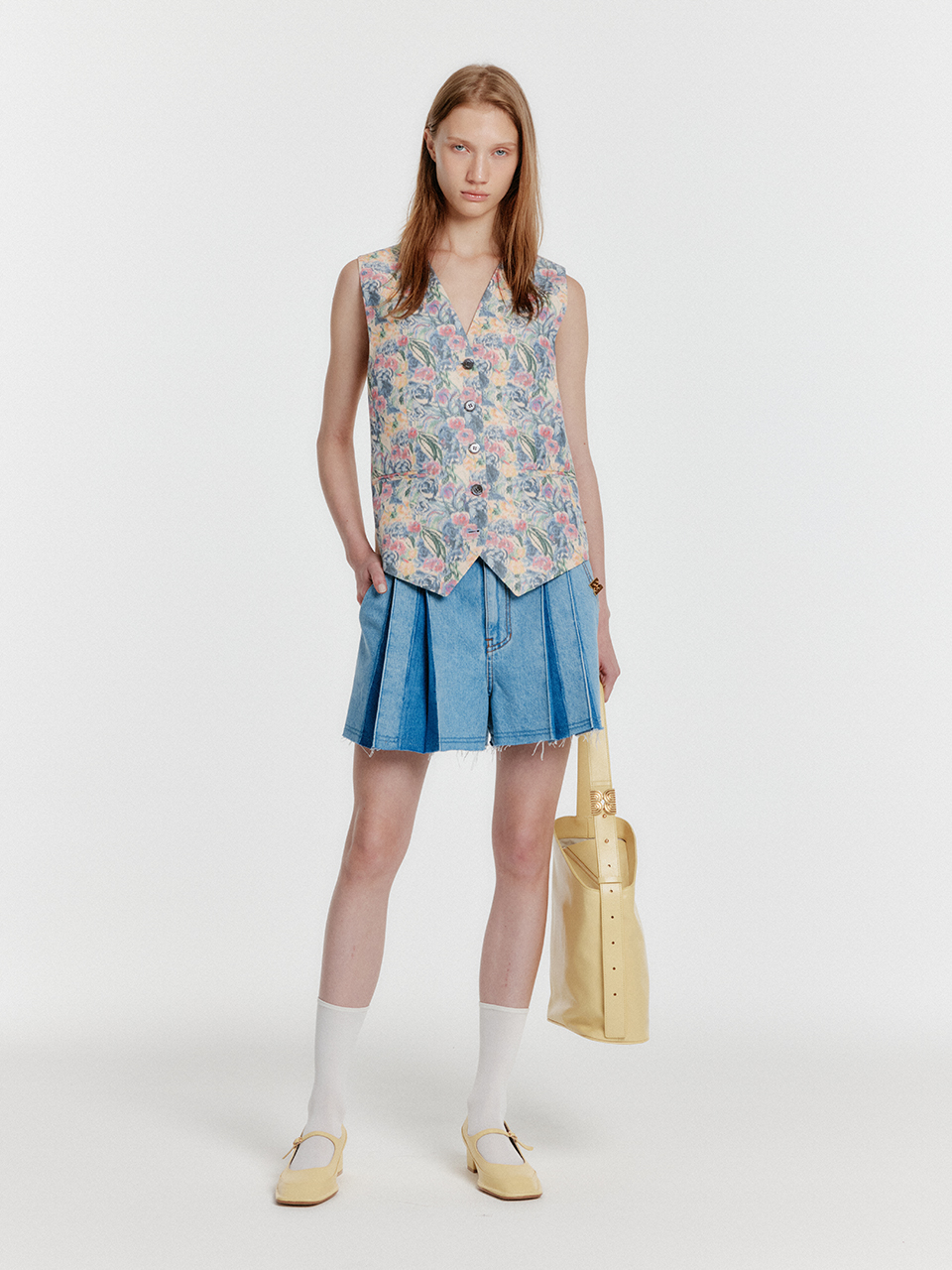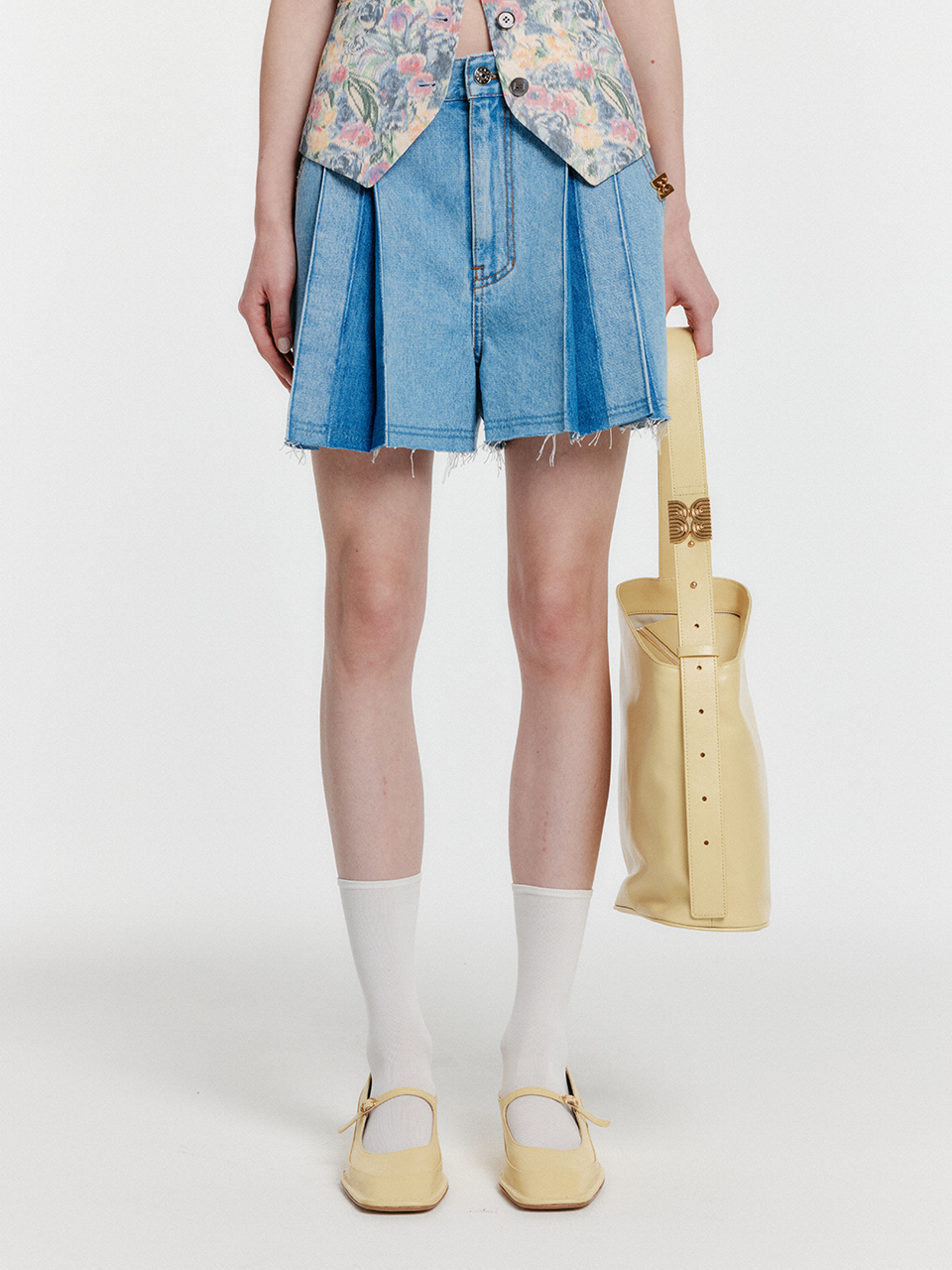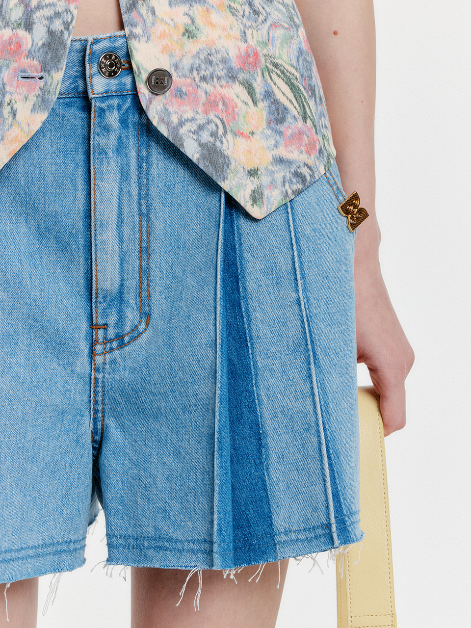 - 플리츠 핀턱 디테일의 데님 쇼츠입니다.