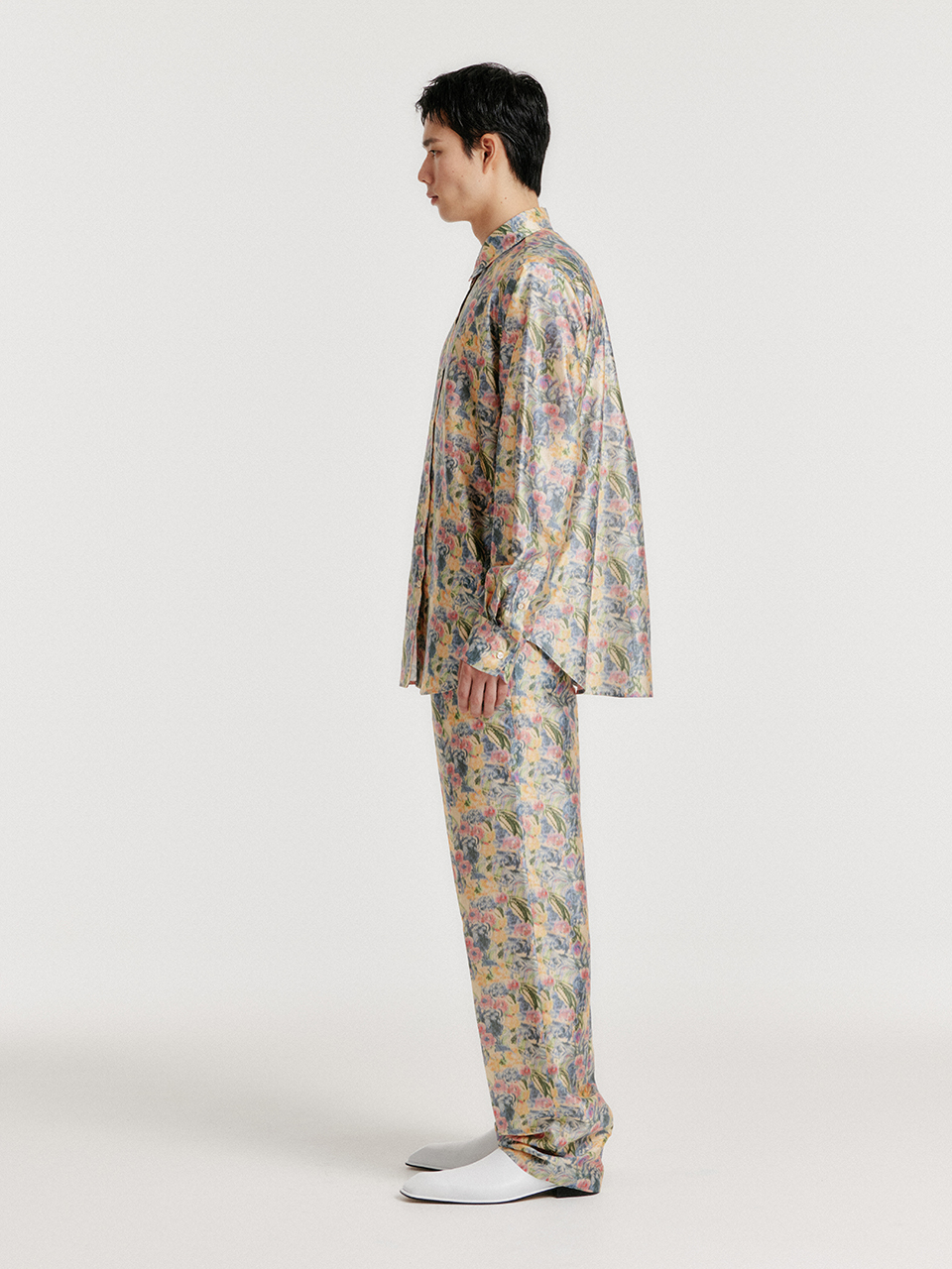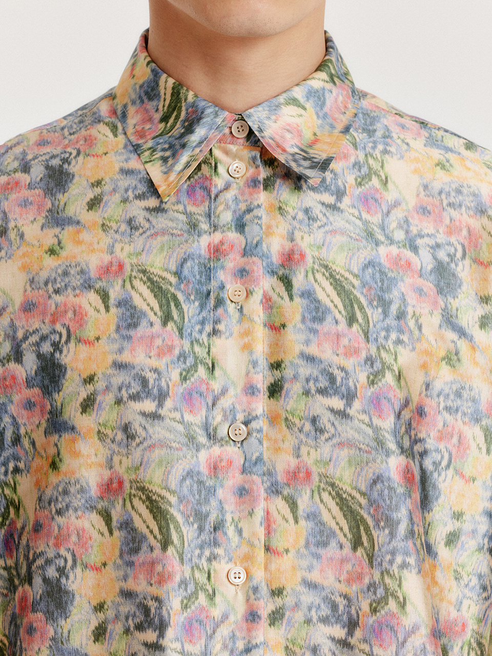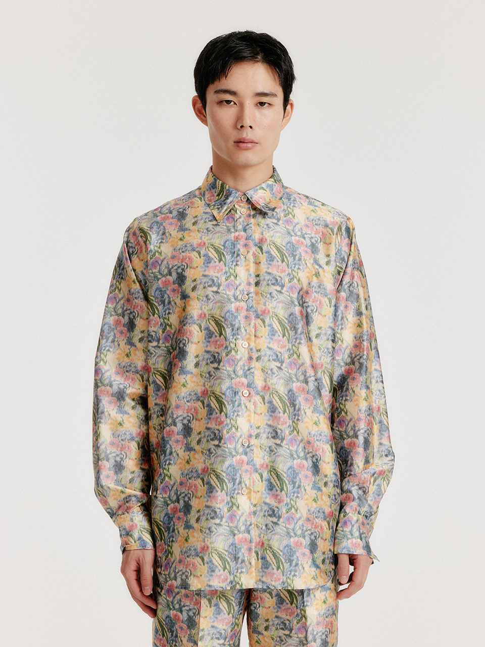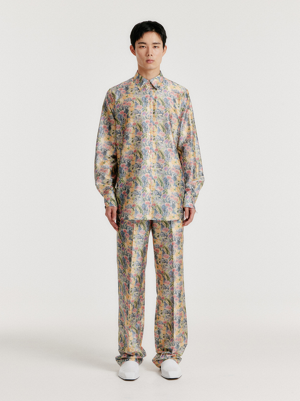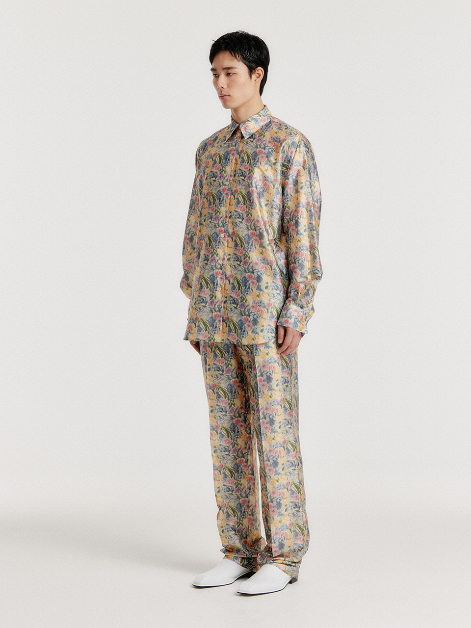 - 플로럴 패턴의 실크 셔츠입니다.