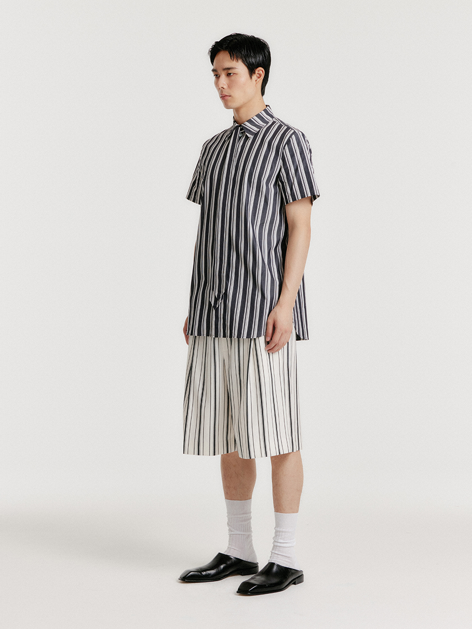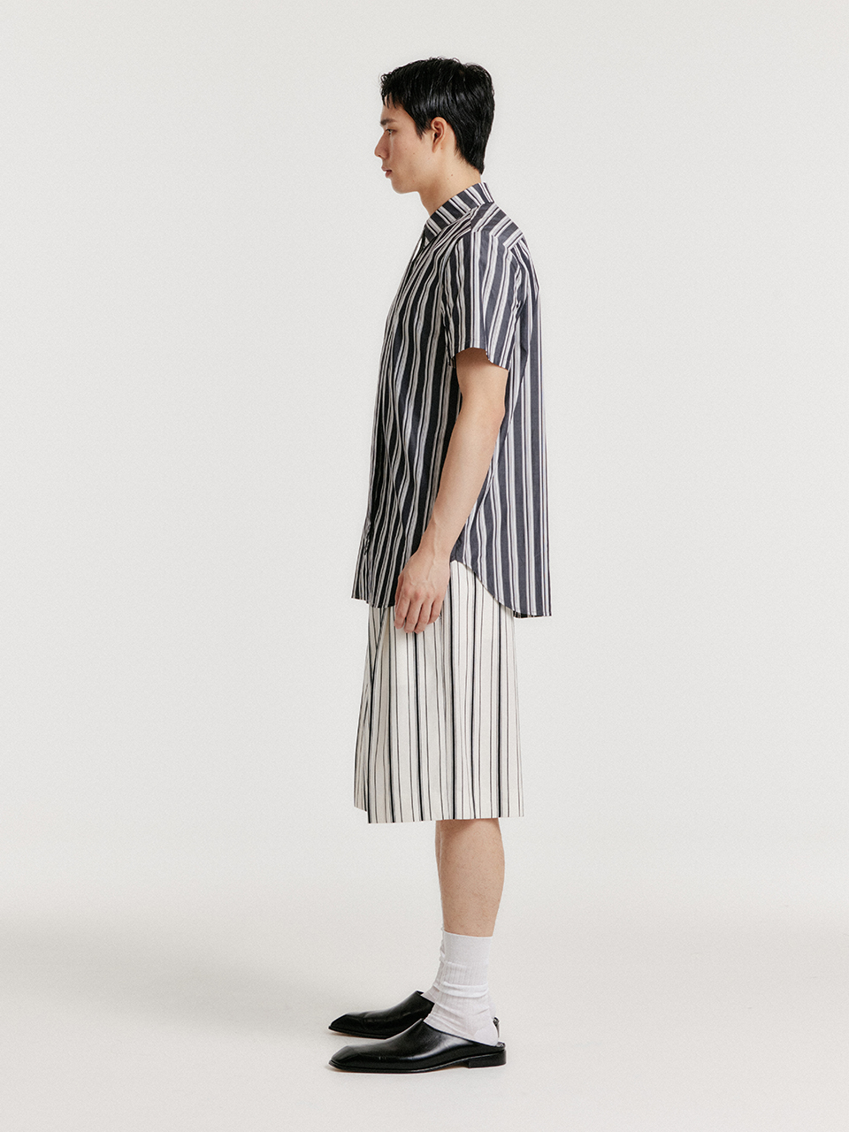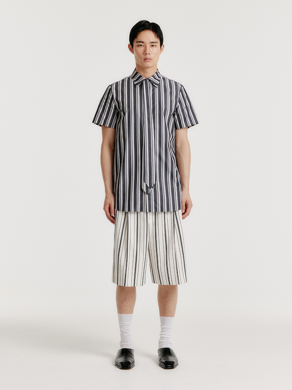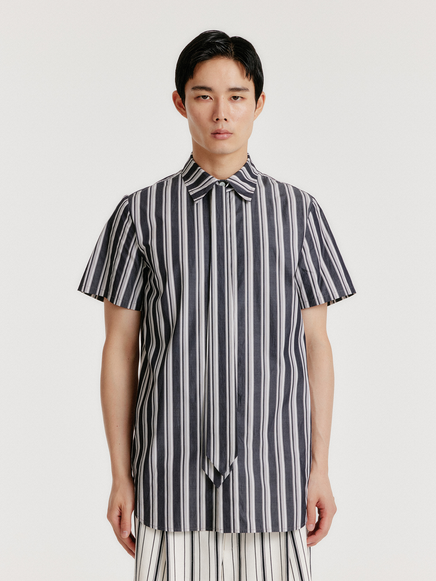 - 스트라이프 패턴의 타이셔츠입니다.