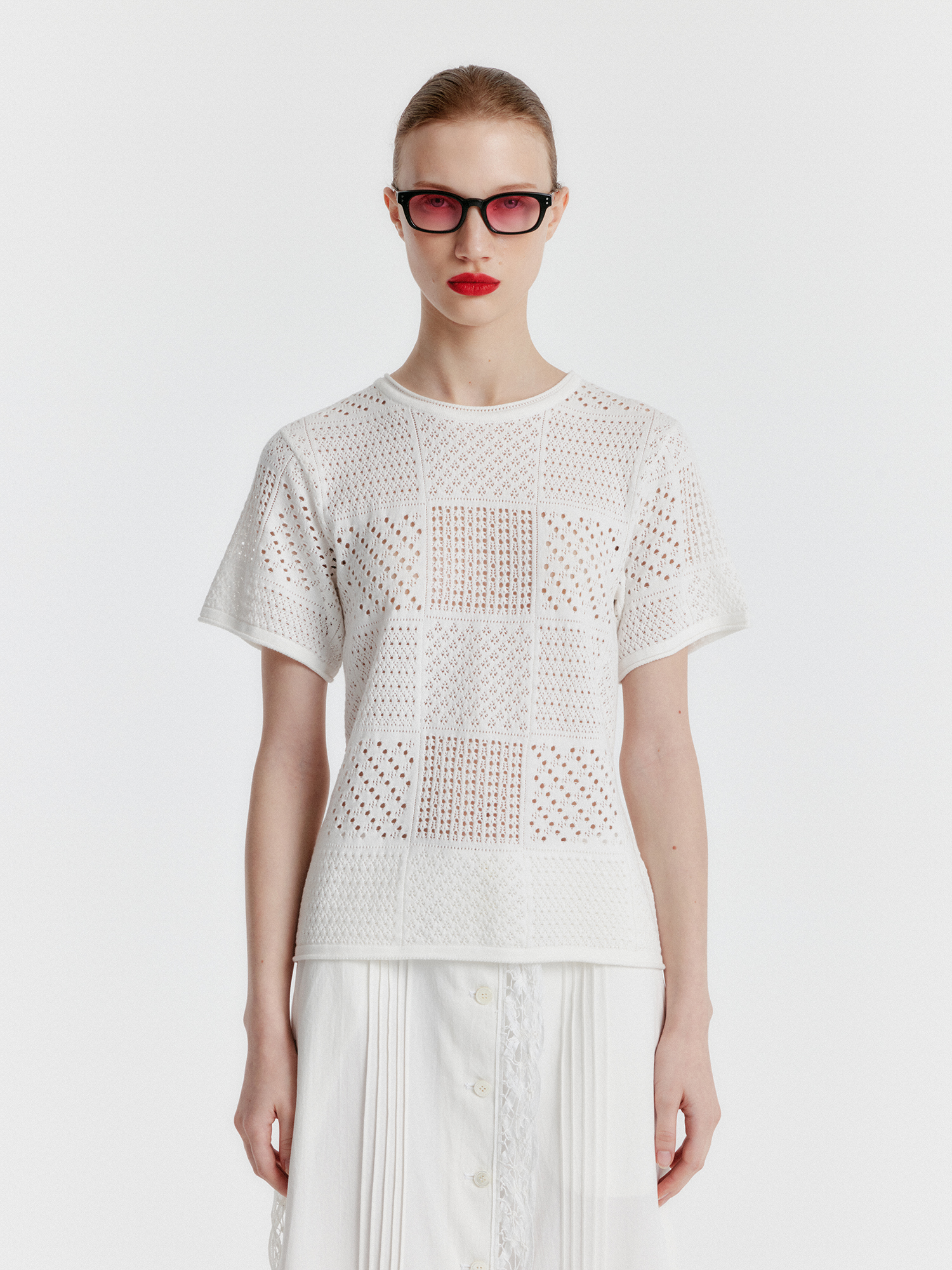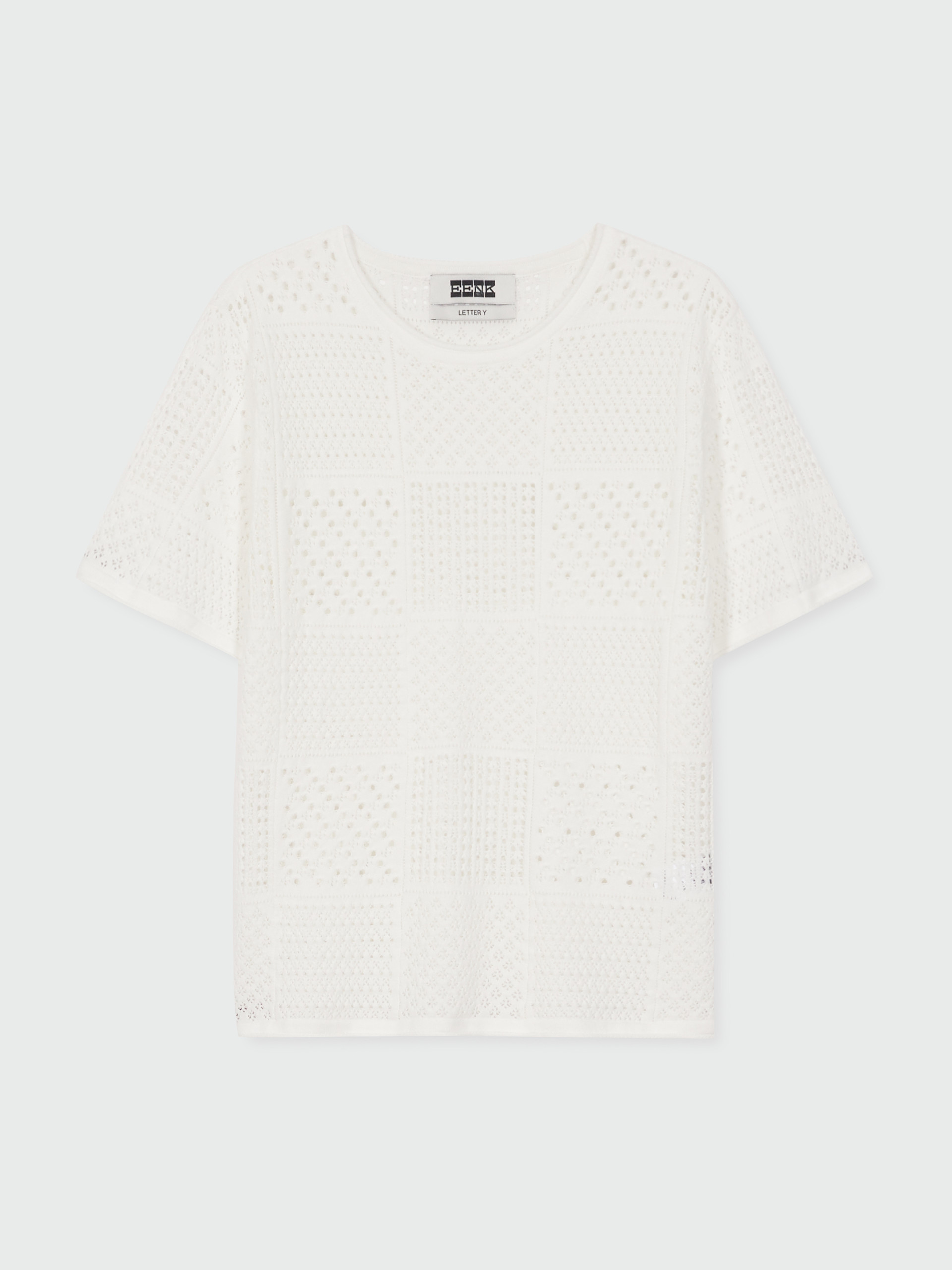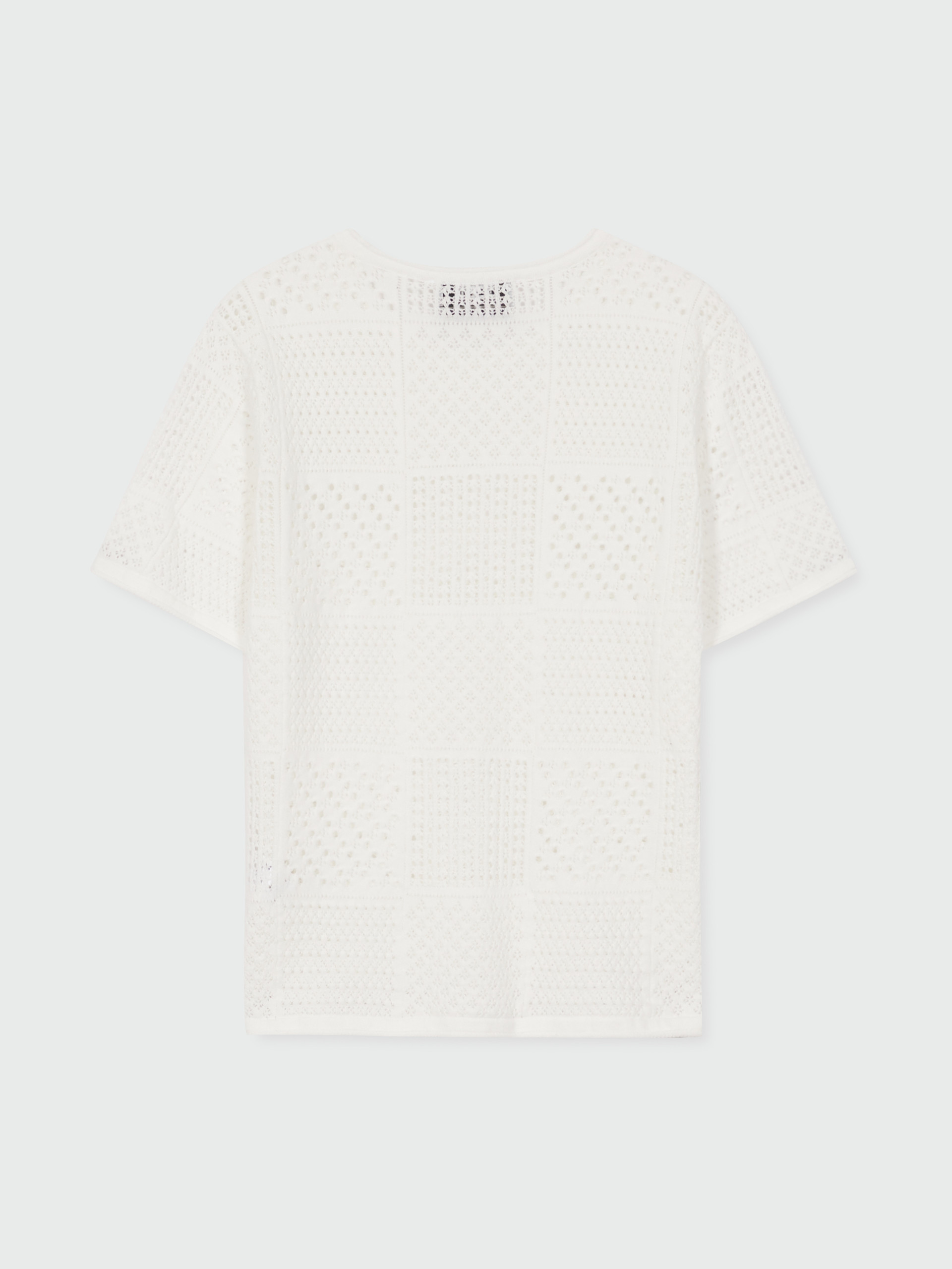 YIZU Panelled Lace Knit T-shirt - White
