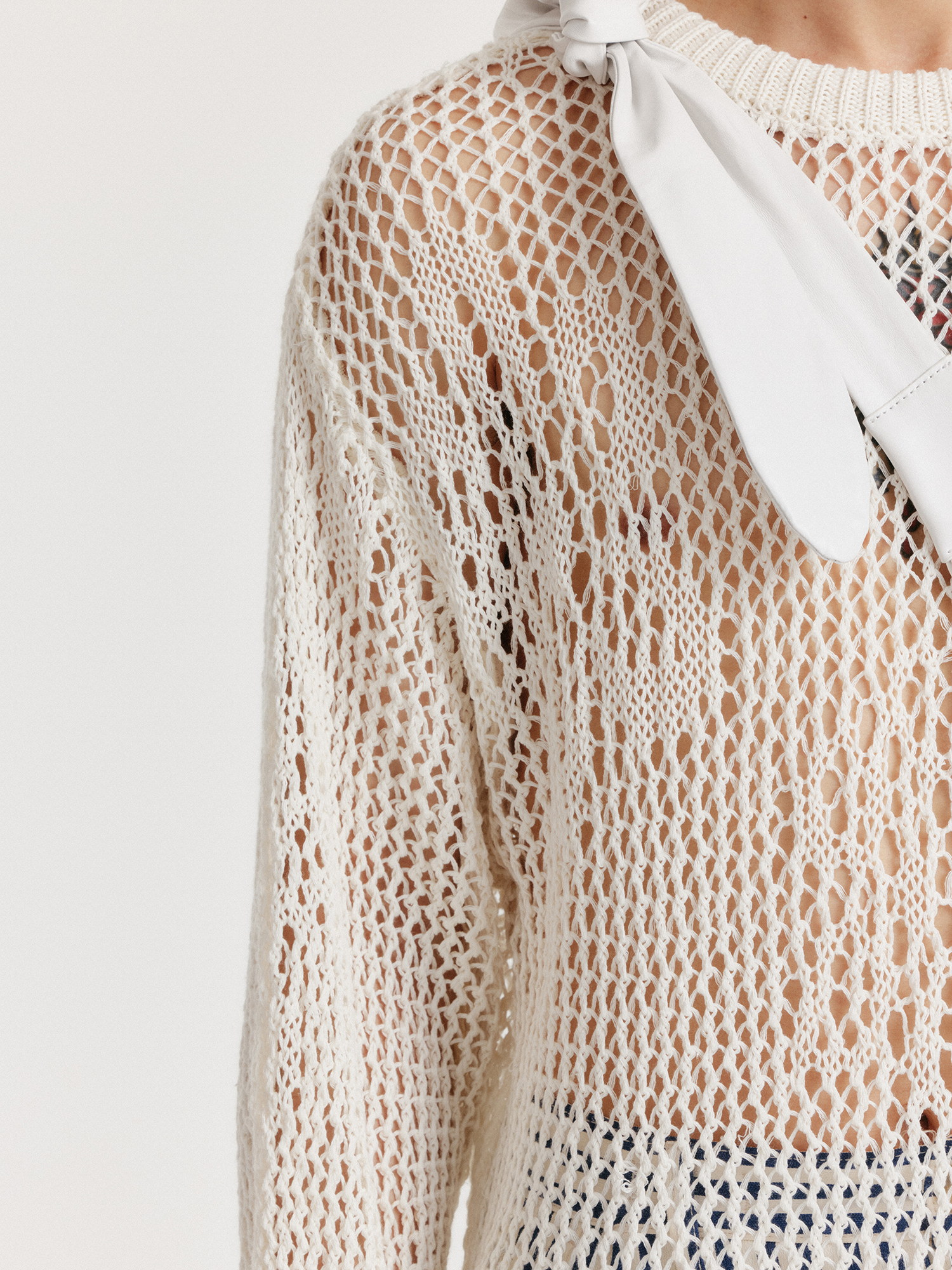 - 굵직한 짜임의 네트 스타일 니트입니다.