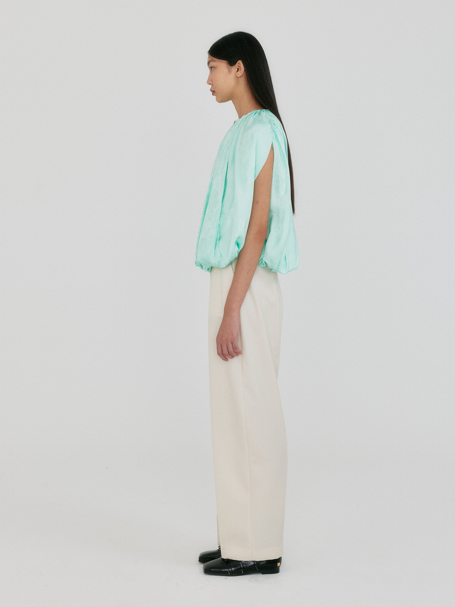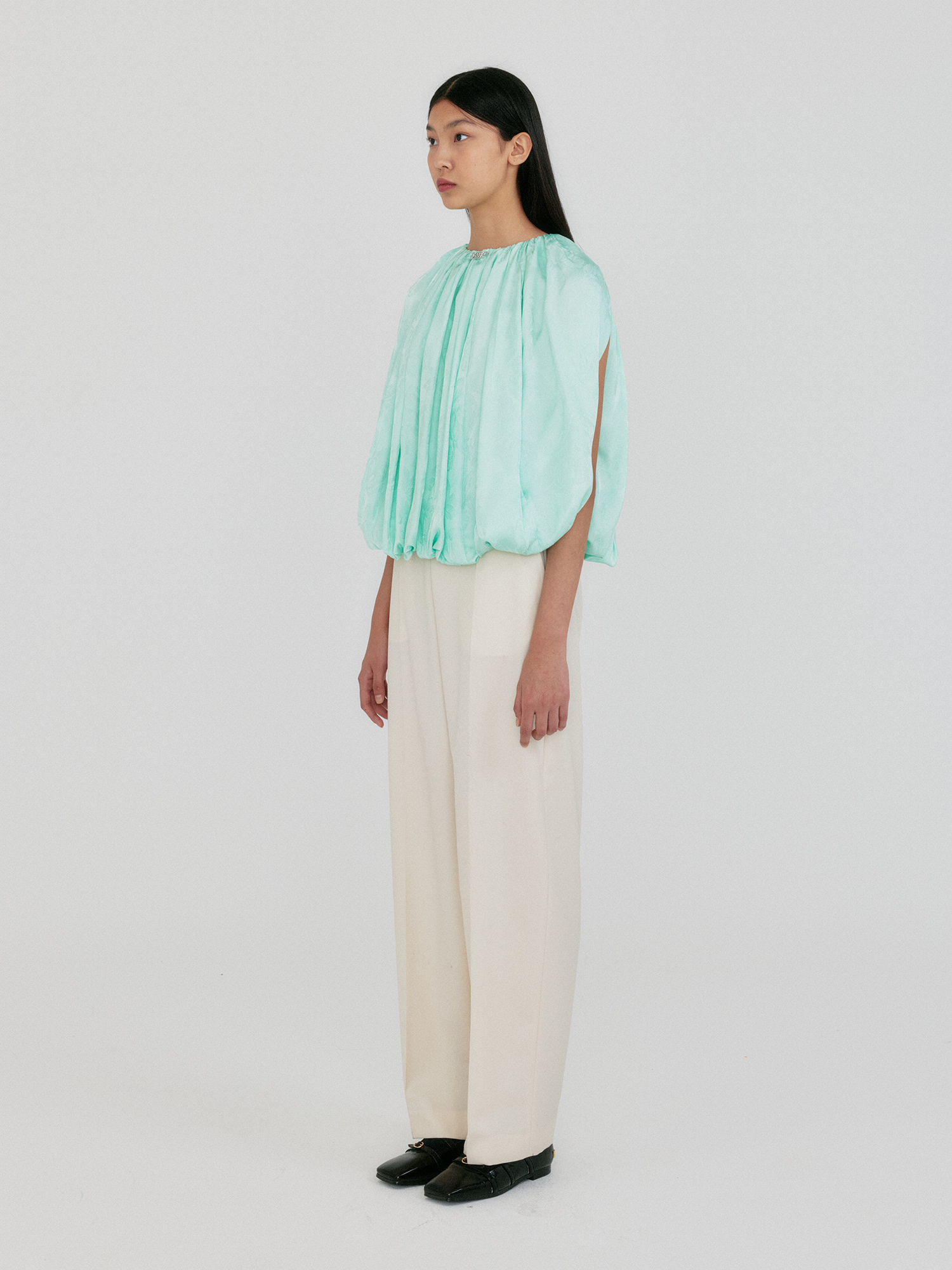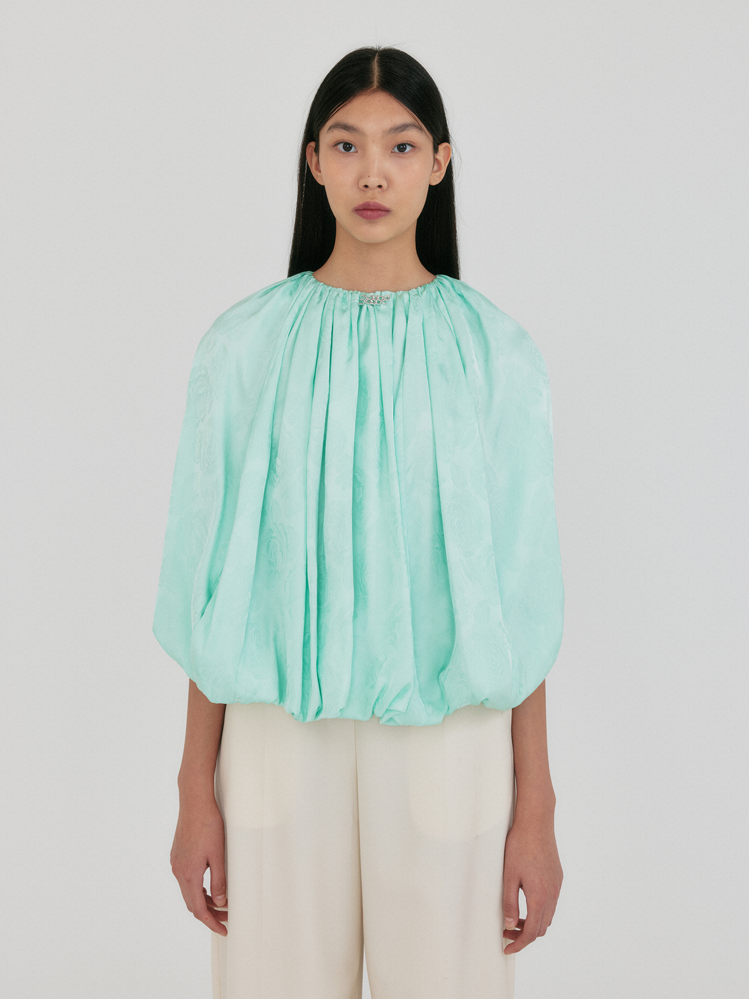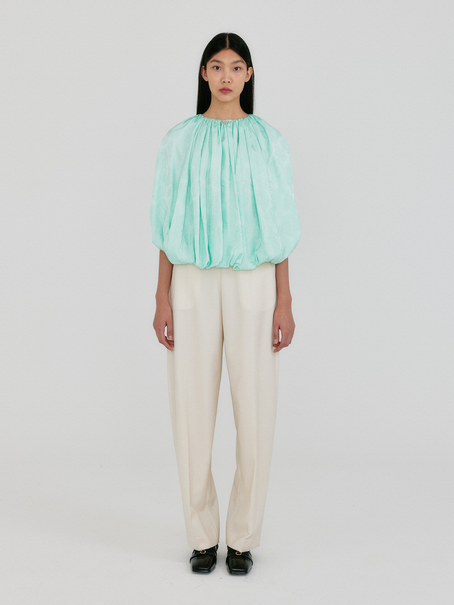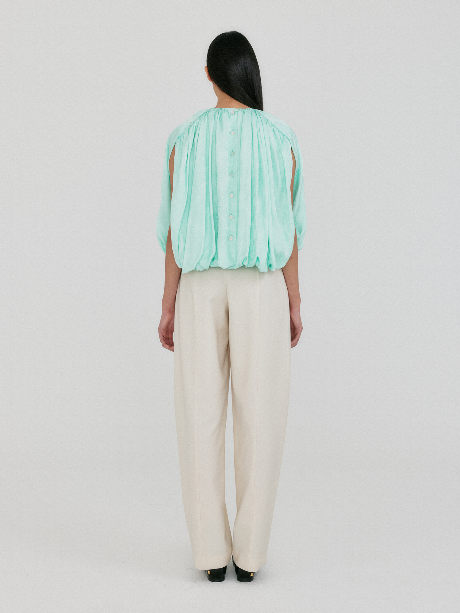 - 백 버튼 포인트의 볼륨감 있는 블라우스