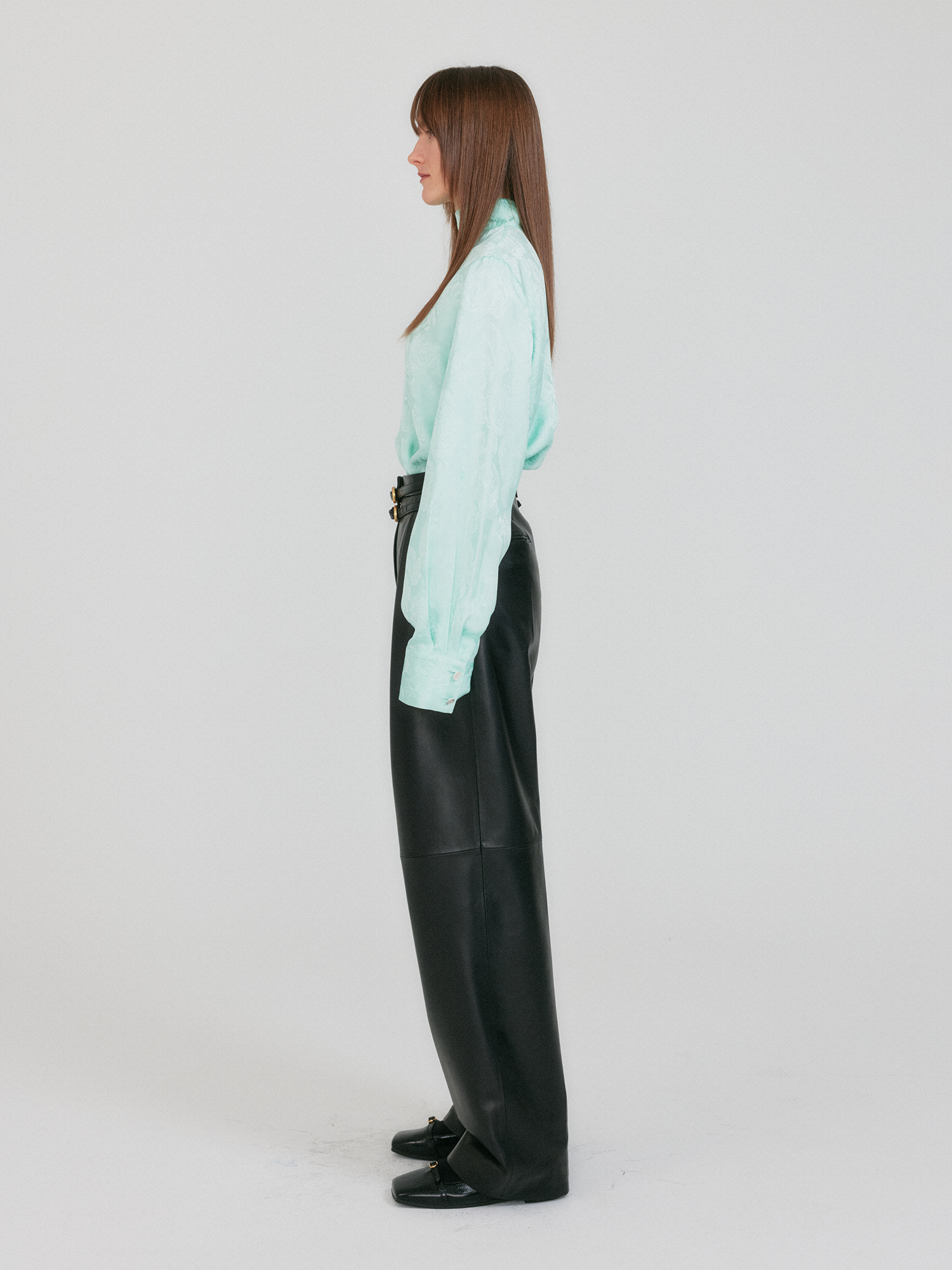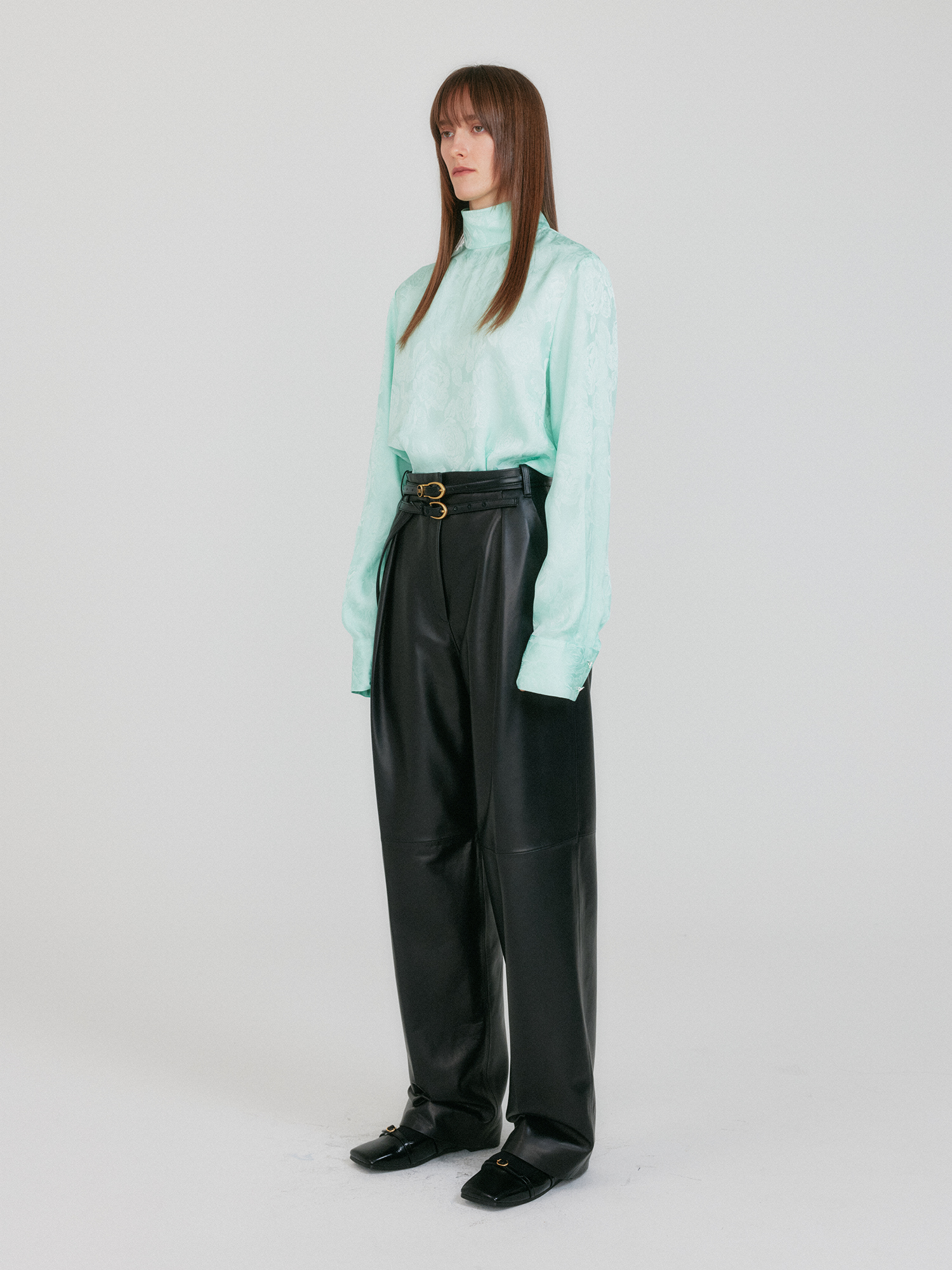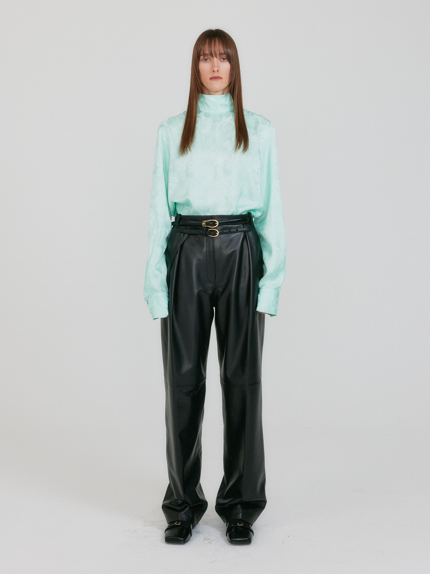 - 하이넥 실루엣으로 단정한 분위기