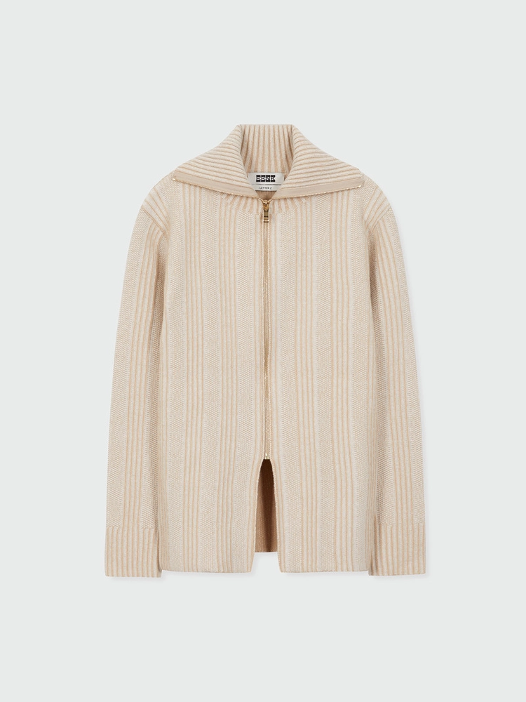 - 유니크한 패턴과 언밸런스한 지퍼 길이의 니트 집업 가디건