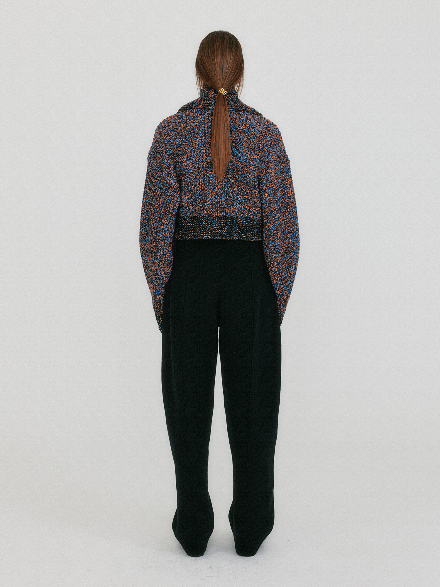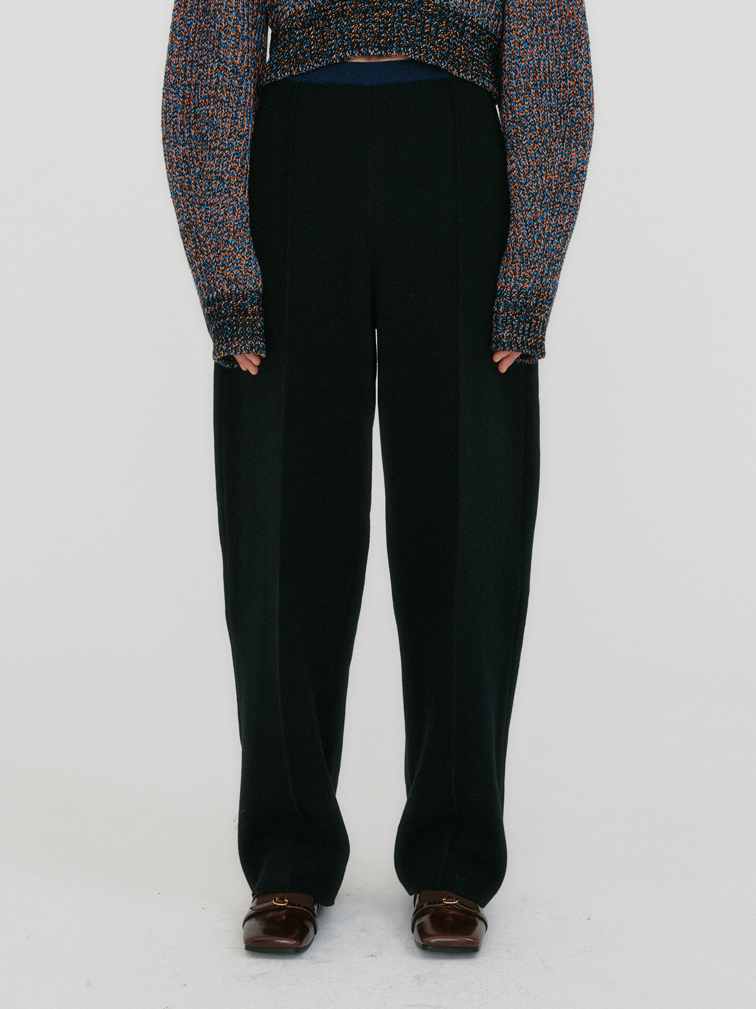 - 테이퍼드 핏의 Tuck 디테일 니트 팬츠