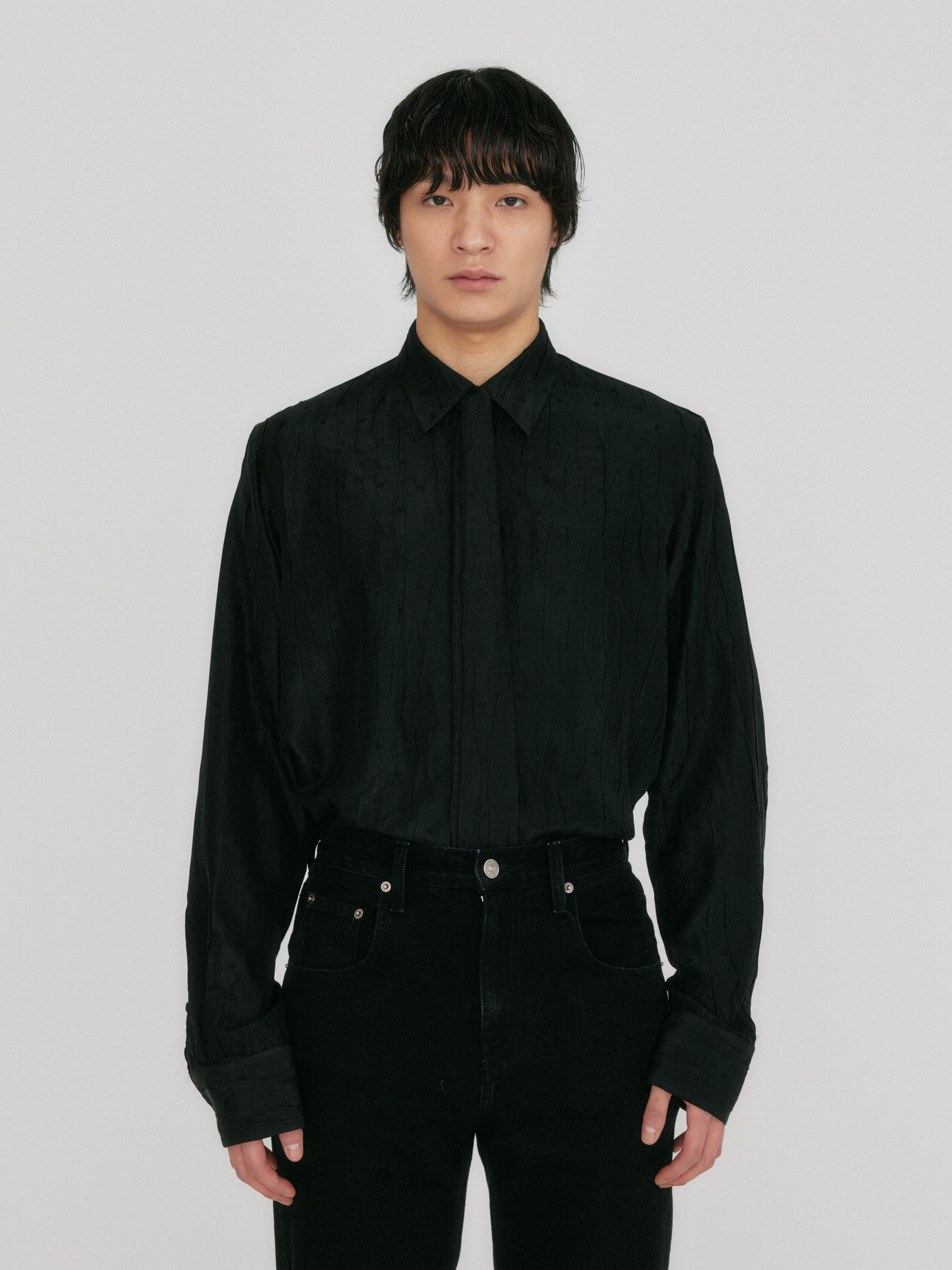 - 크라바트가 더해진 여유로은 실루엣의 셔츠