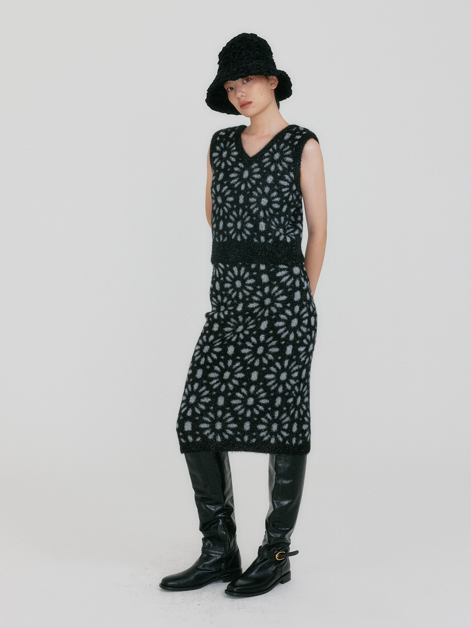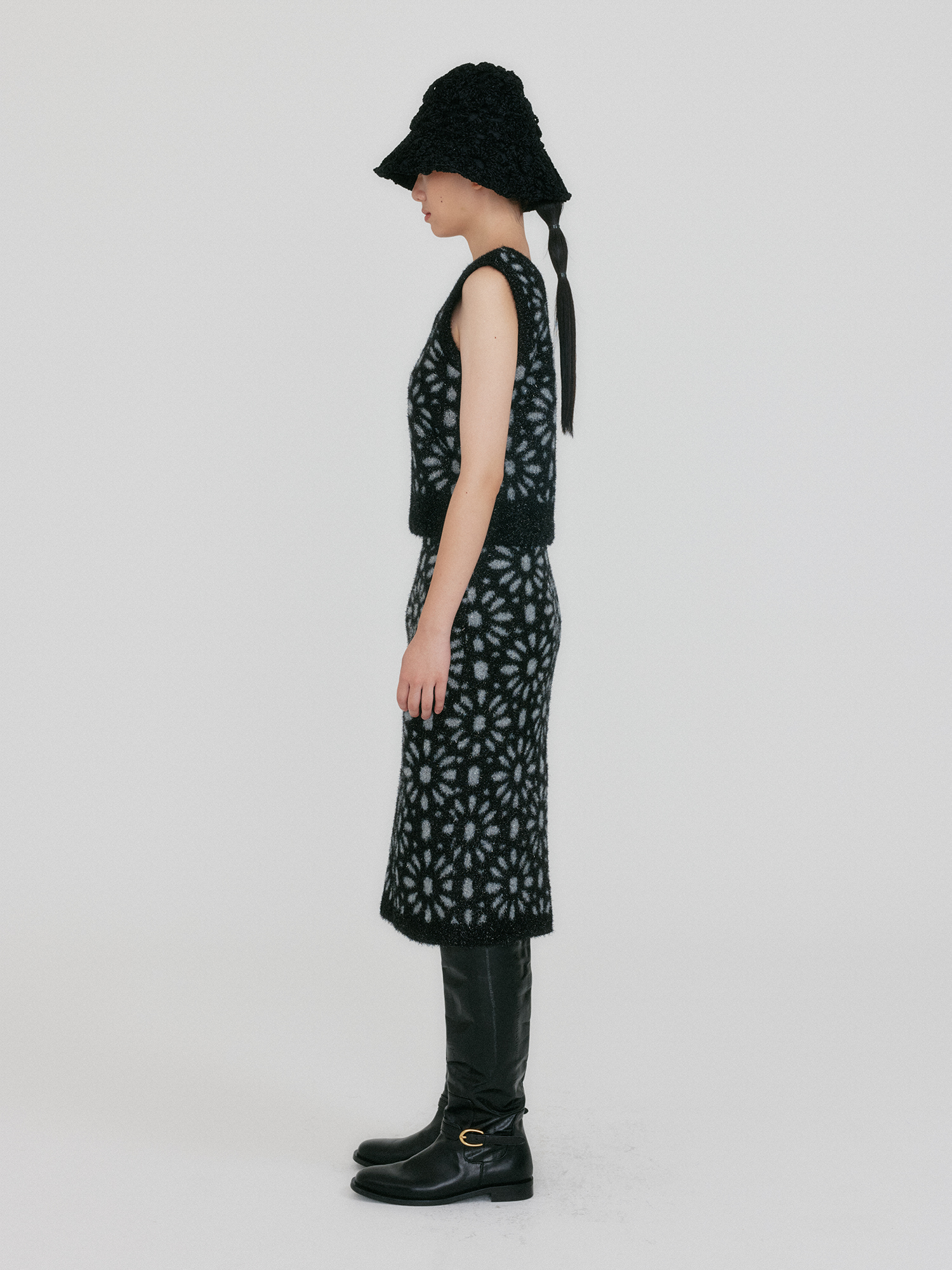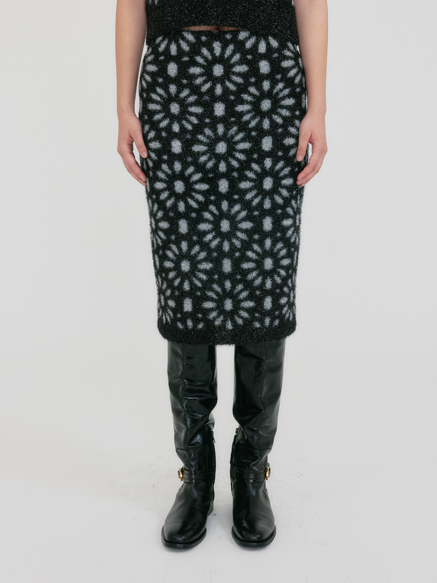 ZITIN Flower Jacquard Knitted Skirt - Black