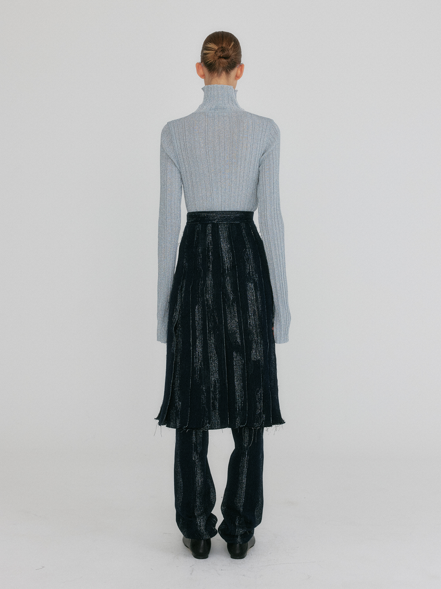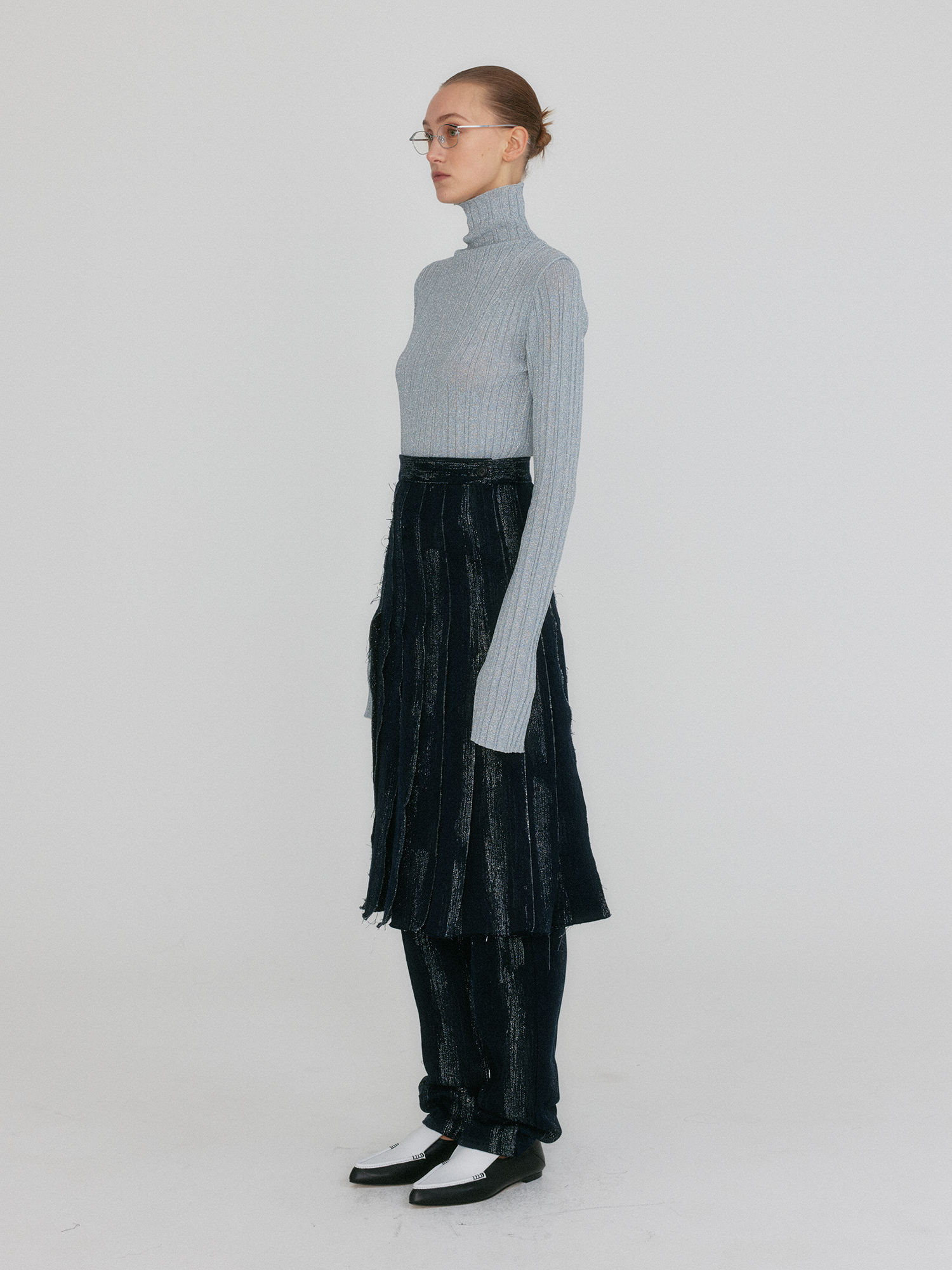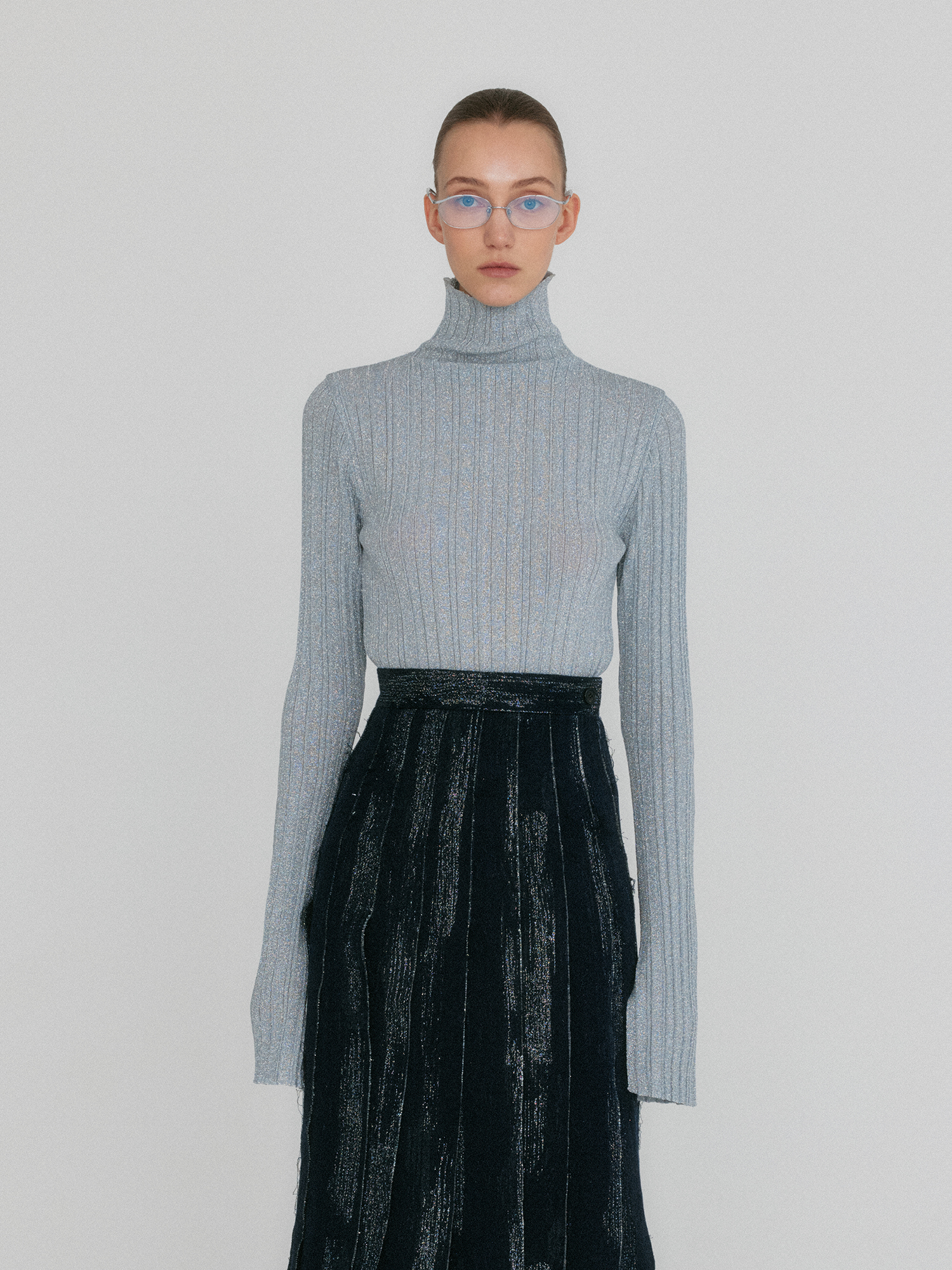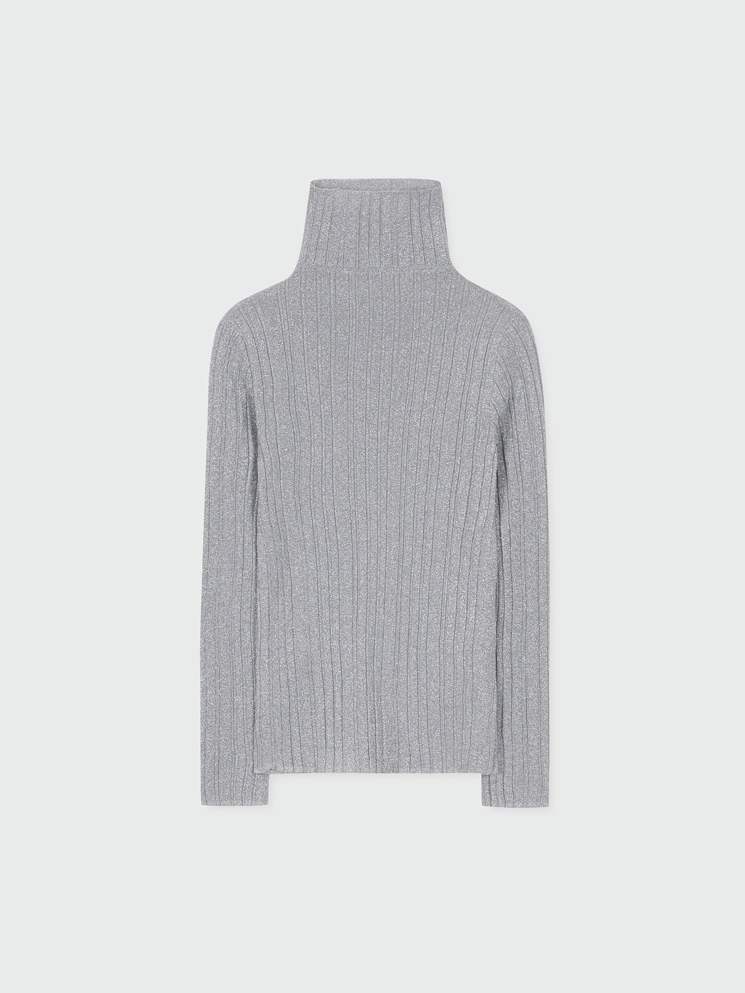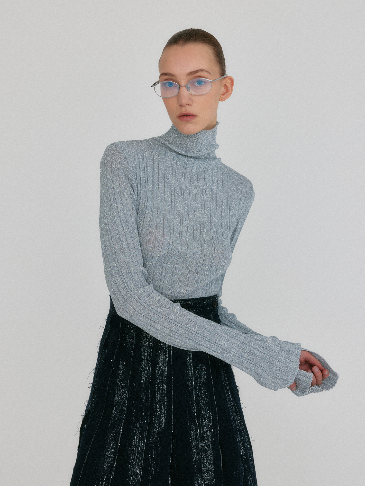 ZOUQ Slim-fit Turtle Neck Knit Top - Silver