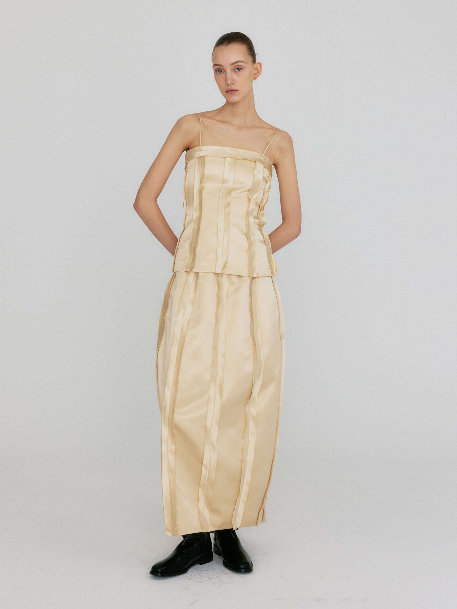 - 실크 소재의 테이프 트리밍 디테일
