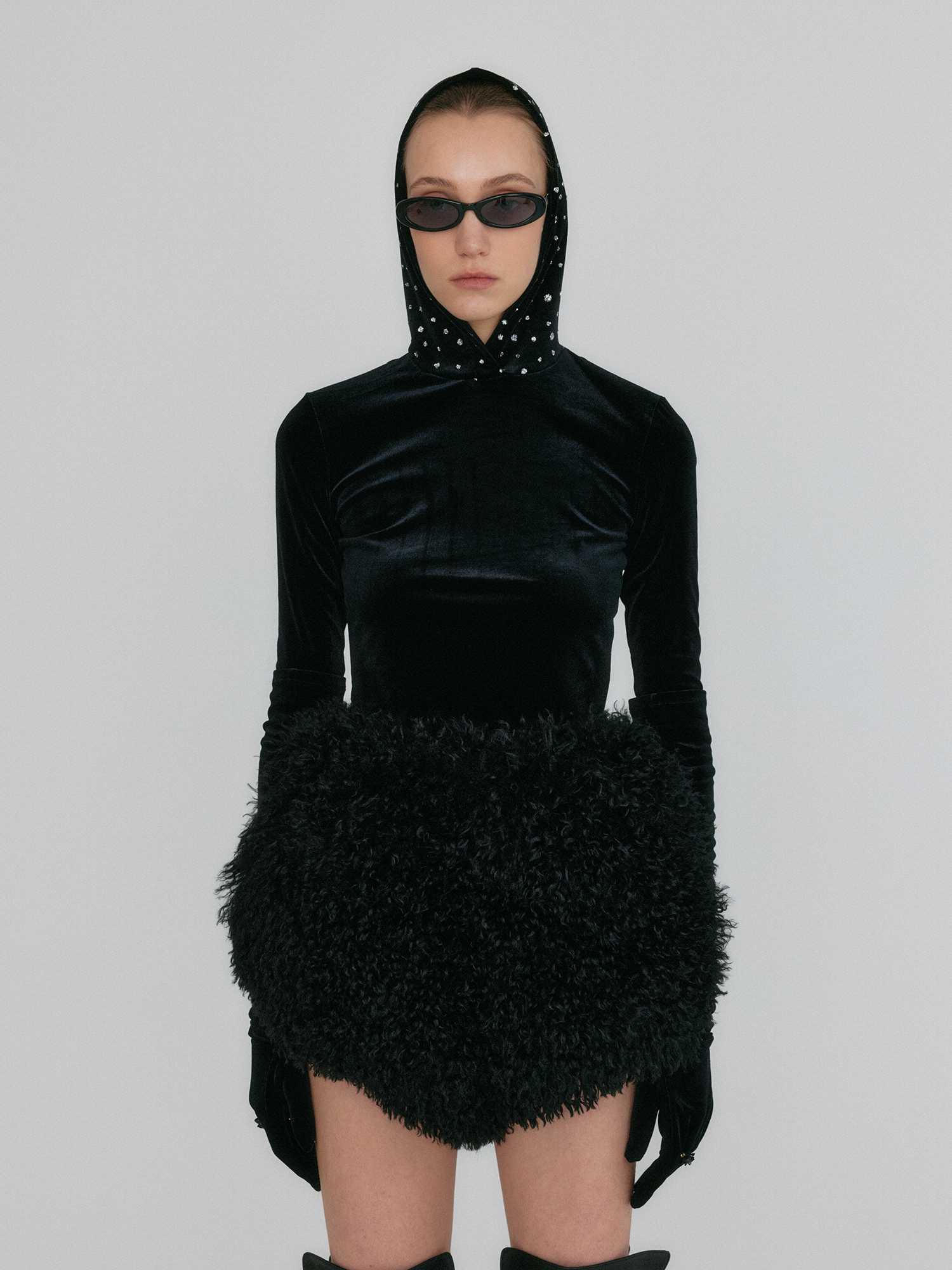 - 후드 부분 비즈 장식 디테일