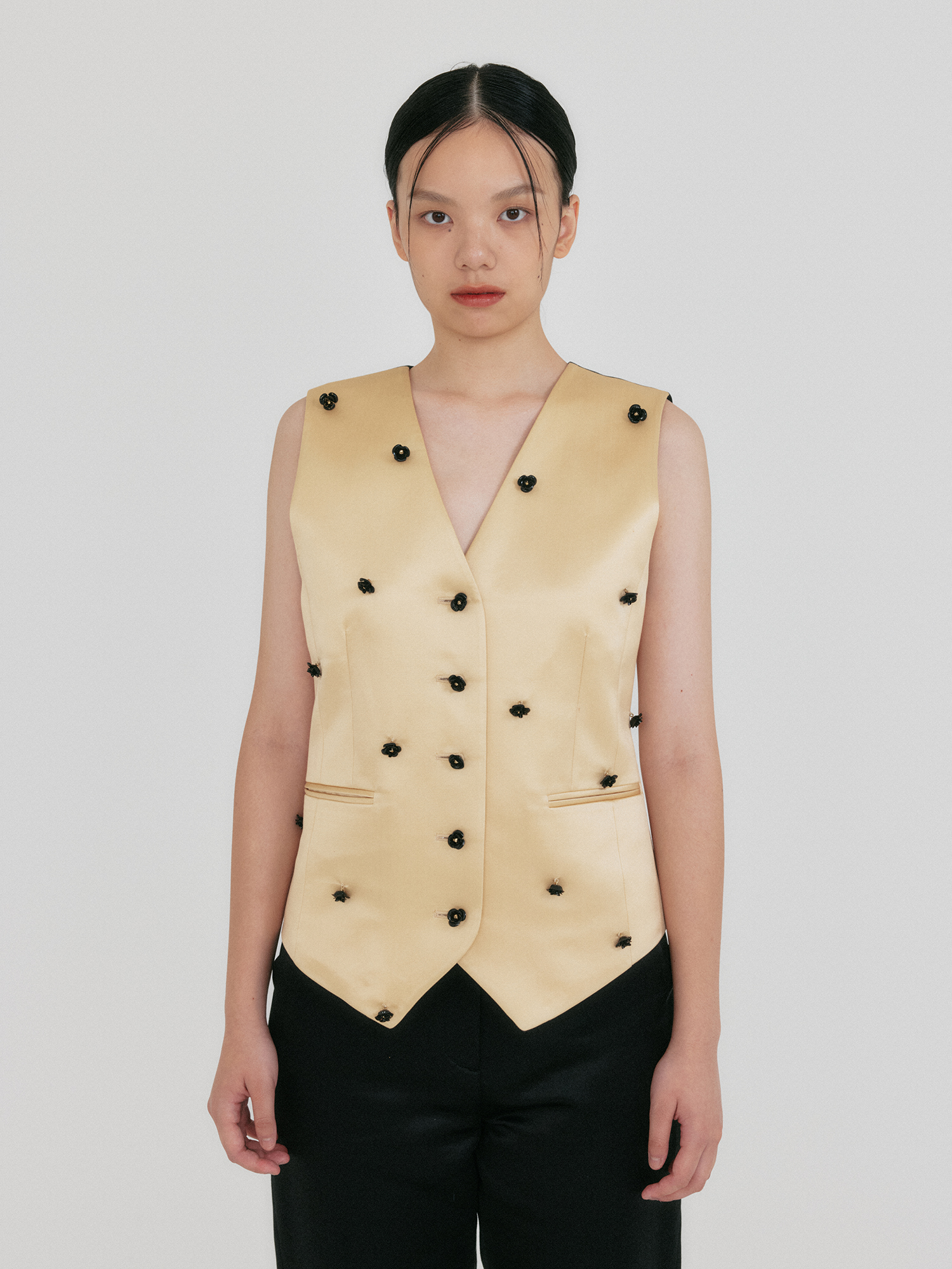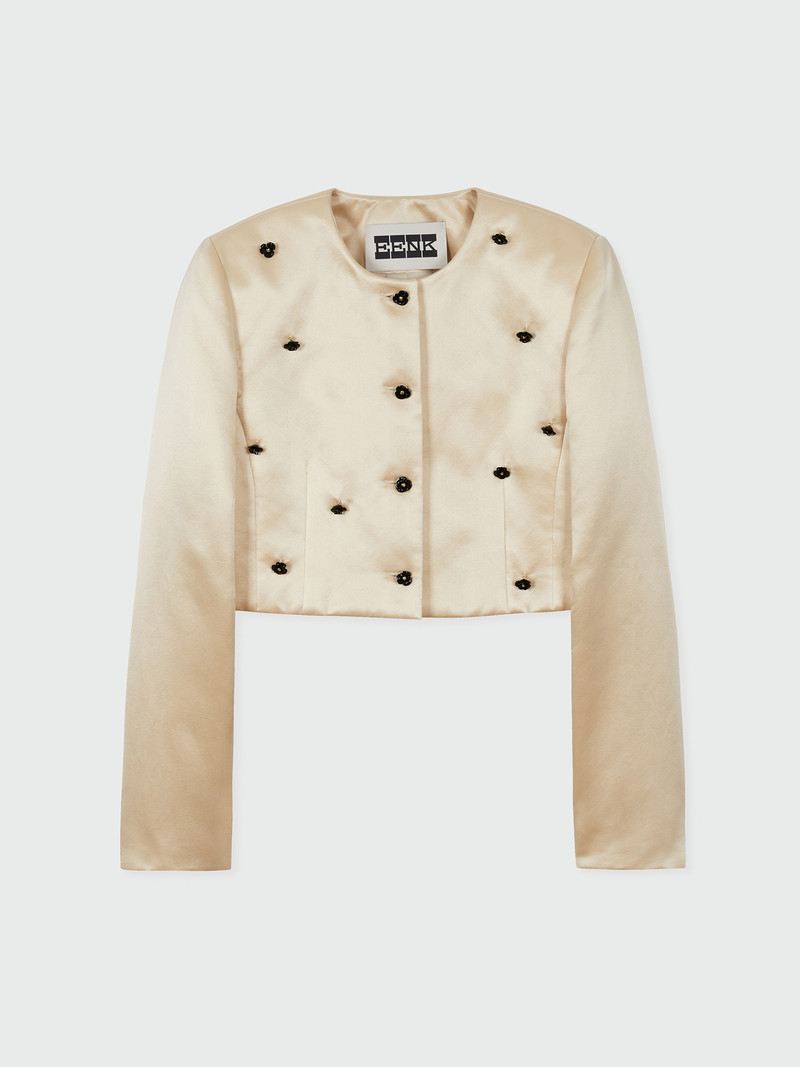 - EENK 고유의 플라워 비즈 버튼 여밈과 장식
