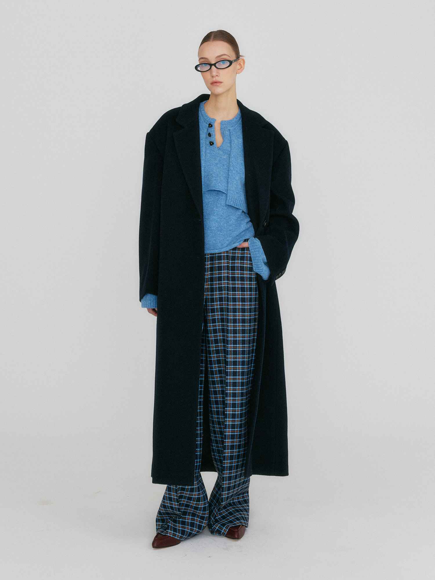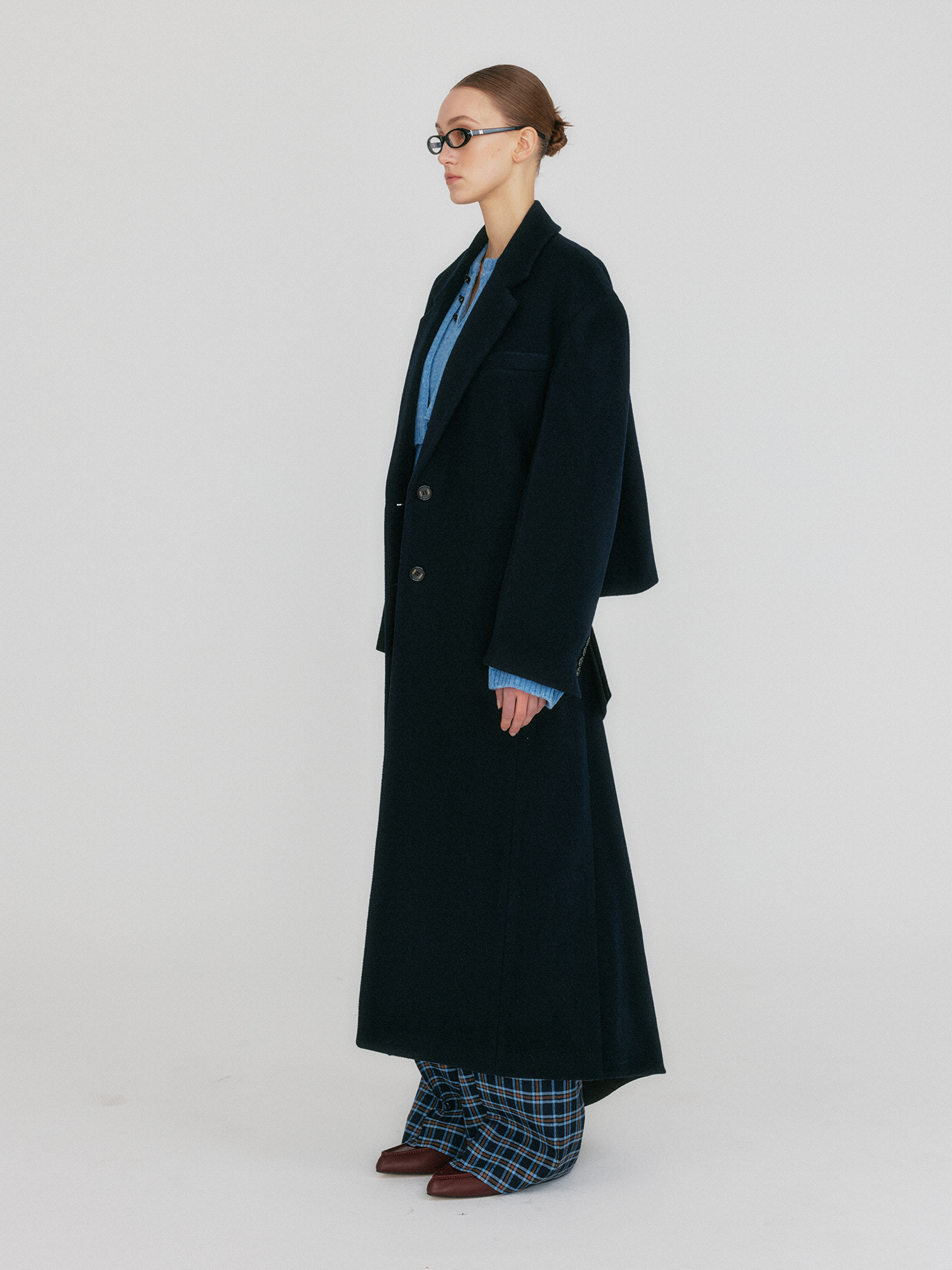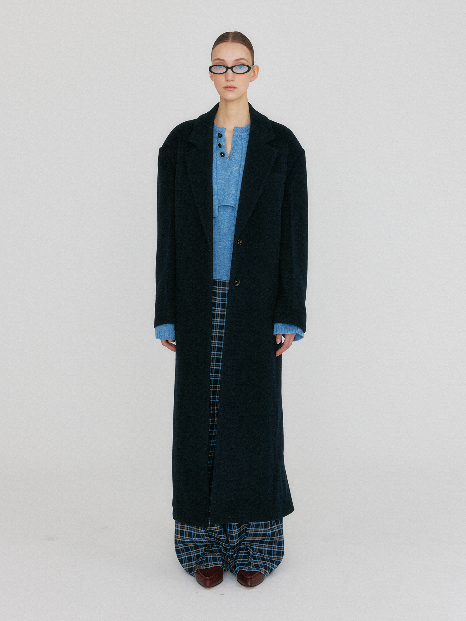 - 오버핏 실루엣의 싱글 버튼 코트