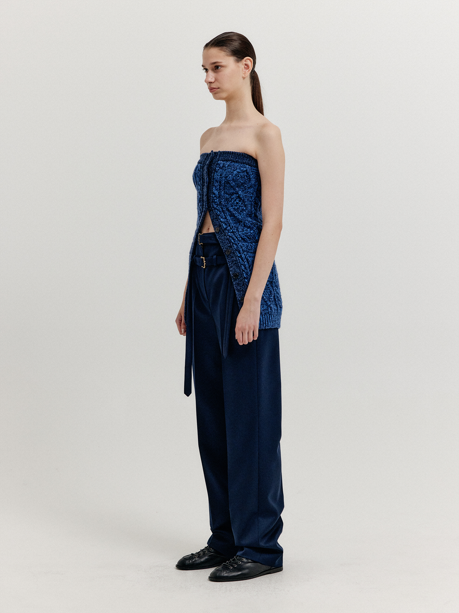 - 케이블 조직의 니트 탑입니다.