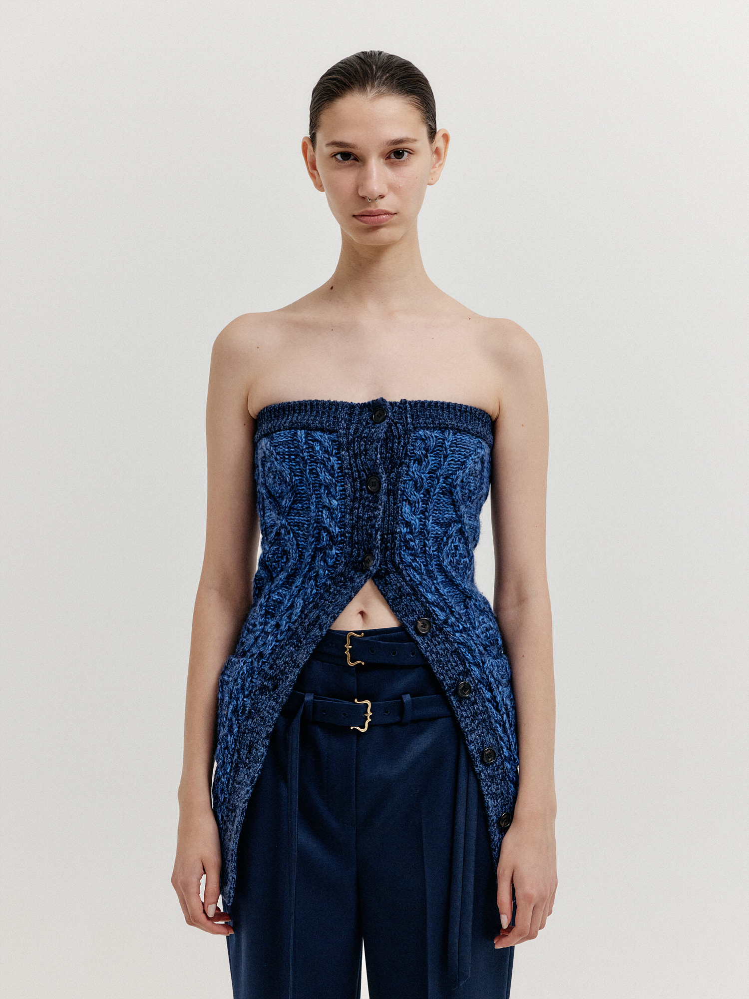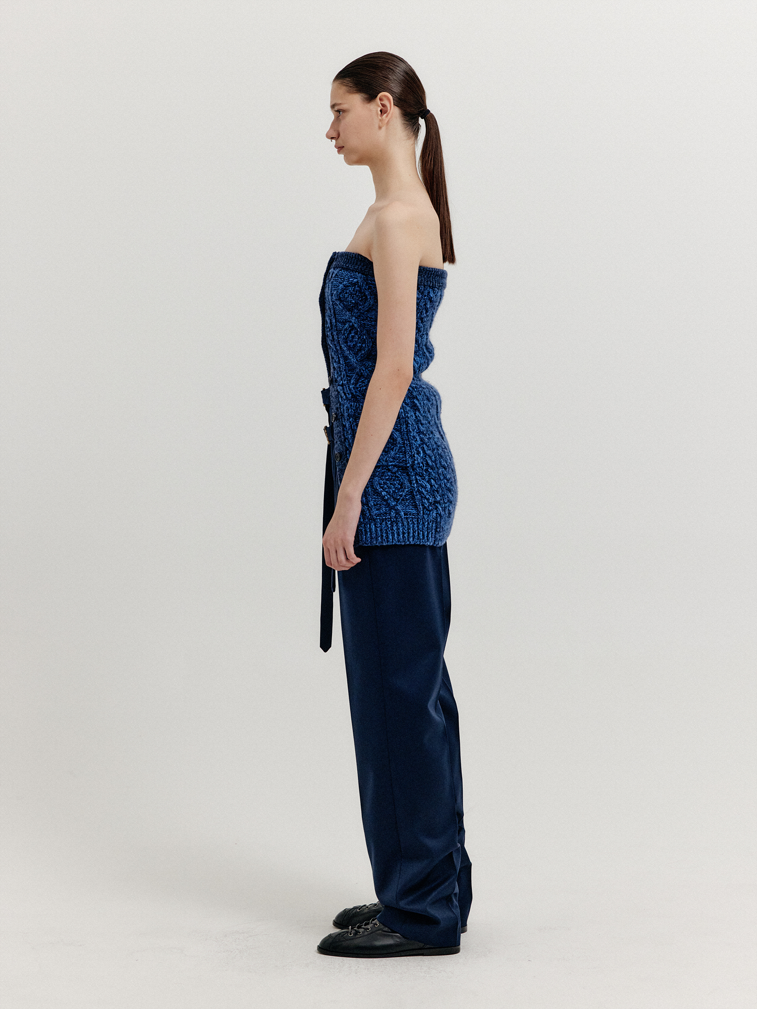 XRA Cable Knit Tube Top - Navy