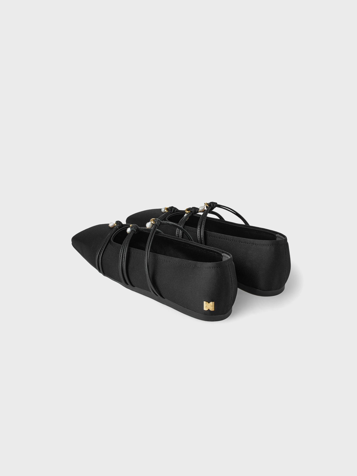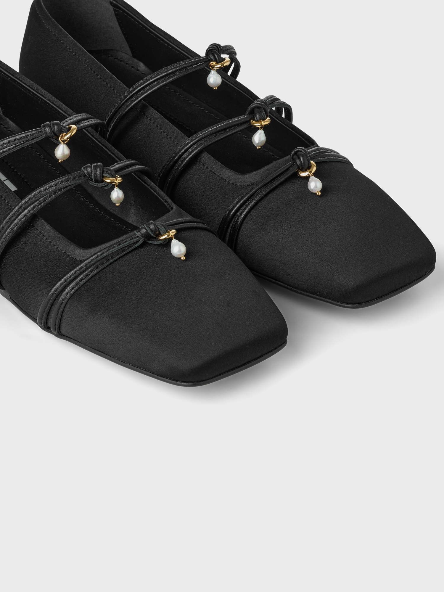 Square Toe Triple Strap Flats - Black