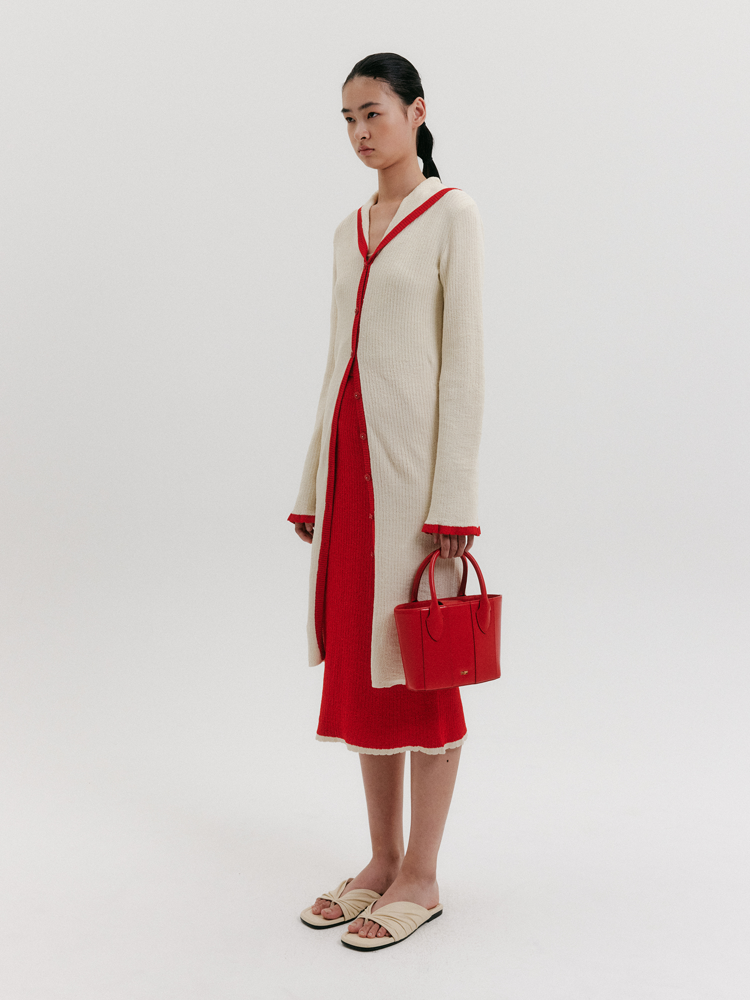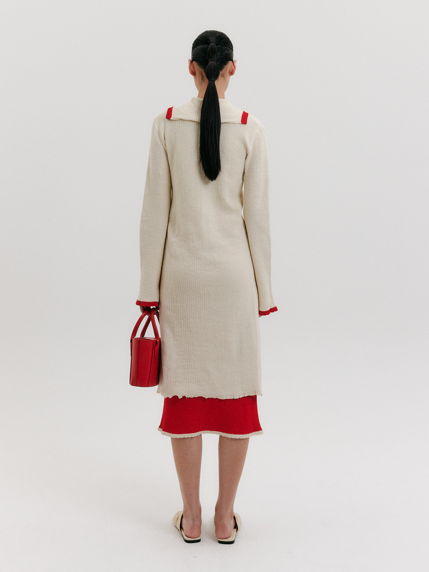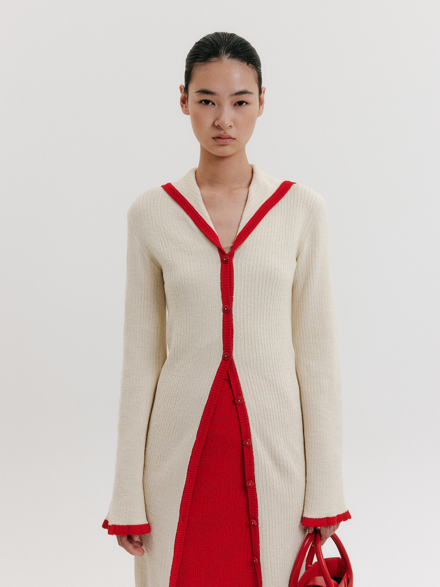 - 앞단, 소매 밑단 배색 디테일