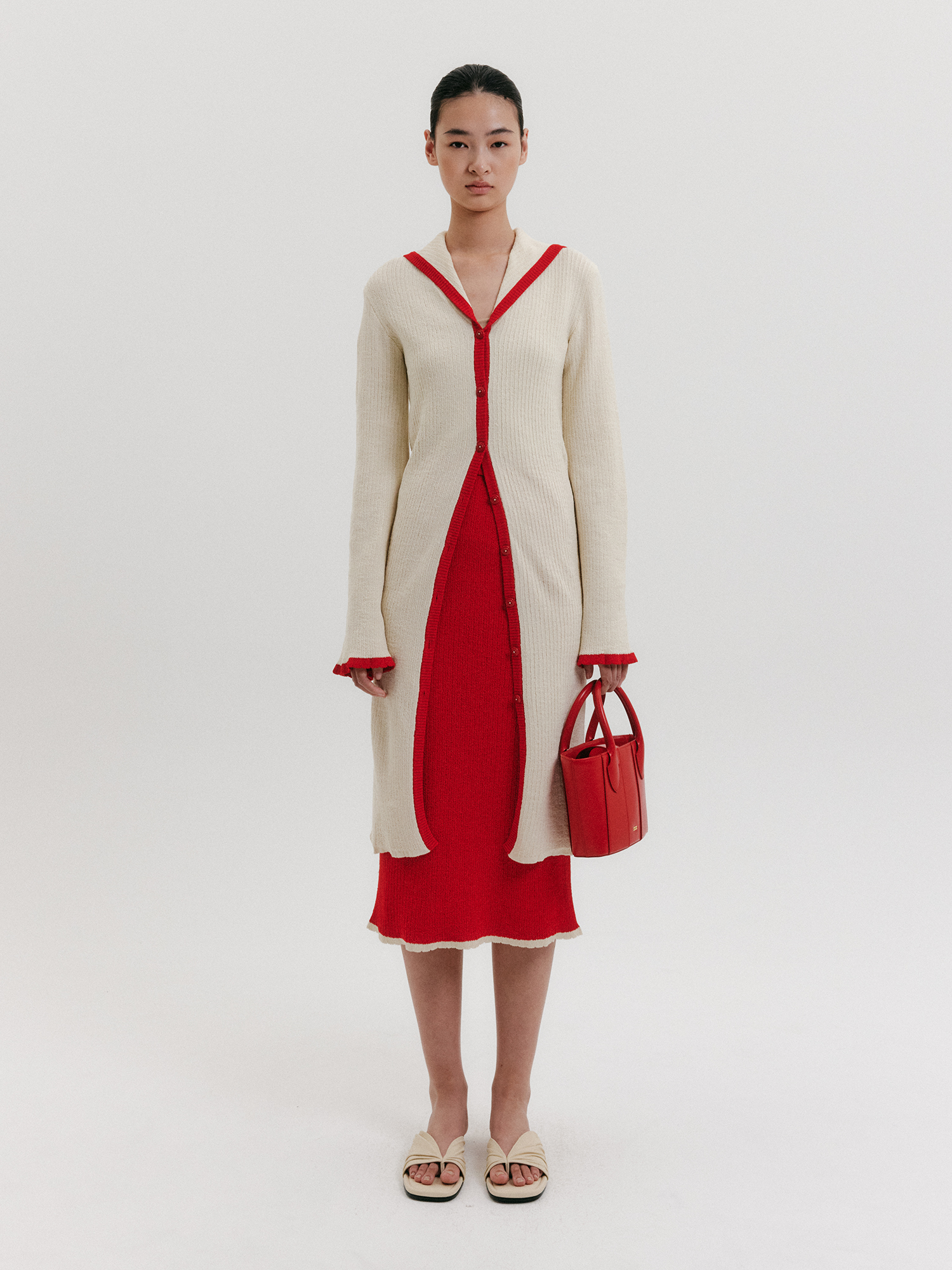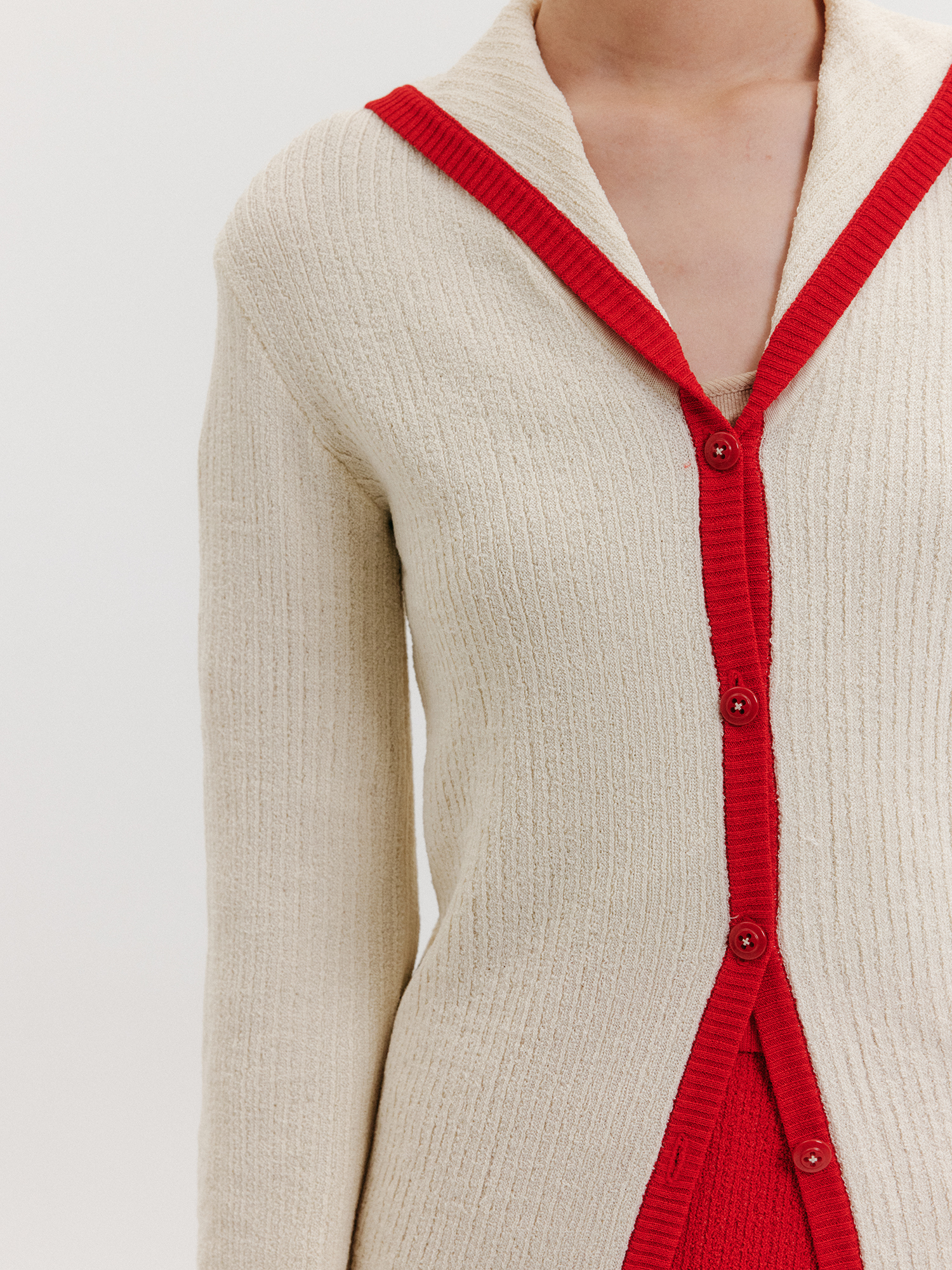 - 리사이클 소재의 세일러 카라 롱 가디건