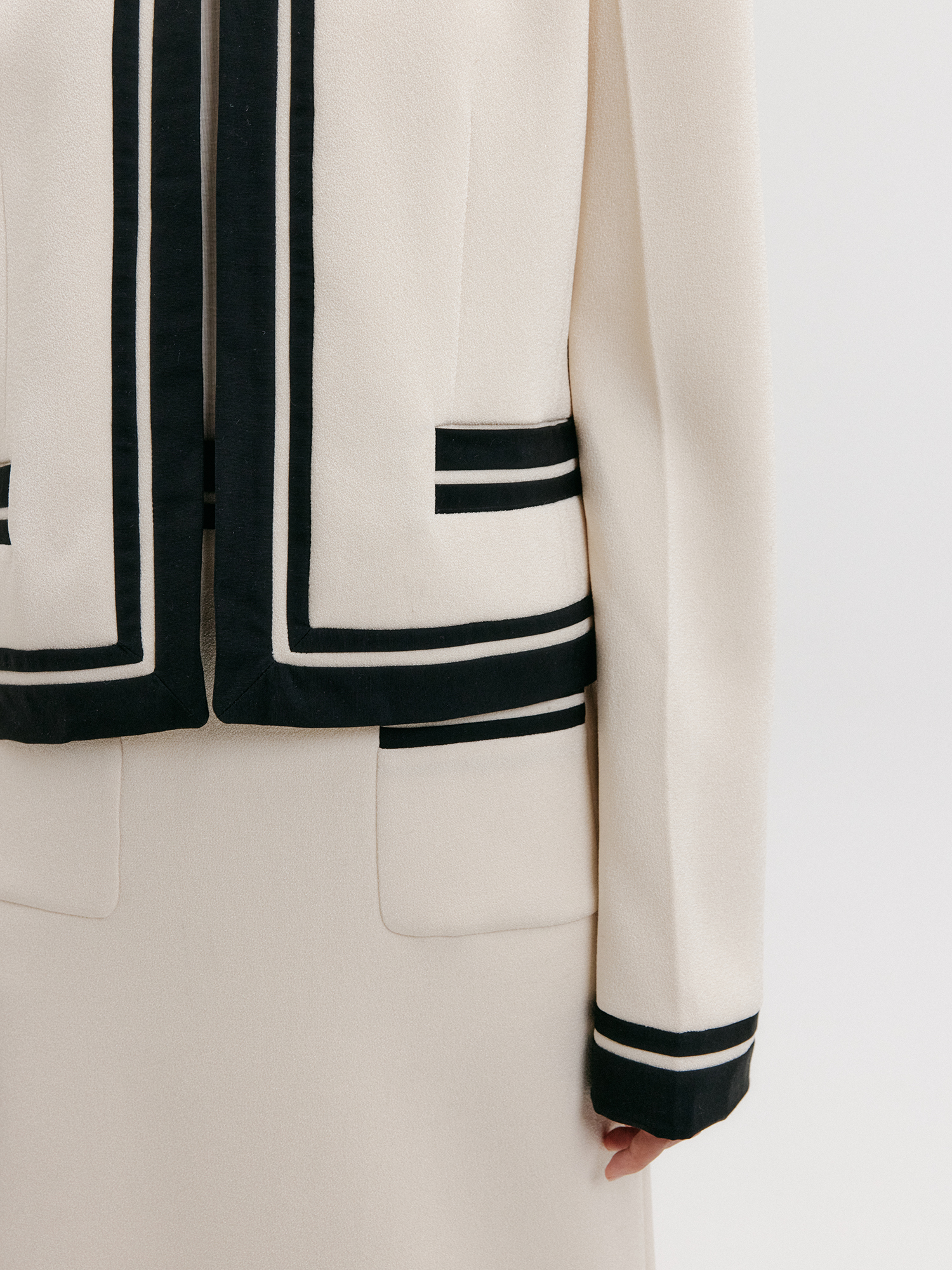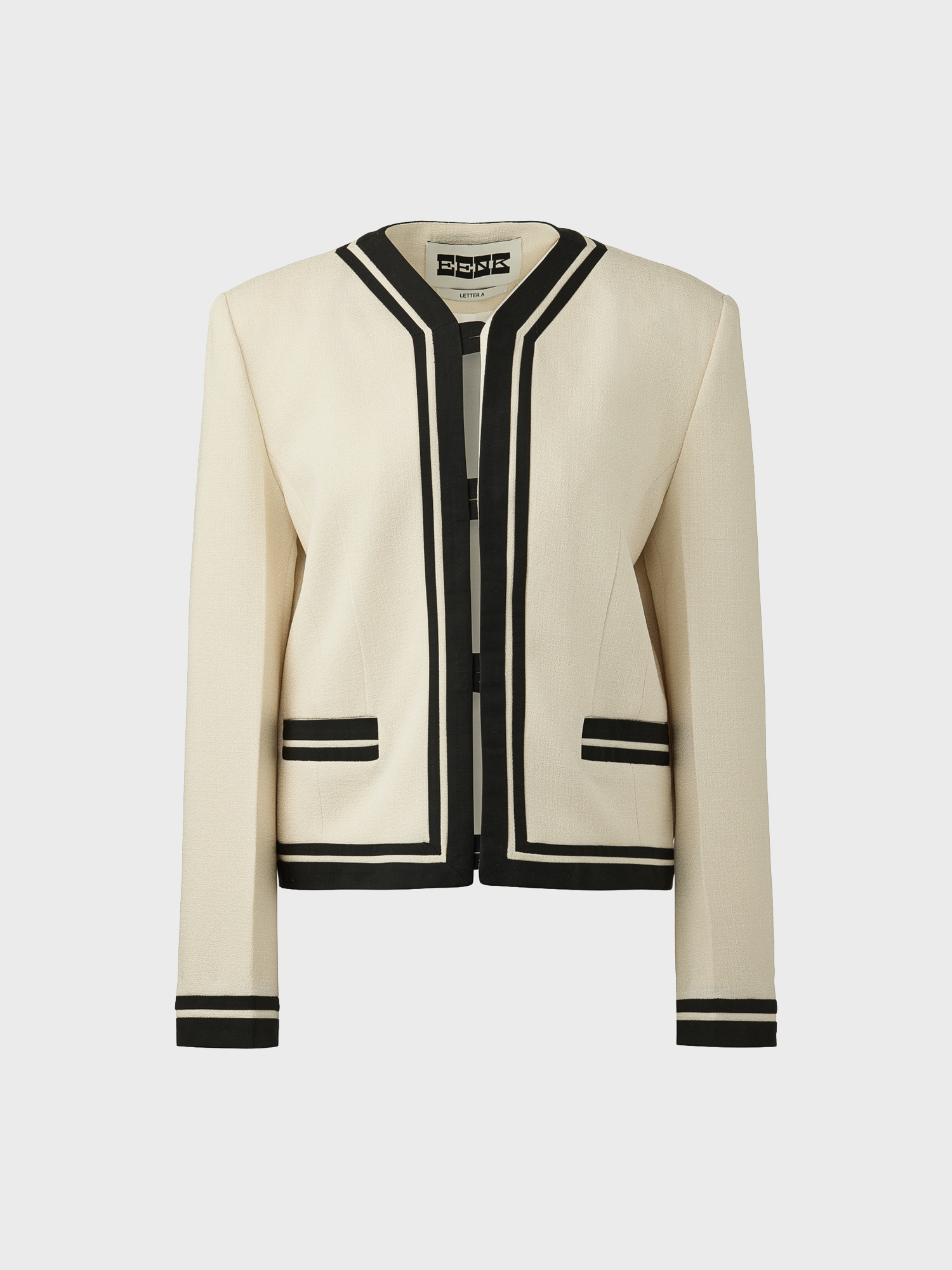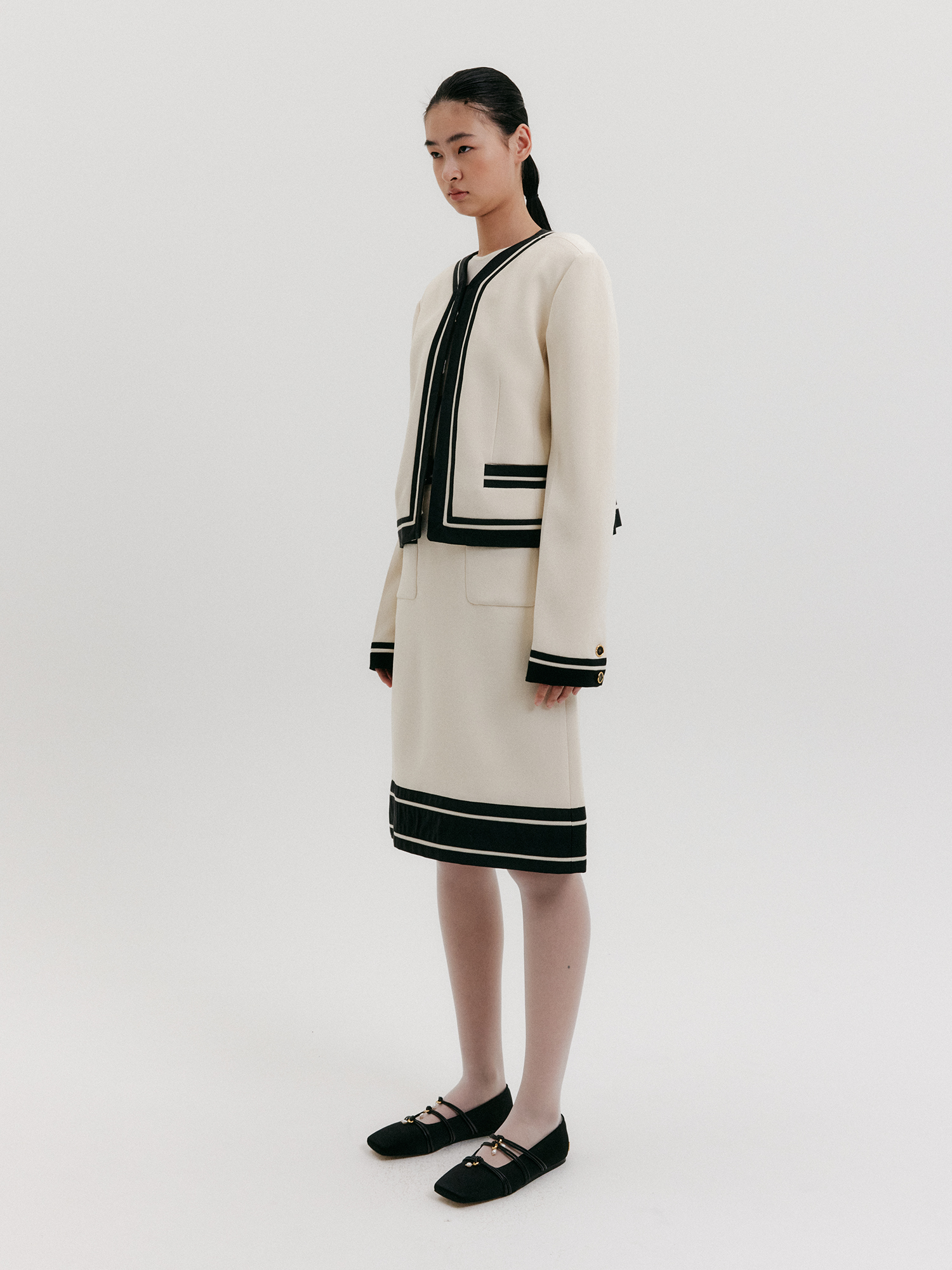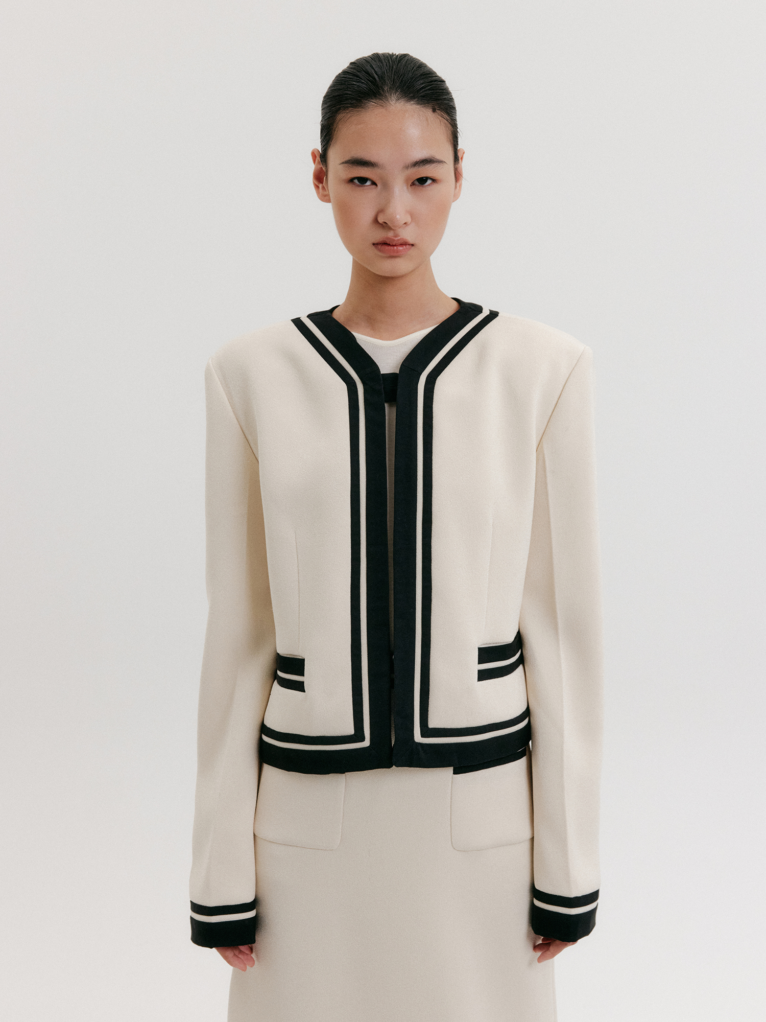 - 크롭 기장의 브이넥 배색 자켓