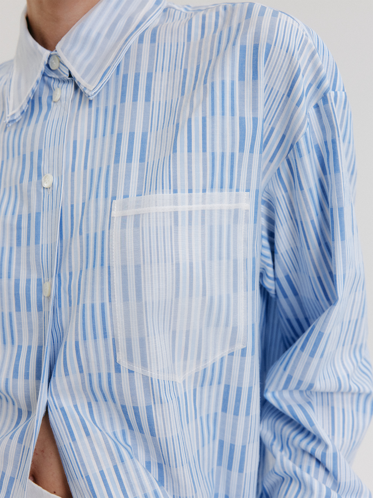 - 오간자 소재의 가슴 포켓 포인트