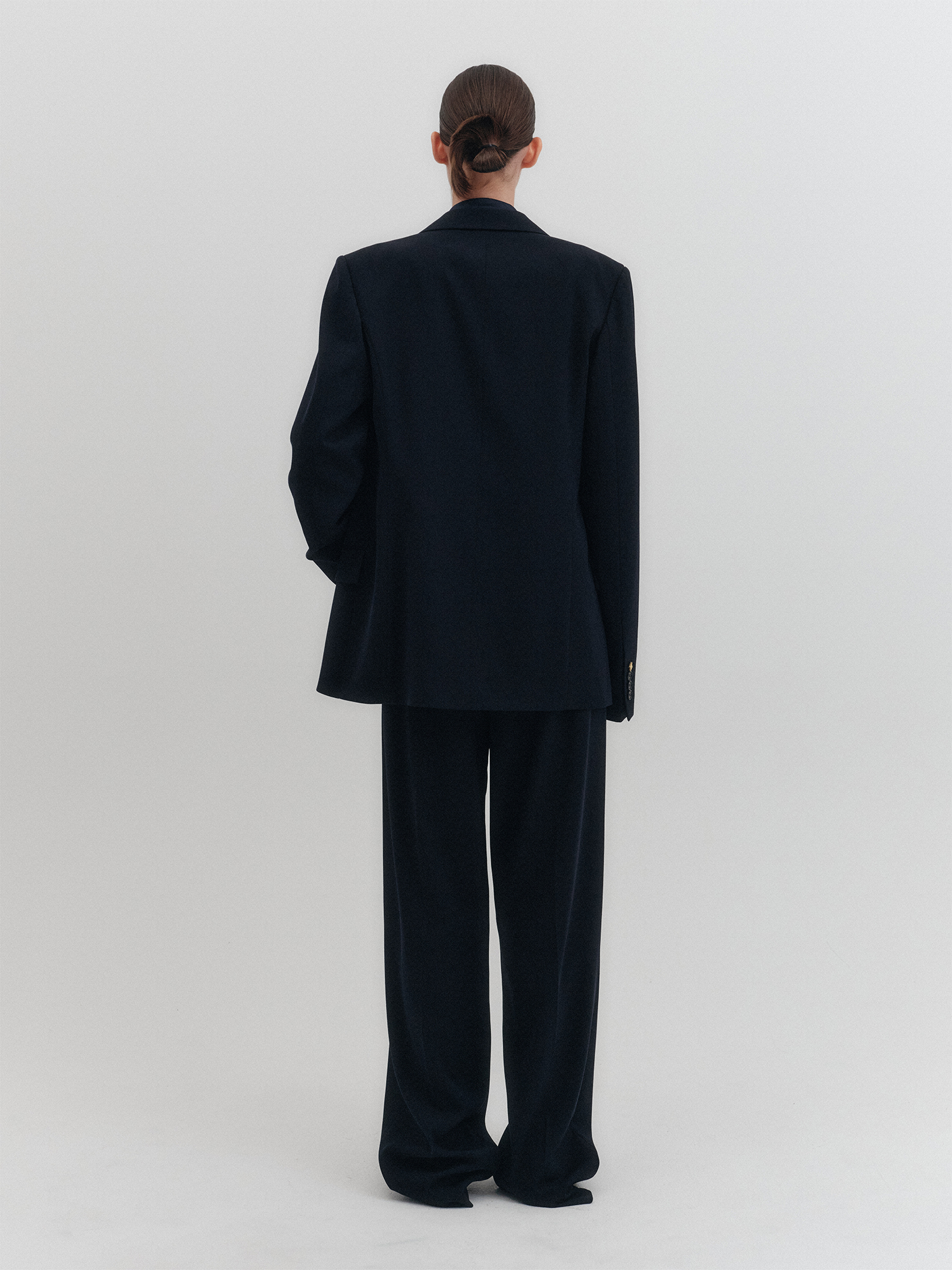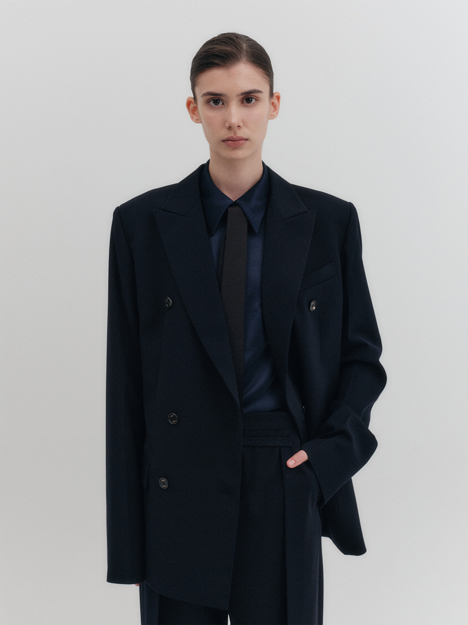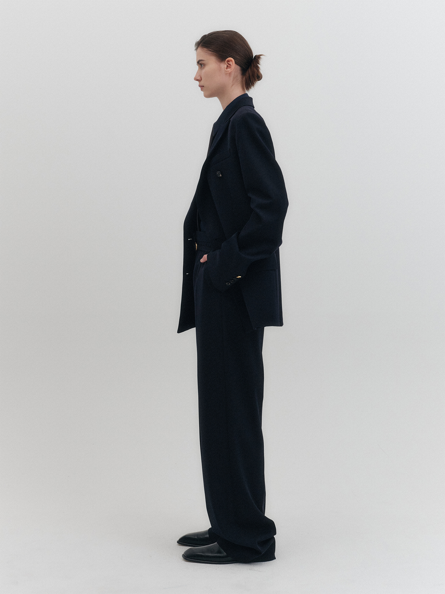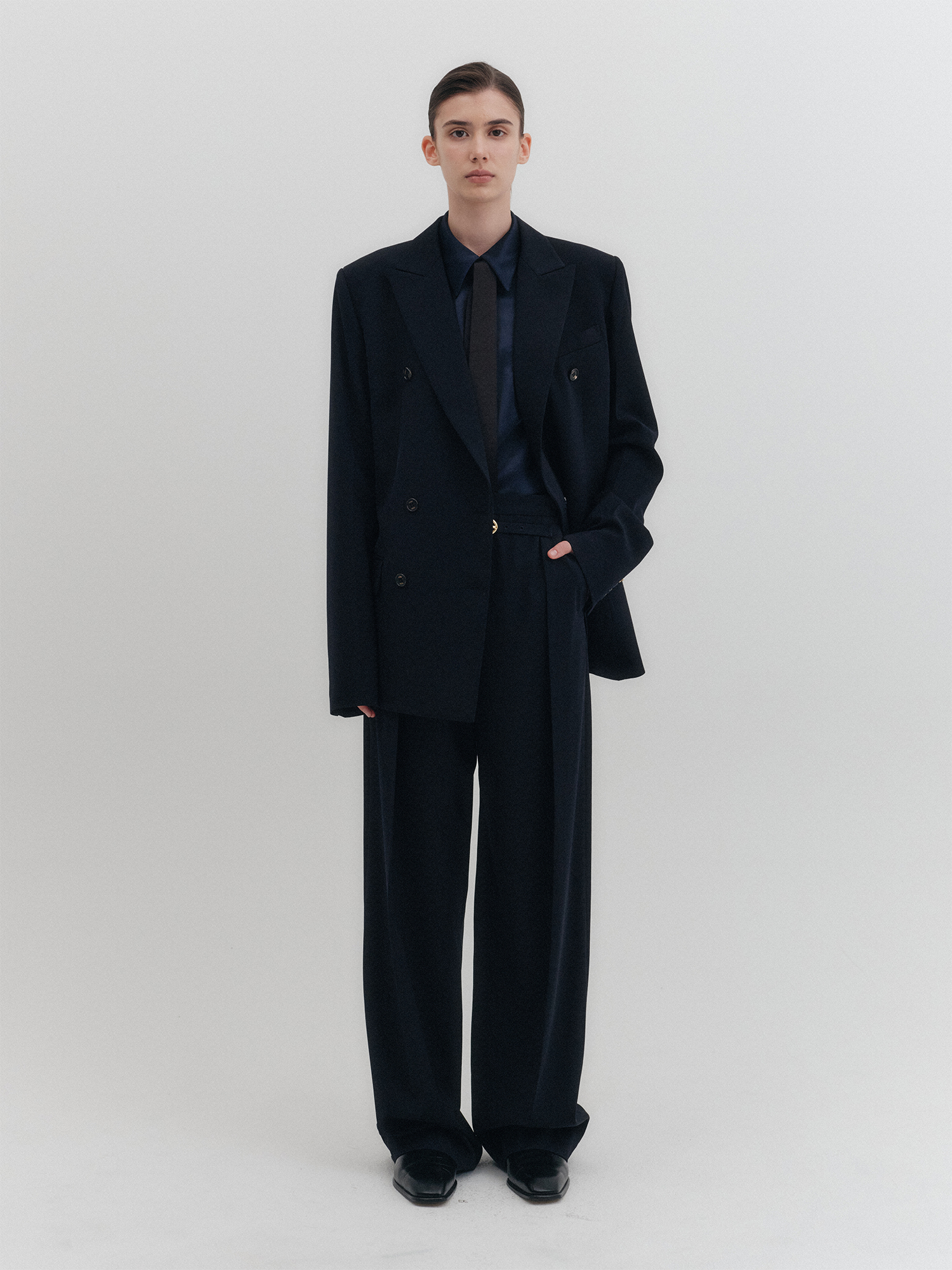 - 허리 중심의 핀턱 디테일로 구조적인 볼륨감
