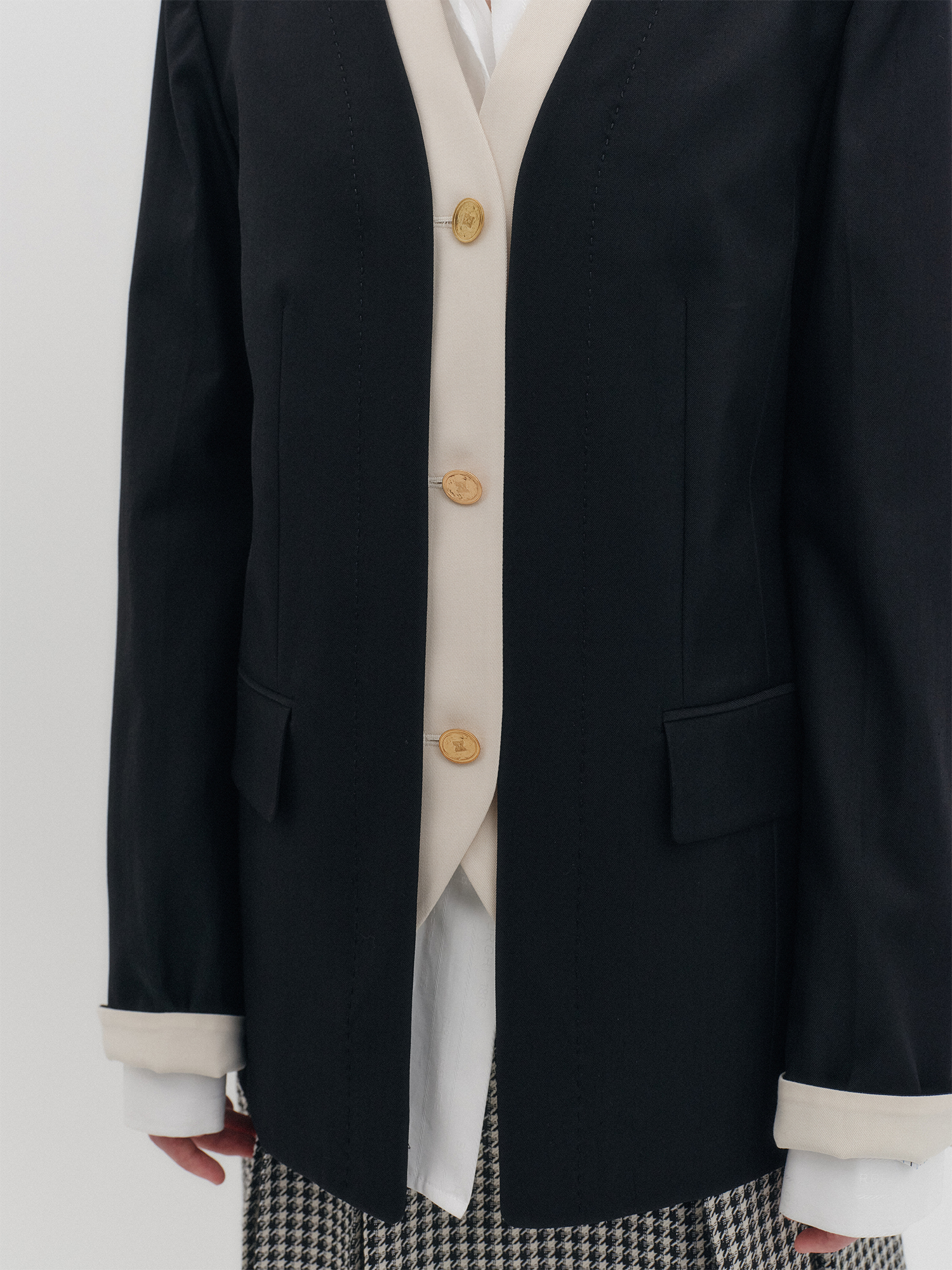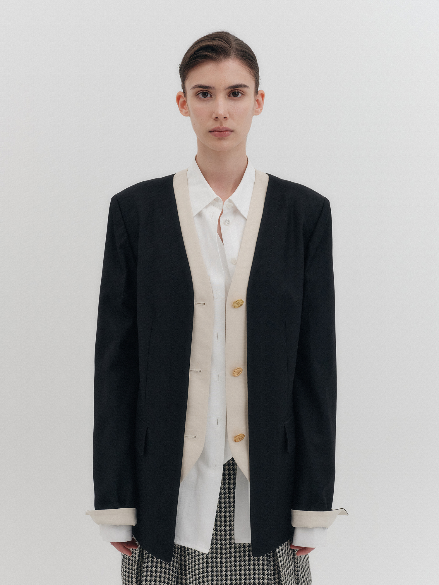 - 숄더 패드로 모던한 실루엣