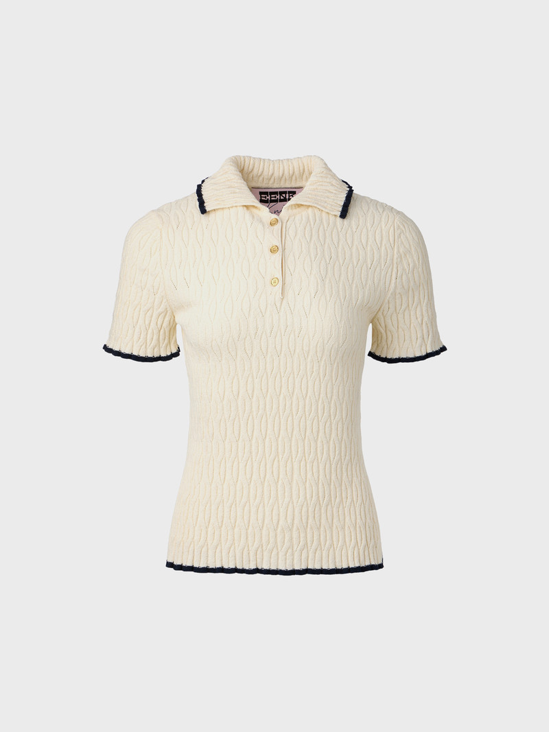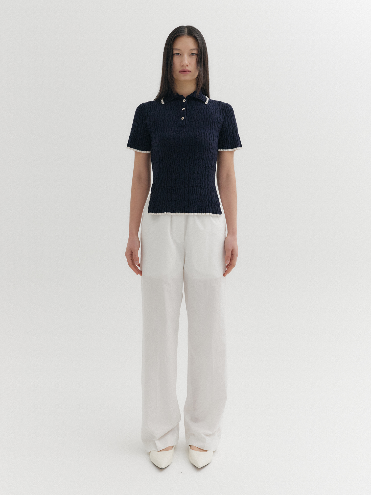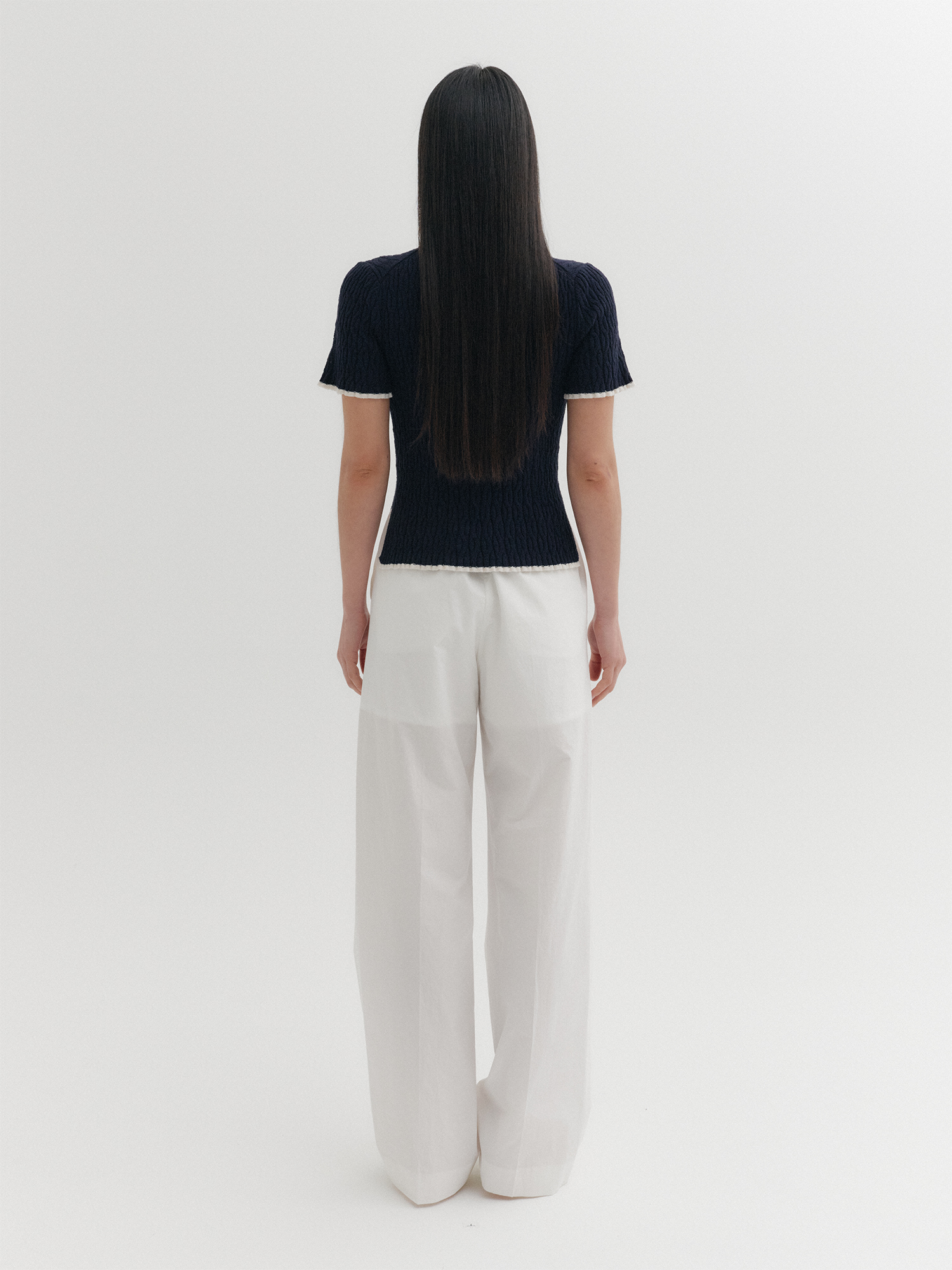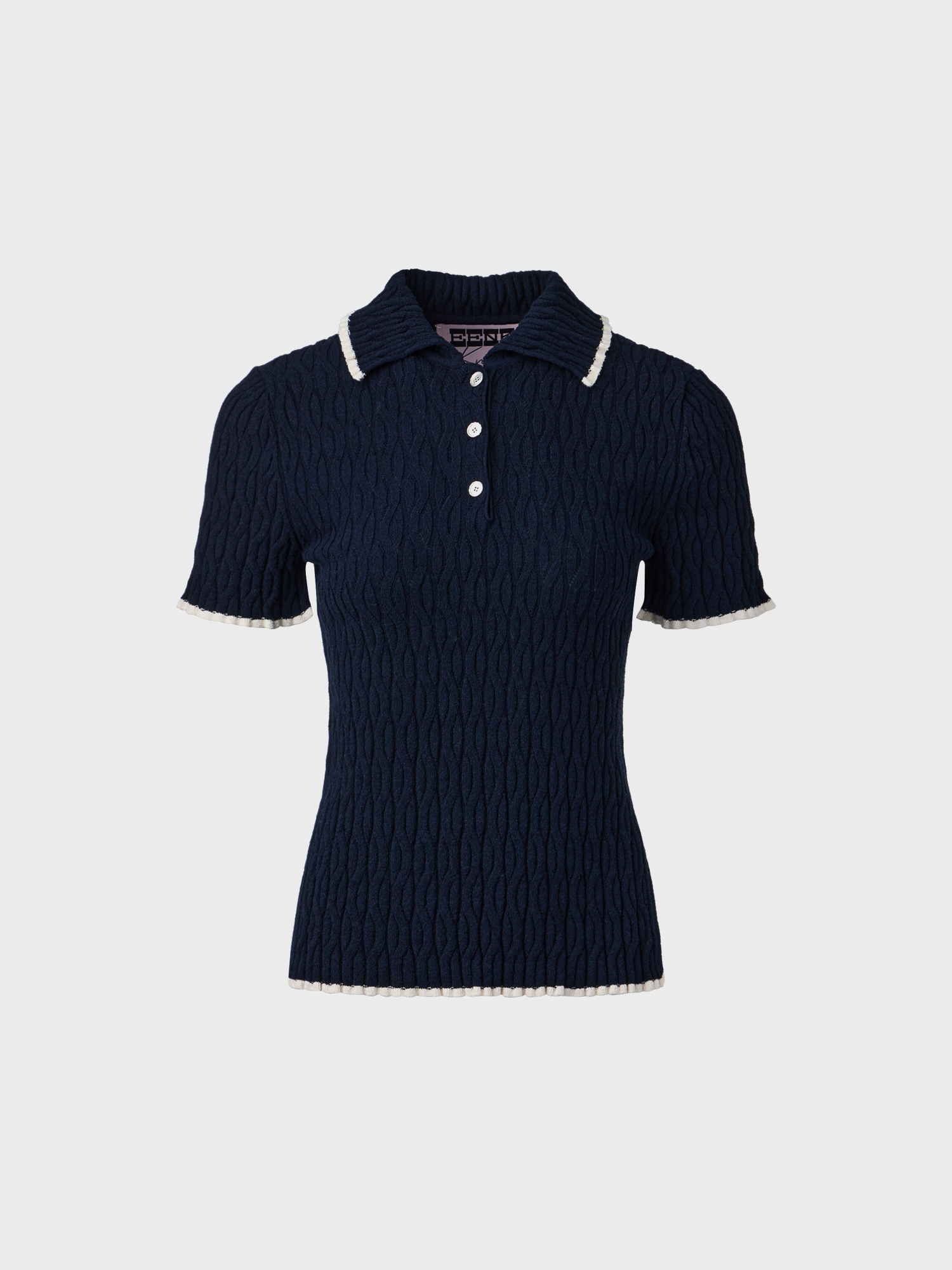 콘트라스트 하프 슬리브 니트 탑 - 네이비NEW