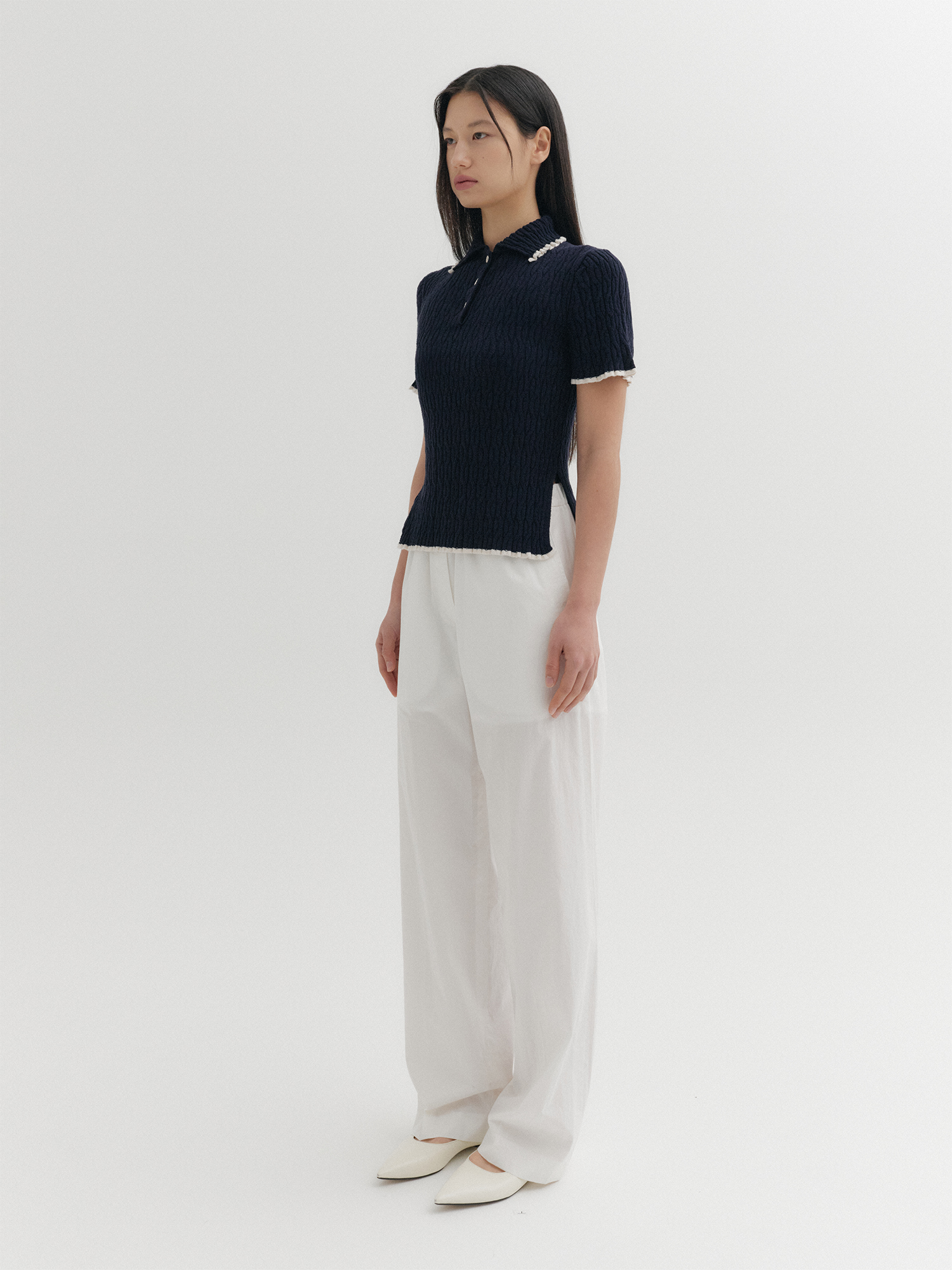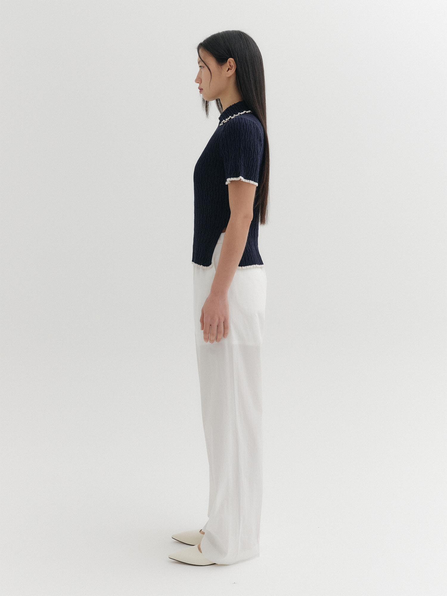 - 크롭한 기장과 슬림핏 실루엣