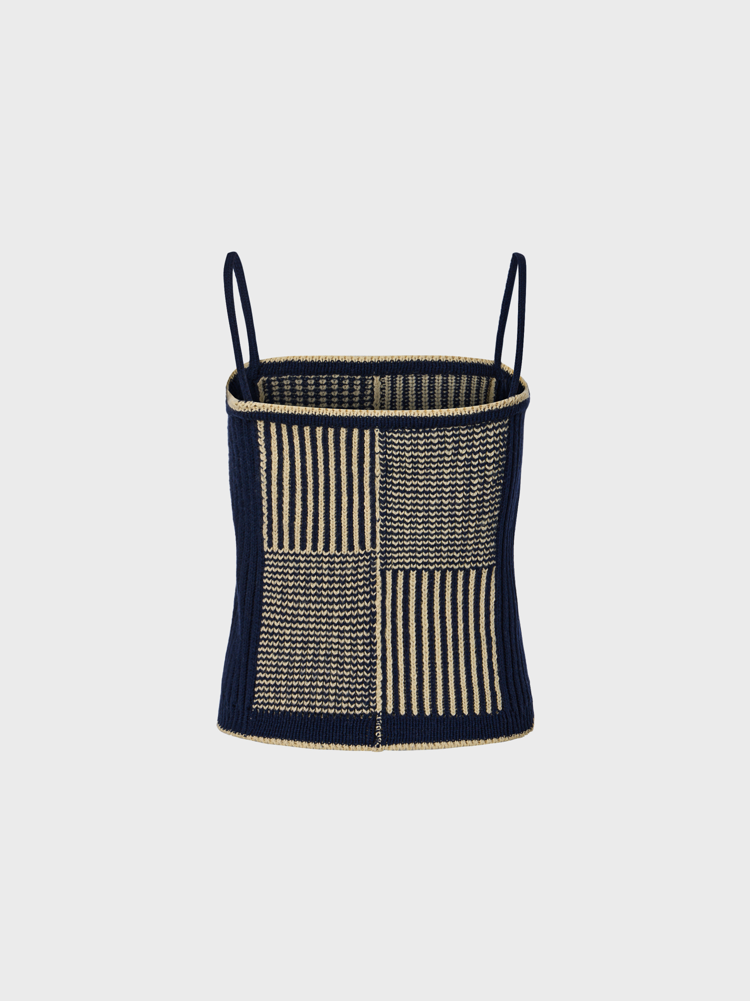 텍스처 슬리브리스 니트 탑 - 네이비/베이지