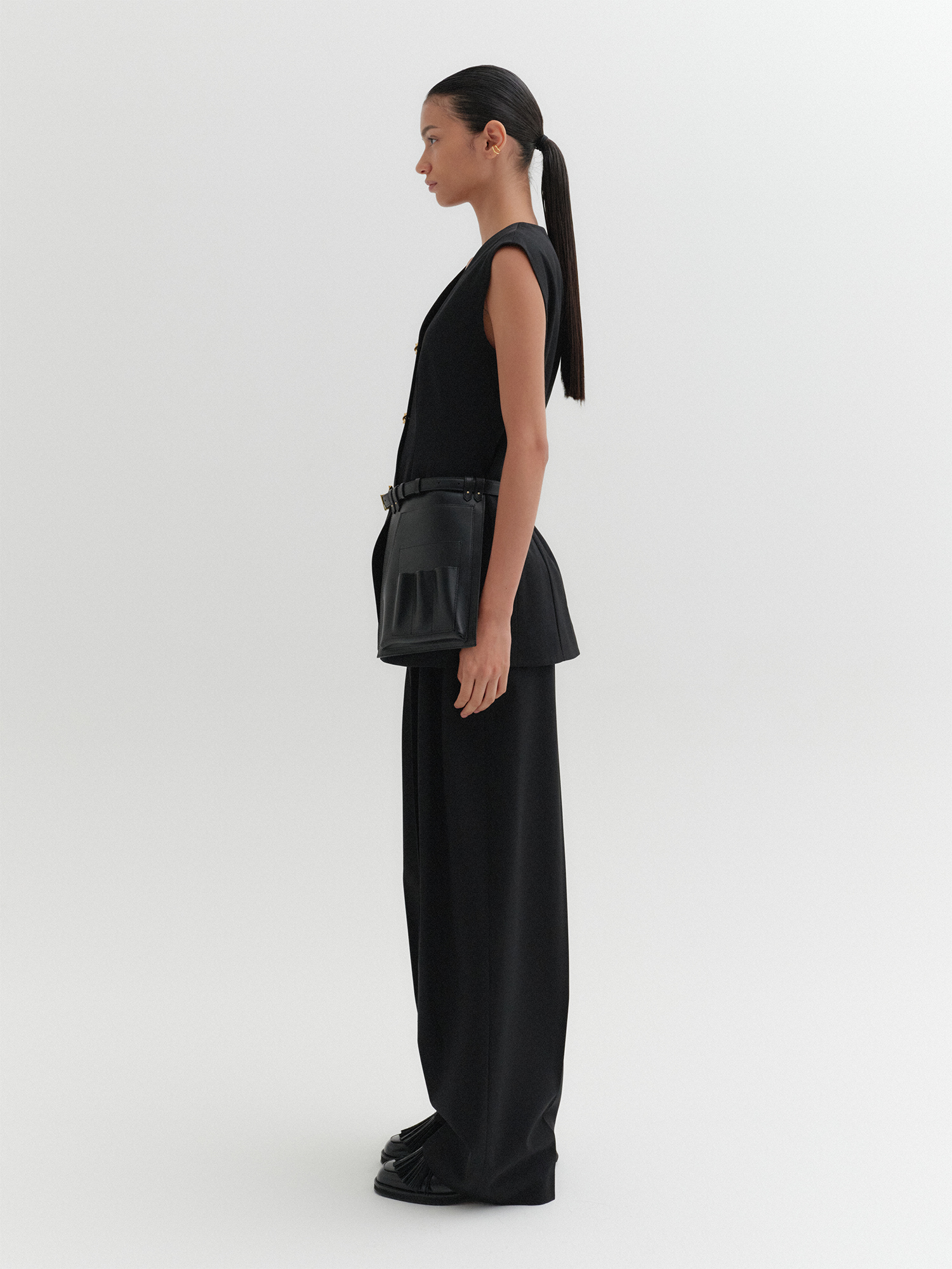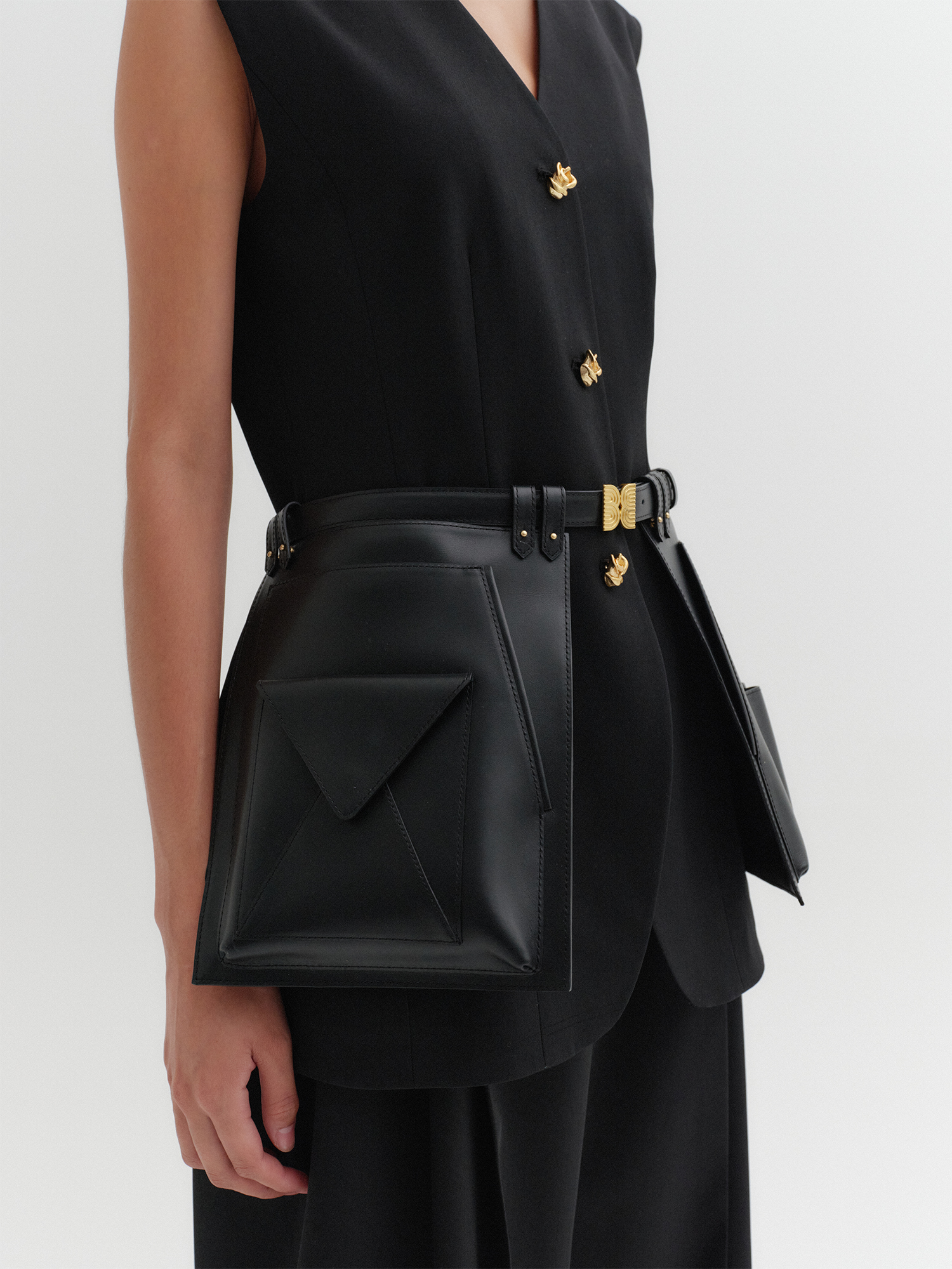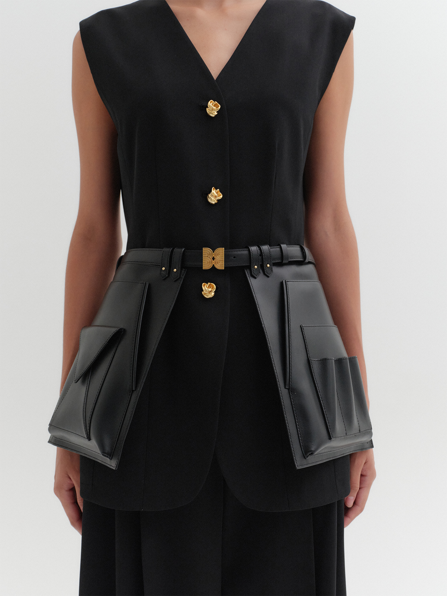 오픈 프론트 스커트 벨트 - 블랙