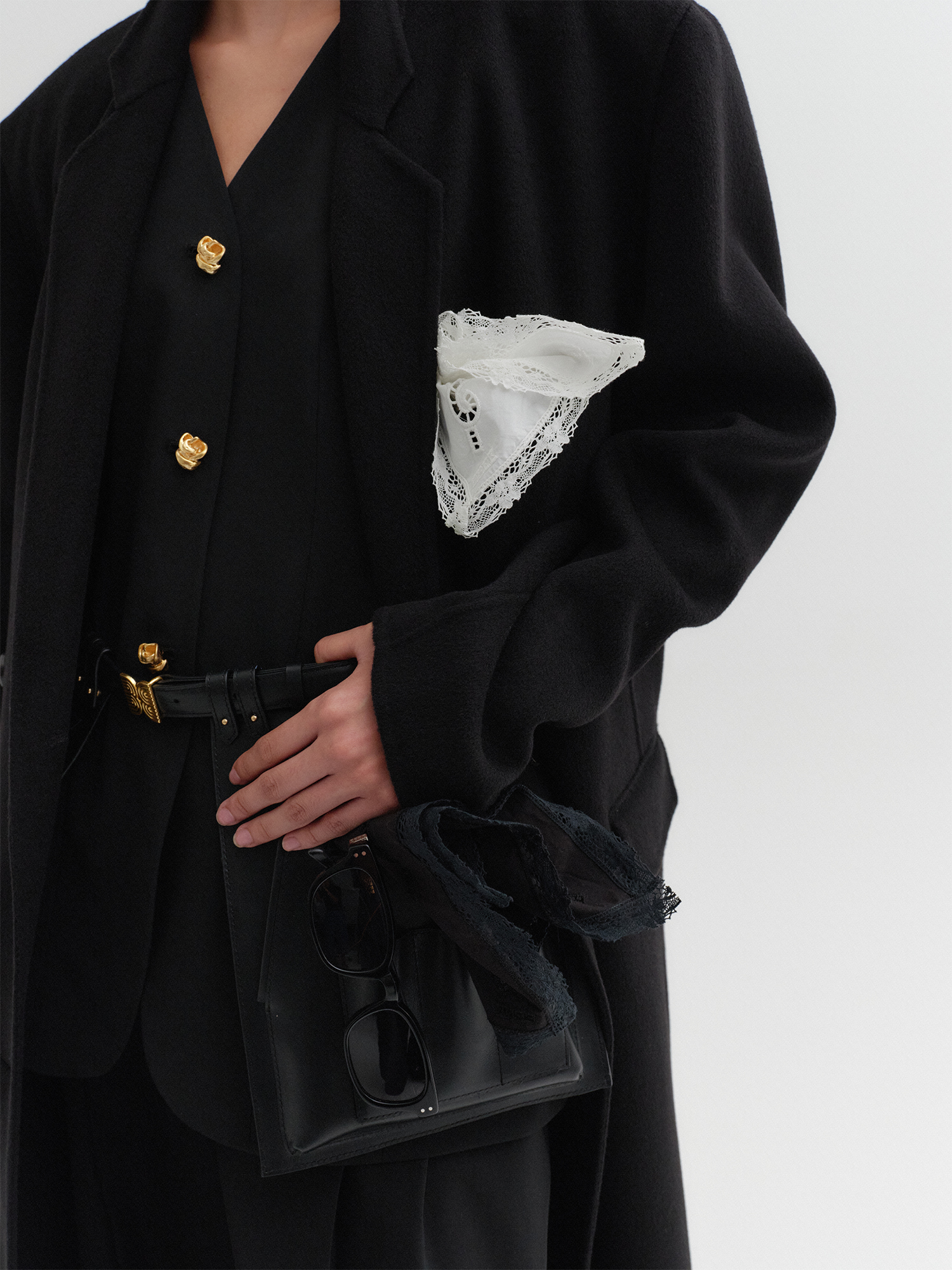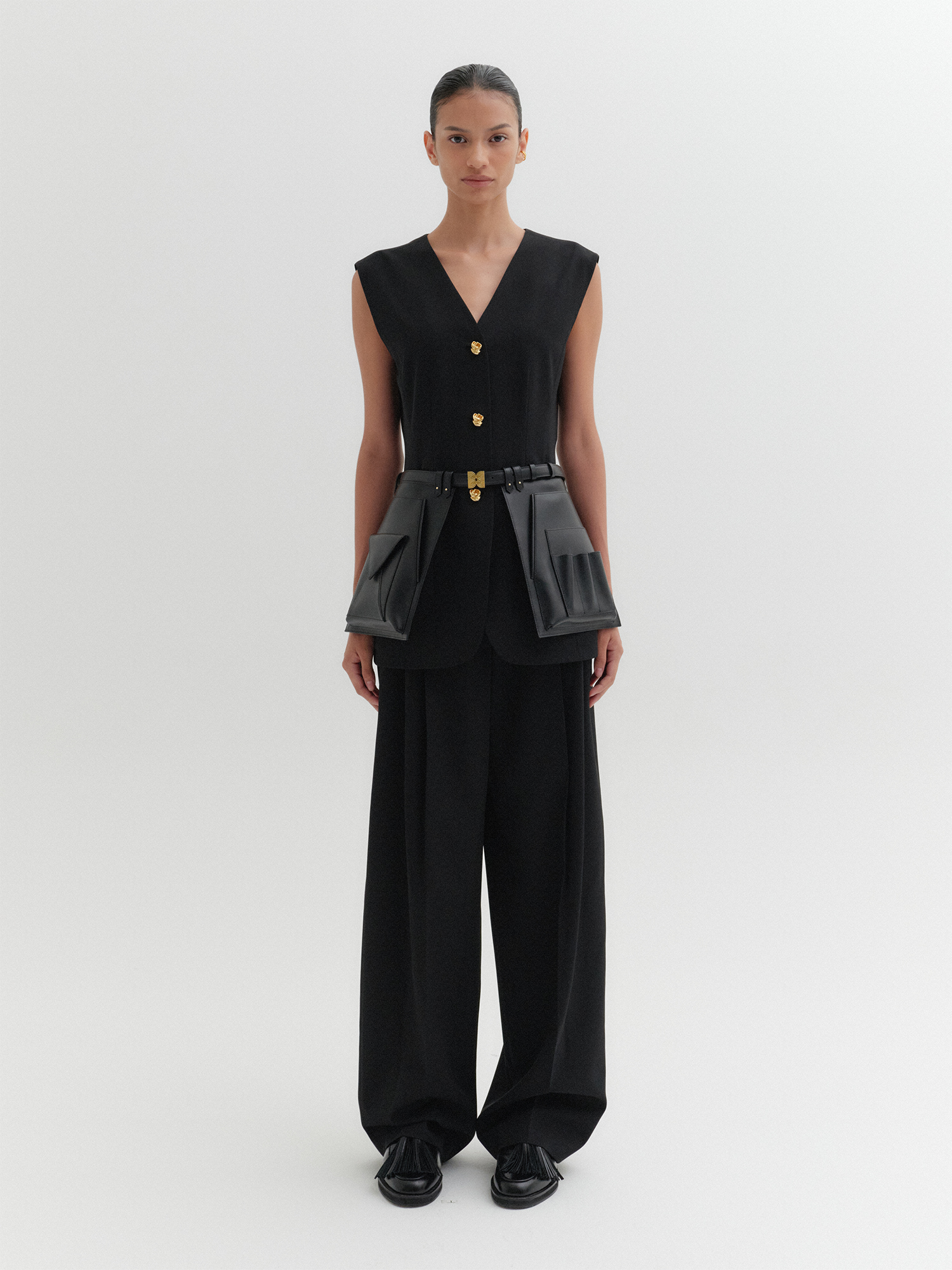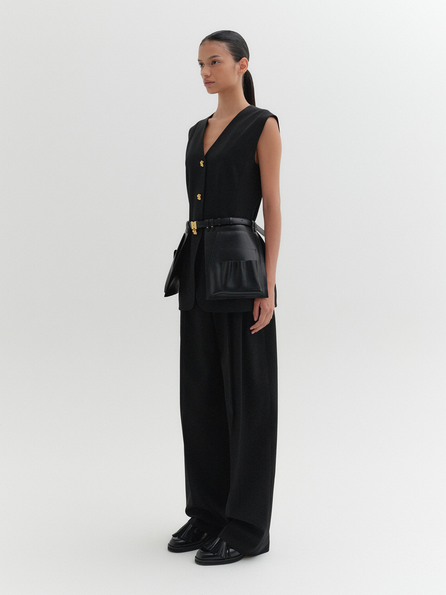 오픈 프론트 스커트 벨트 - 블랙