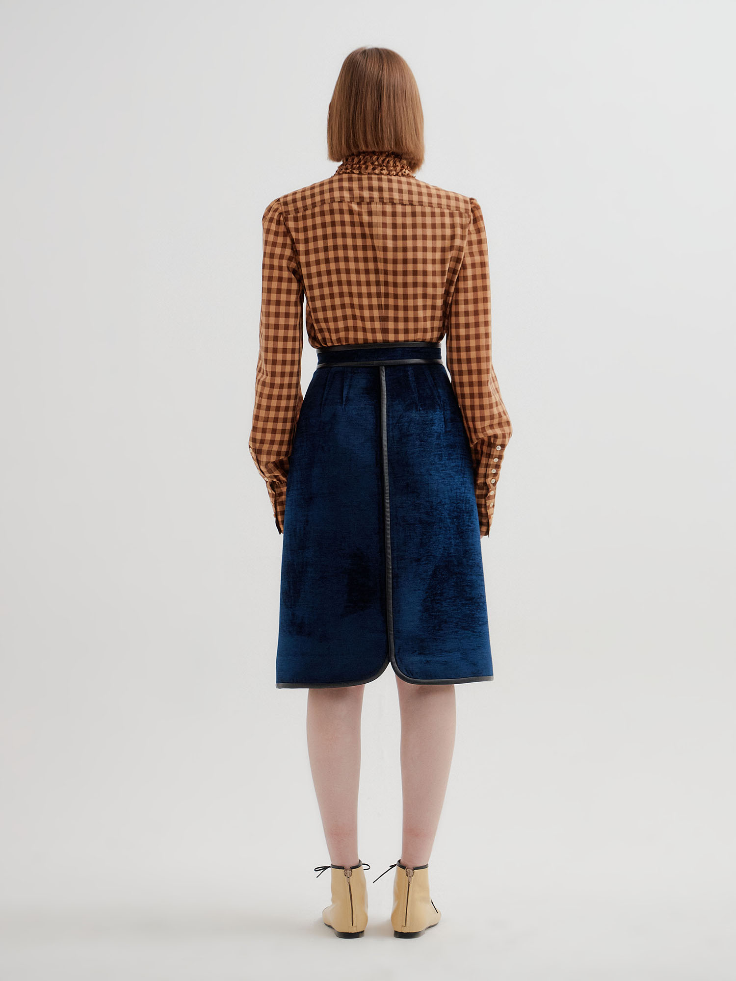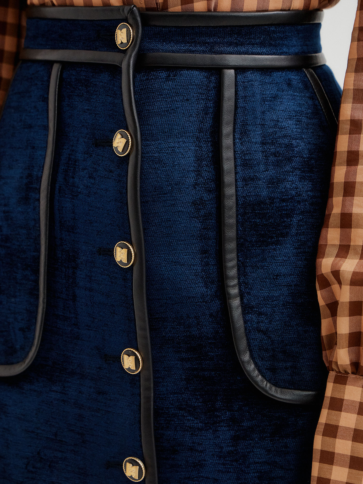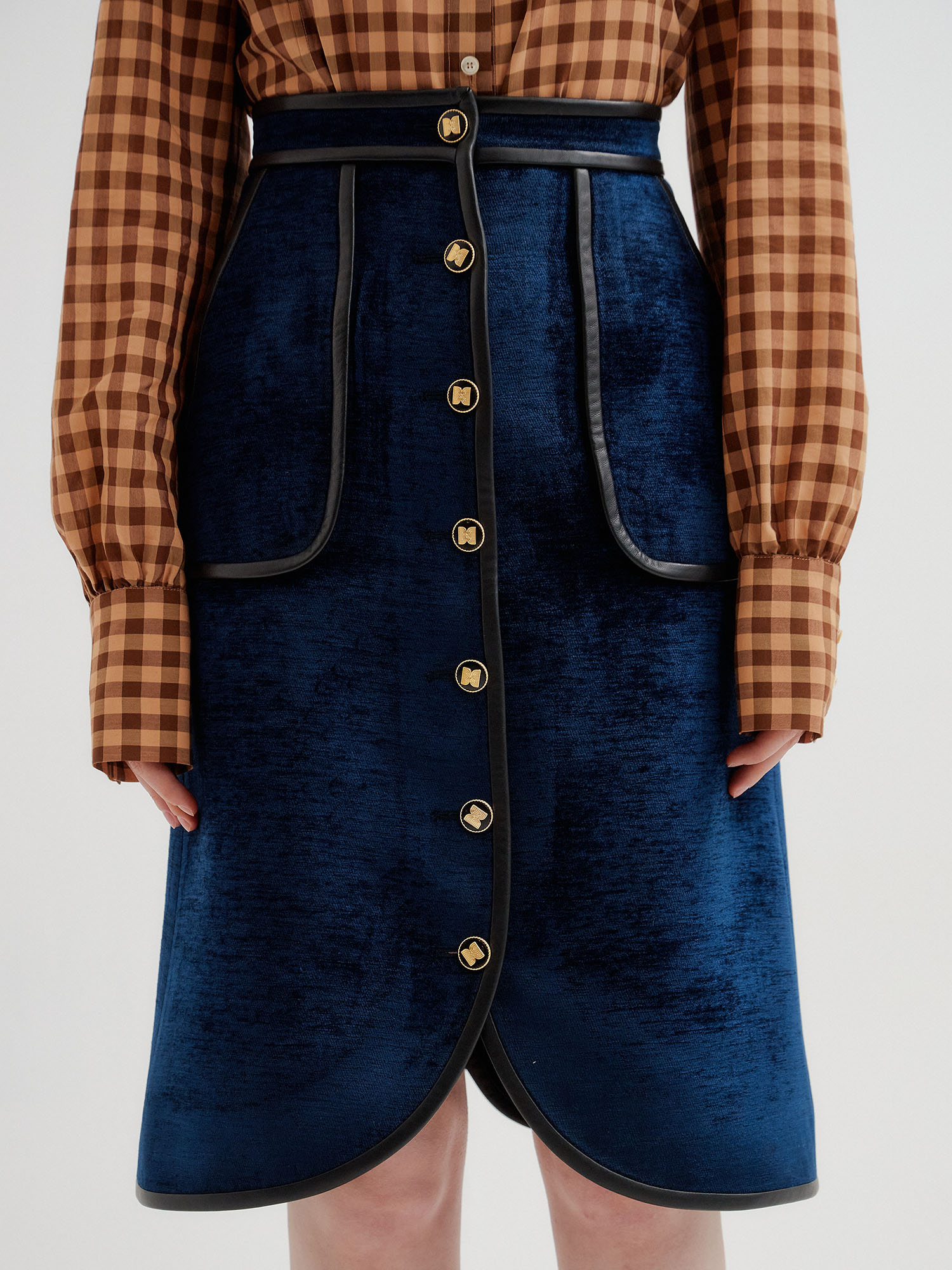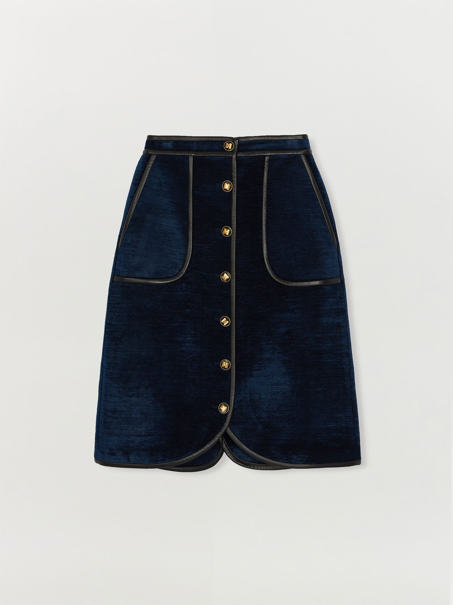 TWELVE Leather Trim Paneled Skirt - Navy