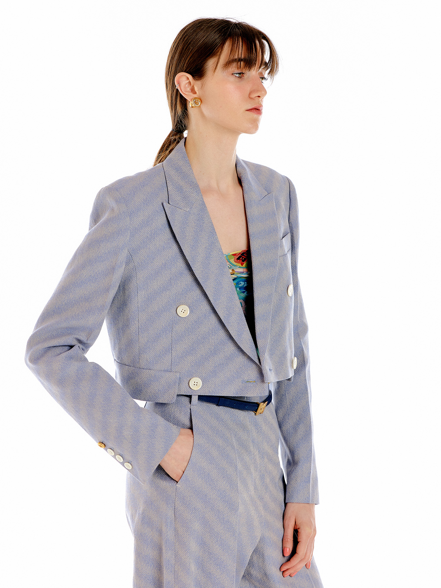- 매니쉬한 실루엣의 더블 숏 자켓입니다.