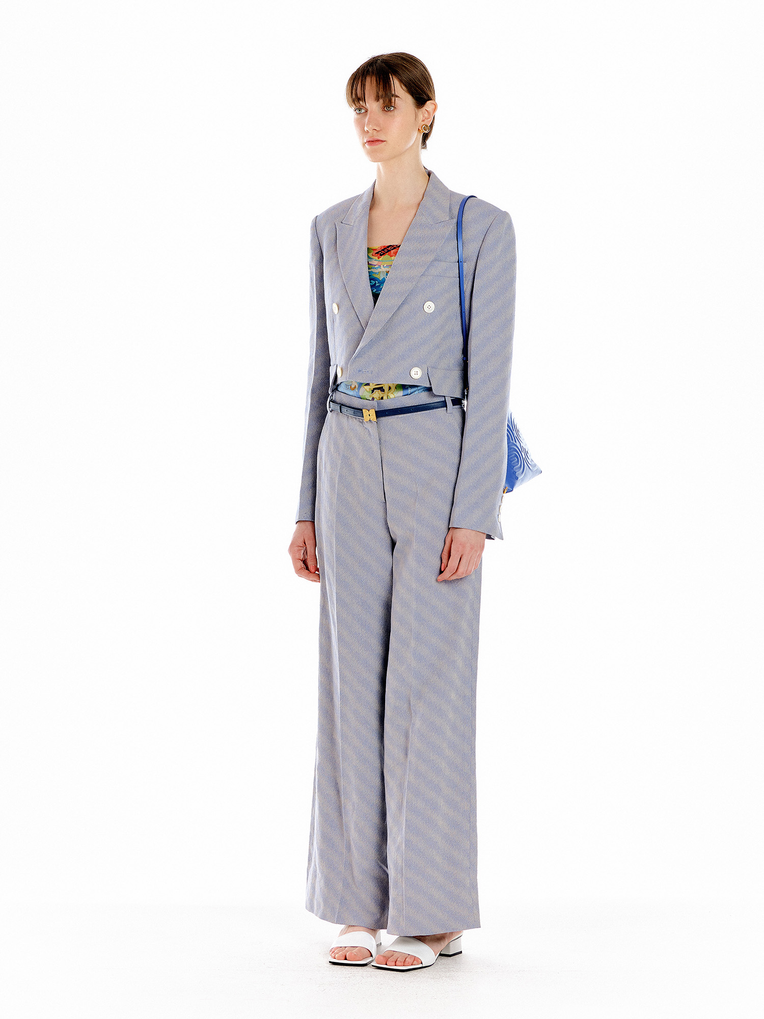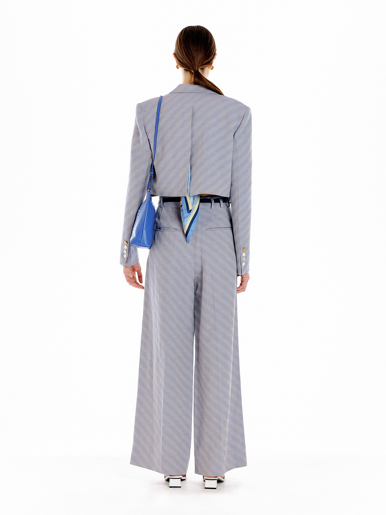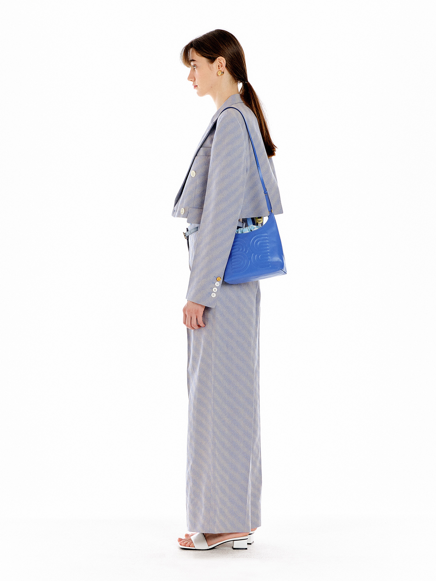 - 같은 소재의 팬츠를 세트로 착용하여 셋업 연출이 가능합니다.